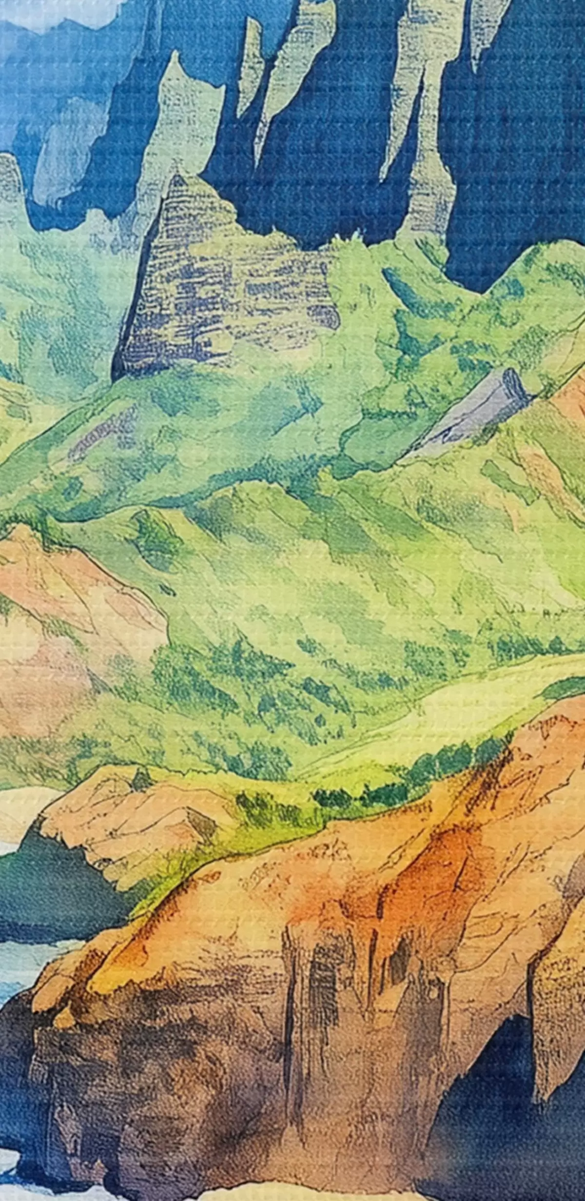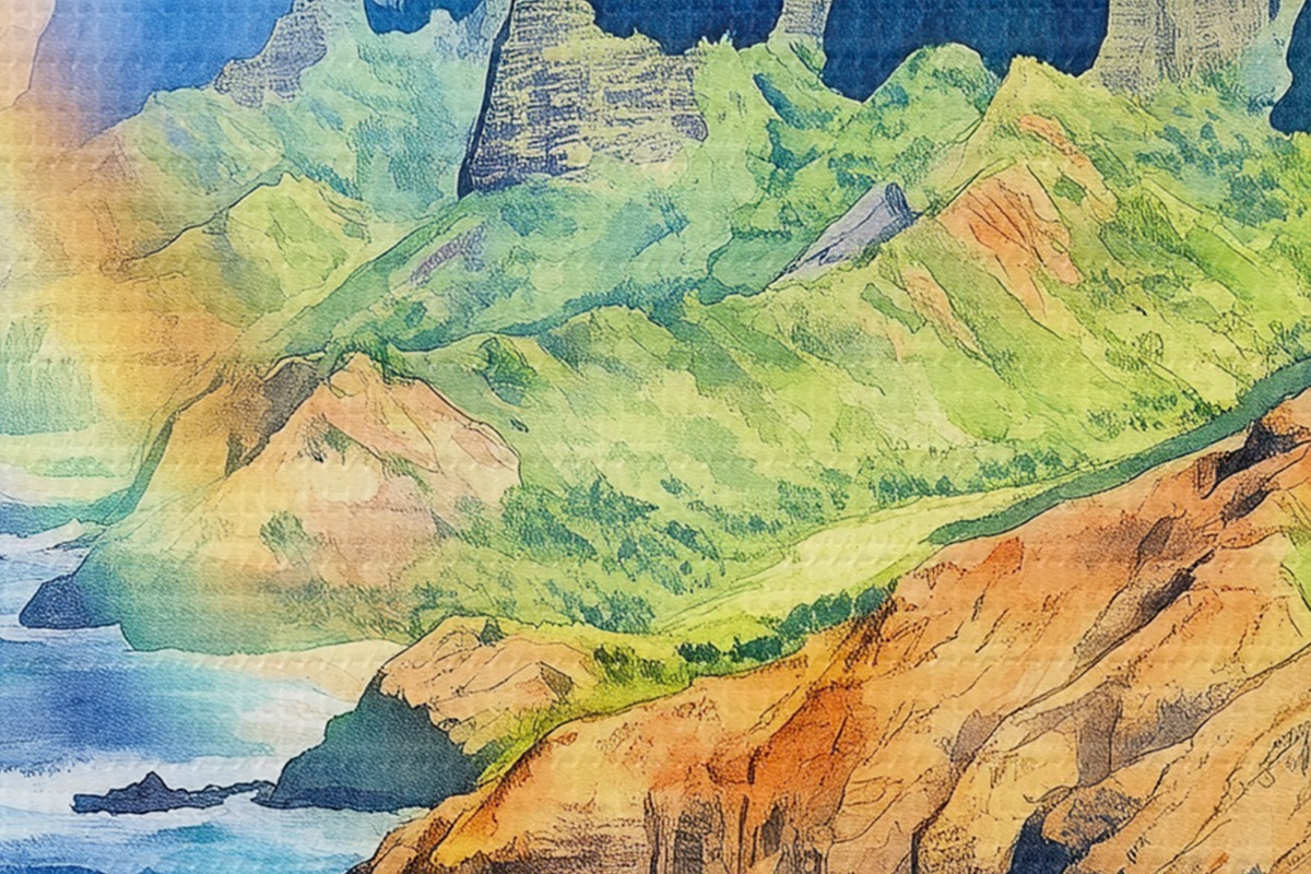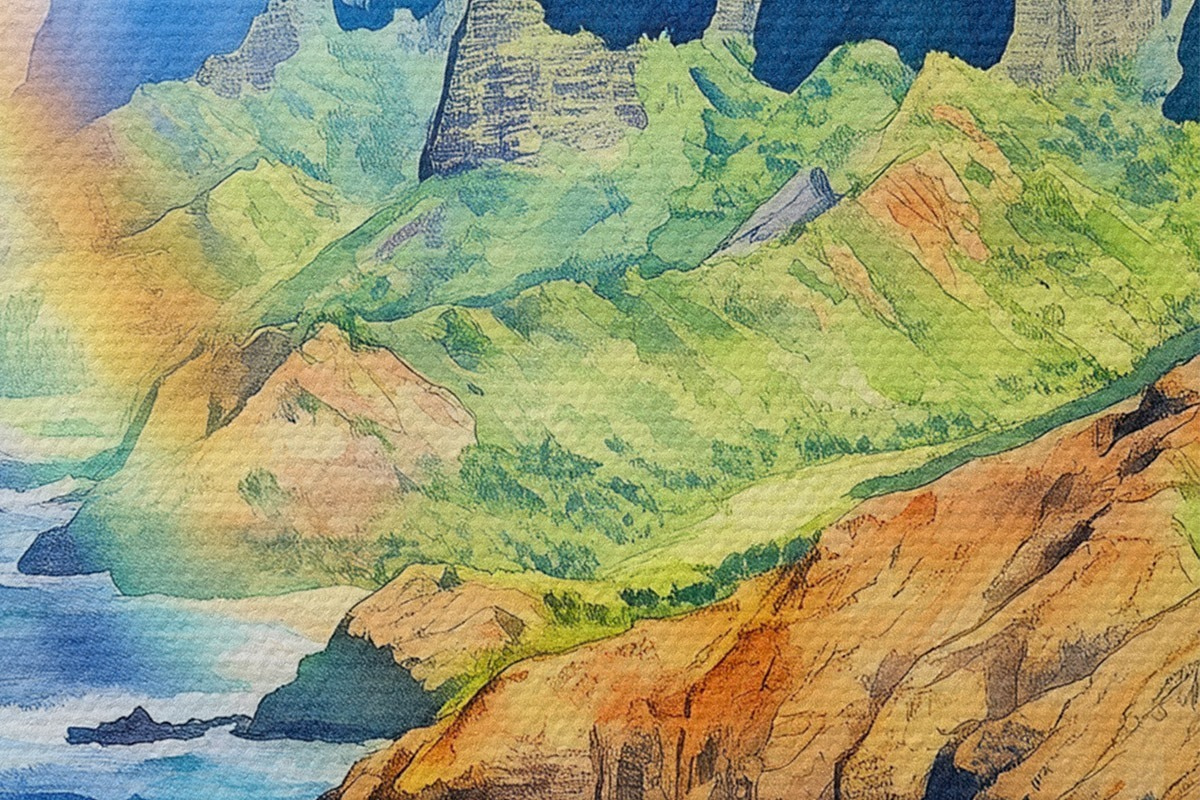 Bild Insel Hawaii, Aquarellstil, Regenbogen, grüne Berge, Meer Nr r44141