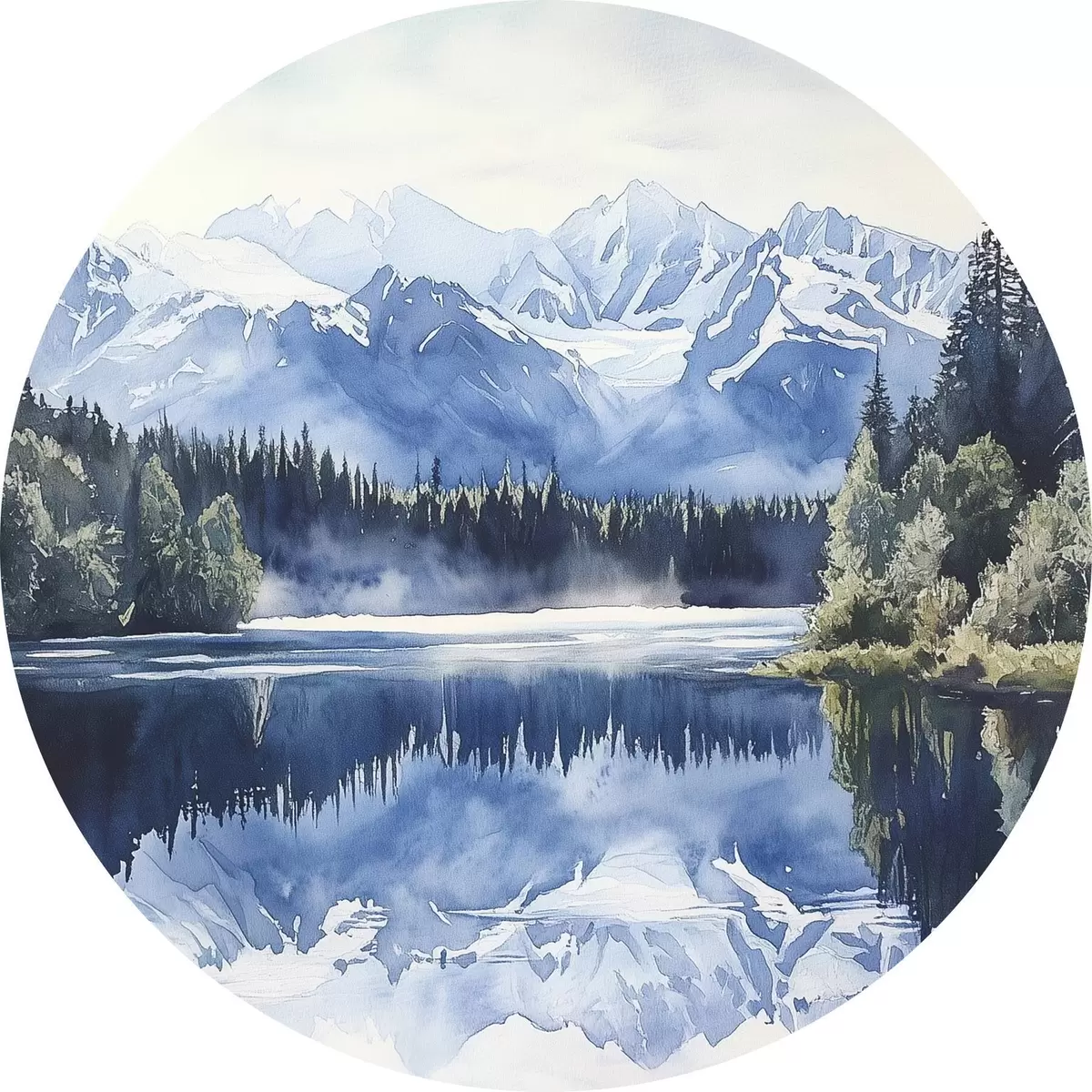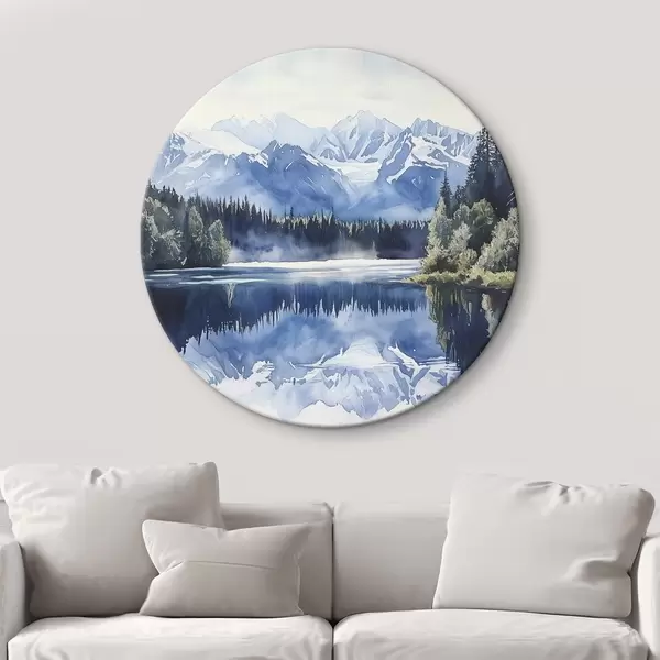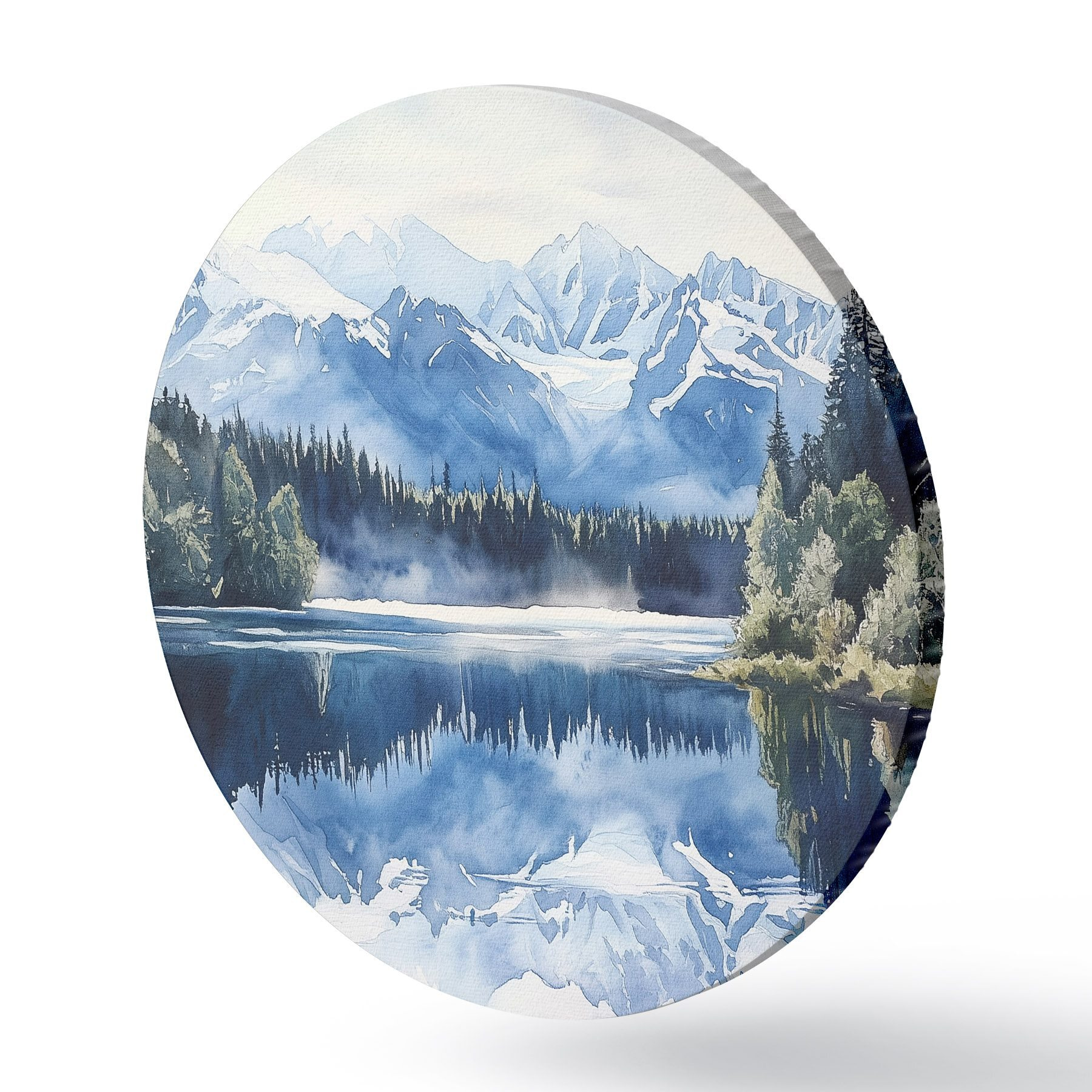 Runde Gemälde Schöne Berge in Neuseeland, Aquarell-Stil, See, Wald r44144