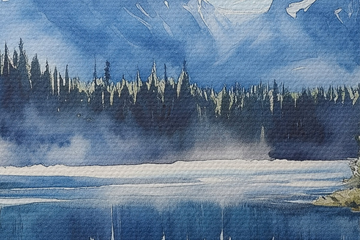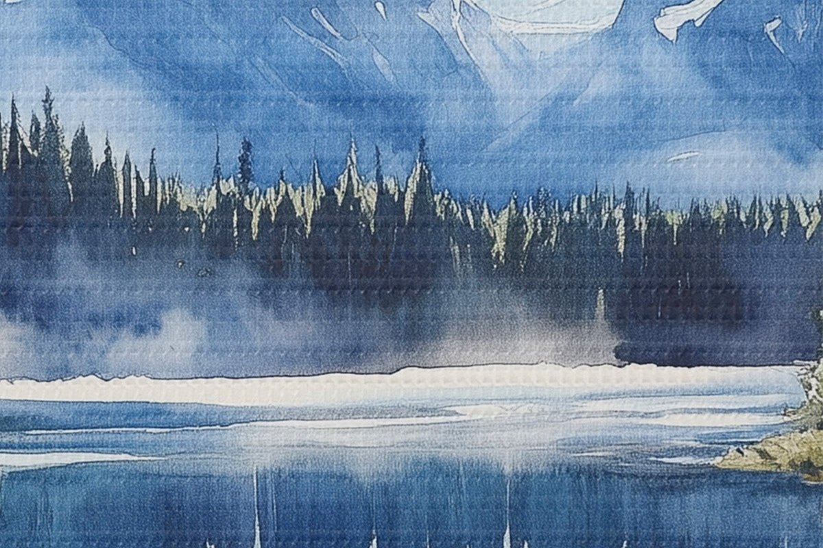 Bild Schöne Berge in Neuseeland, Aquarell-Stil, See, Wald Nr r44144
