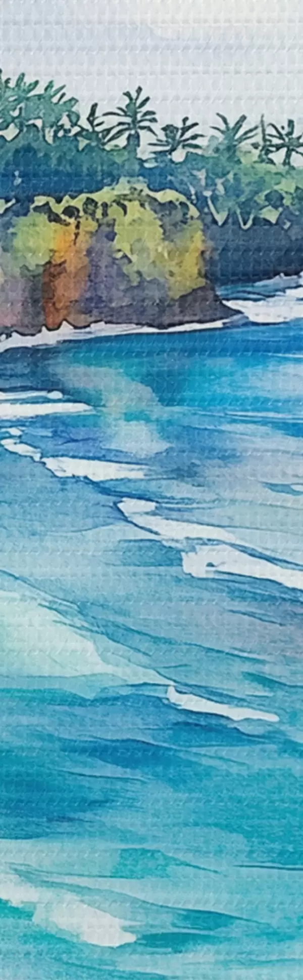 Bild Tropischer Meeresstrand, Palmen, Blumen, Aquarellstil Nr r44145