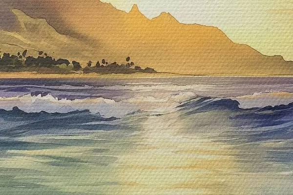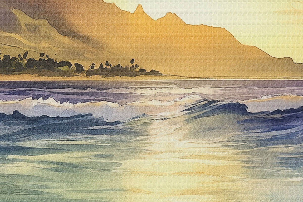 Bild Meereswellen, Sonnenuntergang, Aquarellstil, Natur Nr r44147