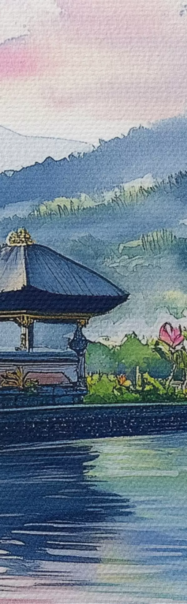 Bild Indonesische Insel, Tempel, Buddhismus, tropische Natur, Aquarellstil Nr r44148