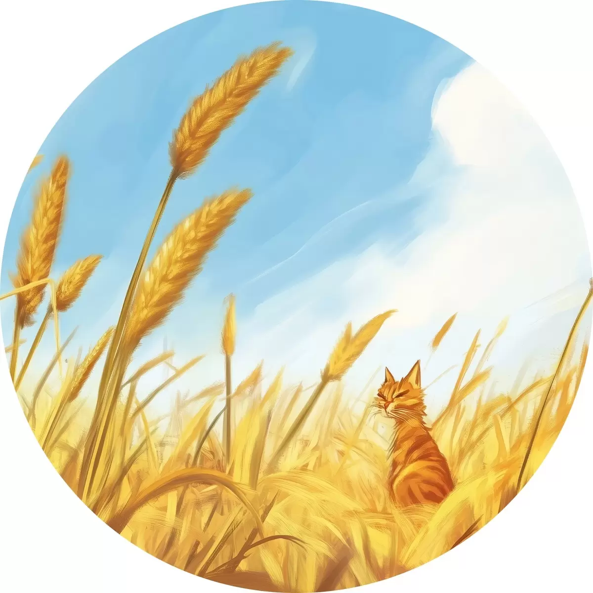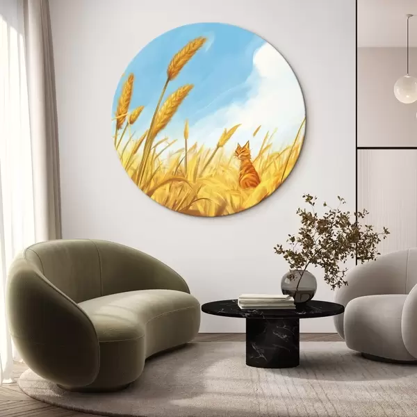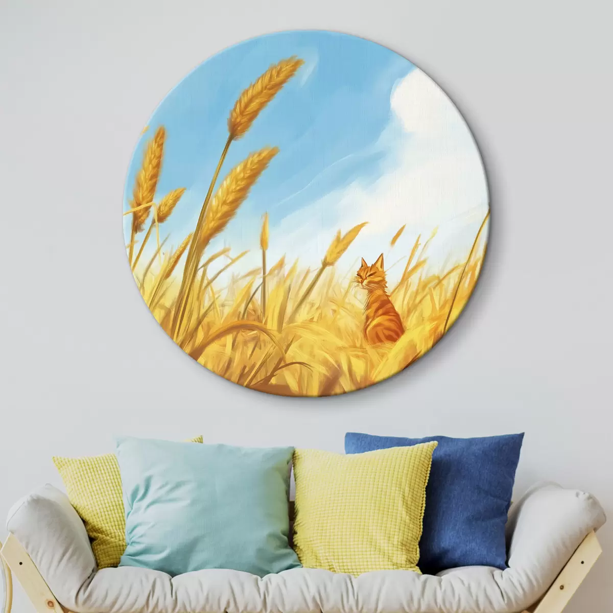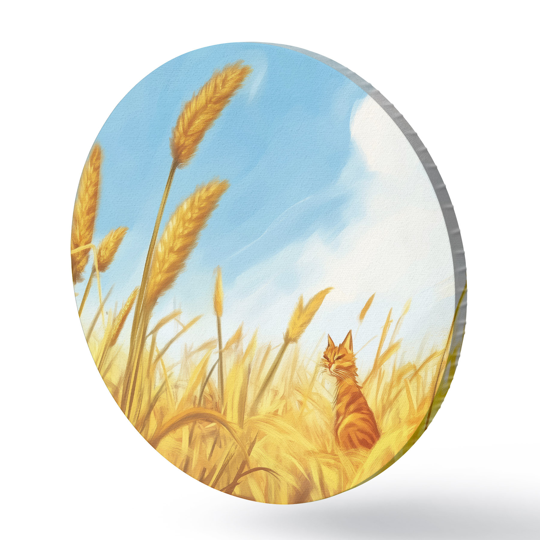 Runde Gemälde Katze auf dem Feld mit Weizenähren r44211