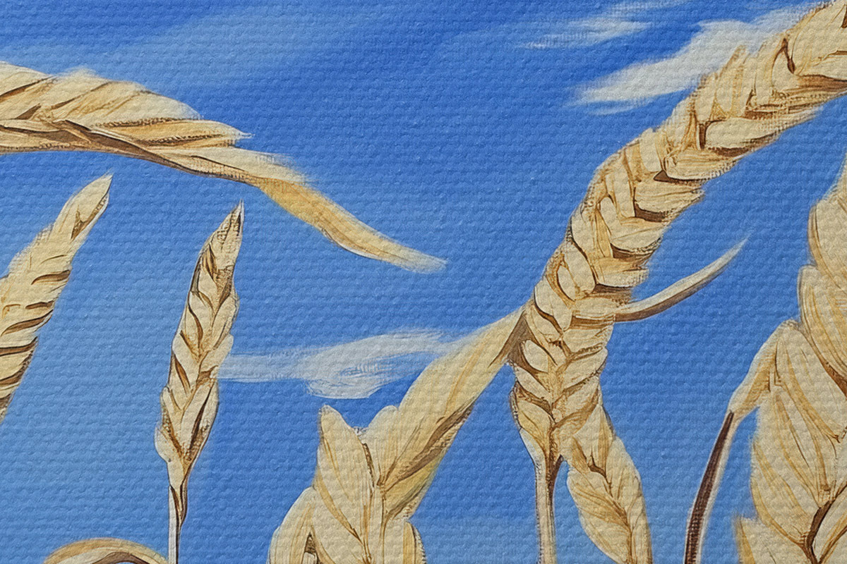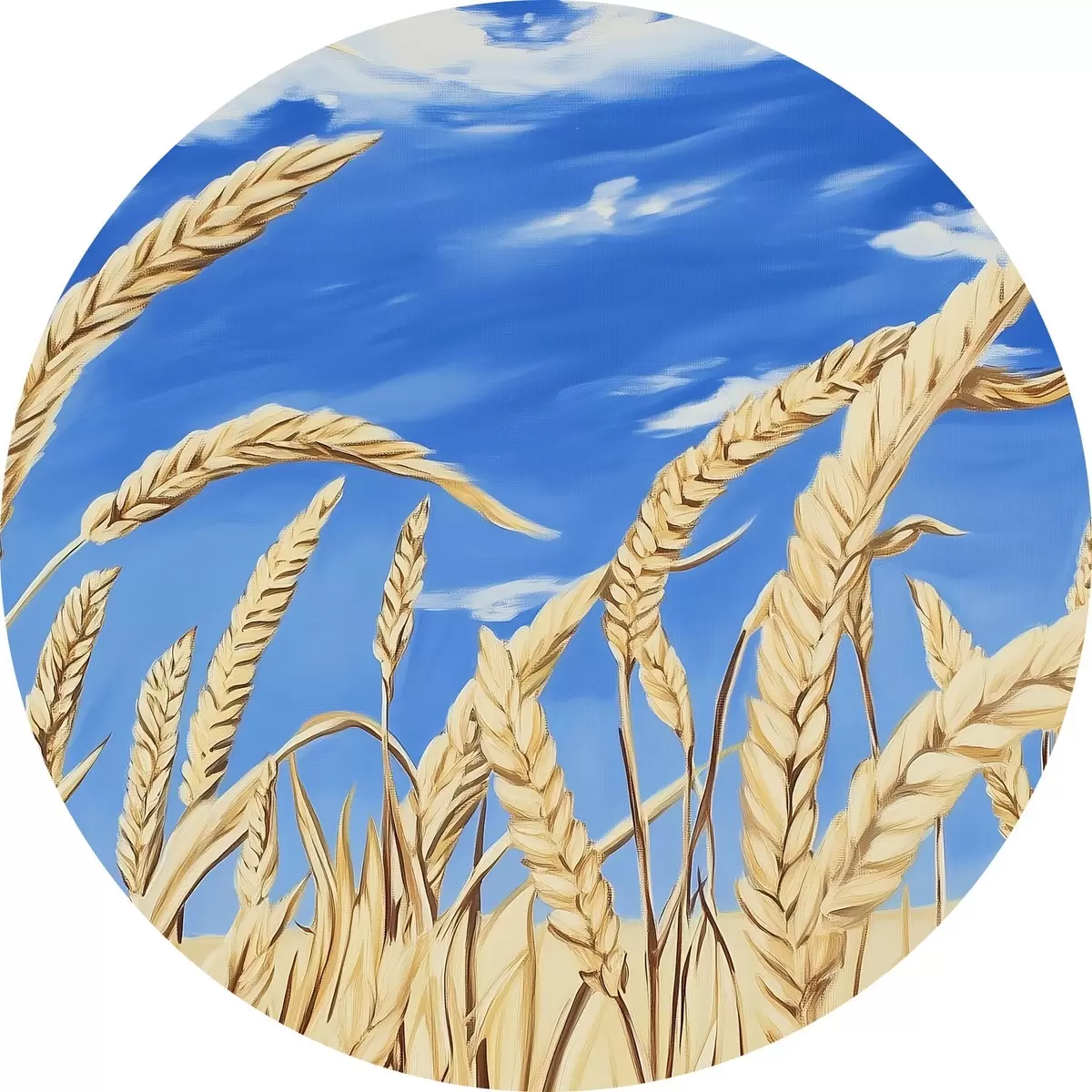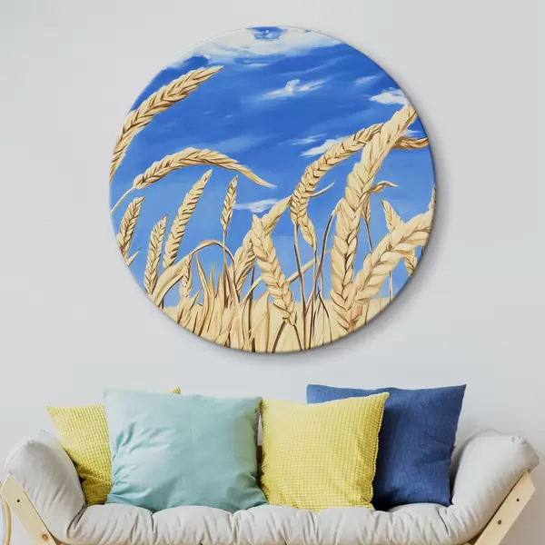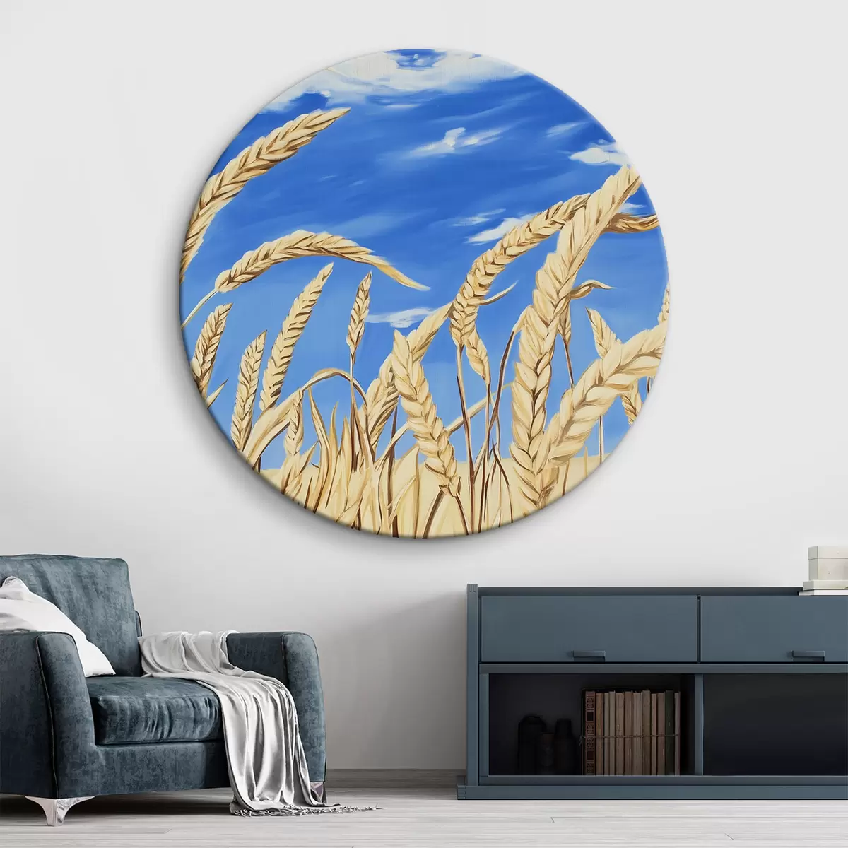 Runde Gemälde Weizenähren unter dem blauen Himmel r44212