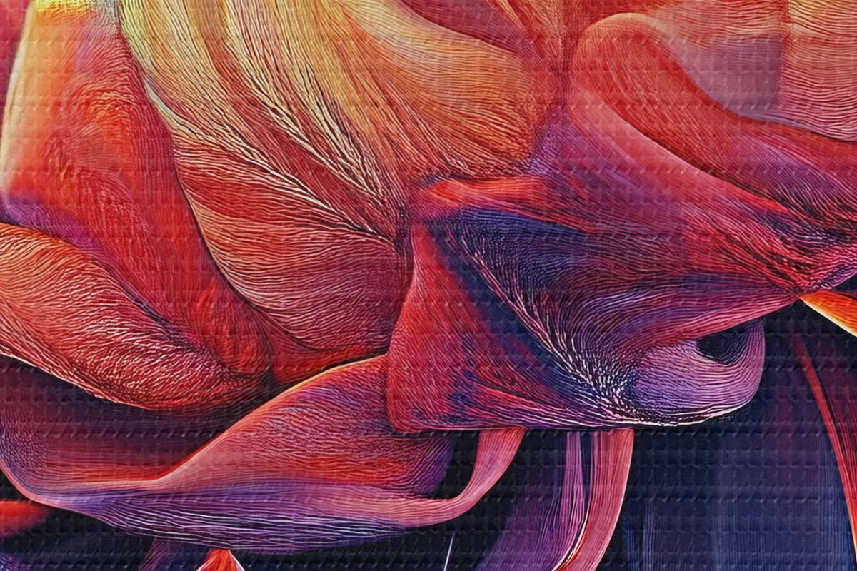 Um die Leinwand auf Keilrahmen zu spannen, ohne das Bild zu beschädigen, verwenden wir ein gespiegeltes Bild.