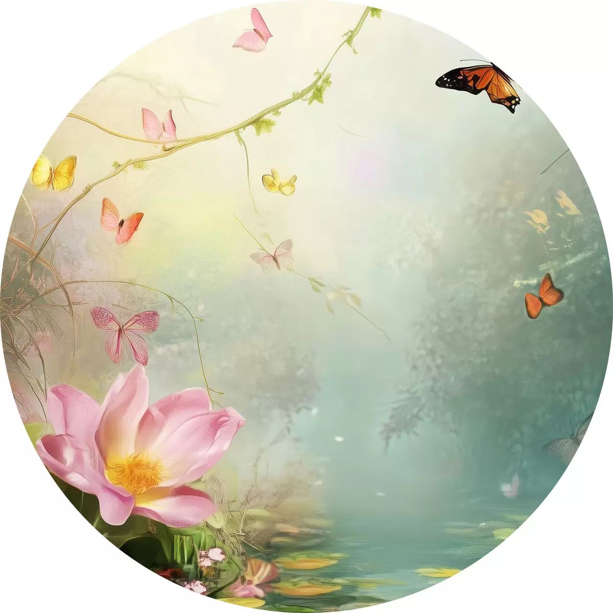 Runde Gemälde See im Wald unter den Bäumen r44216