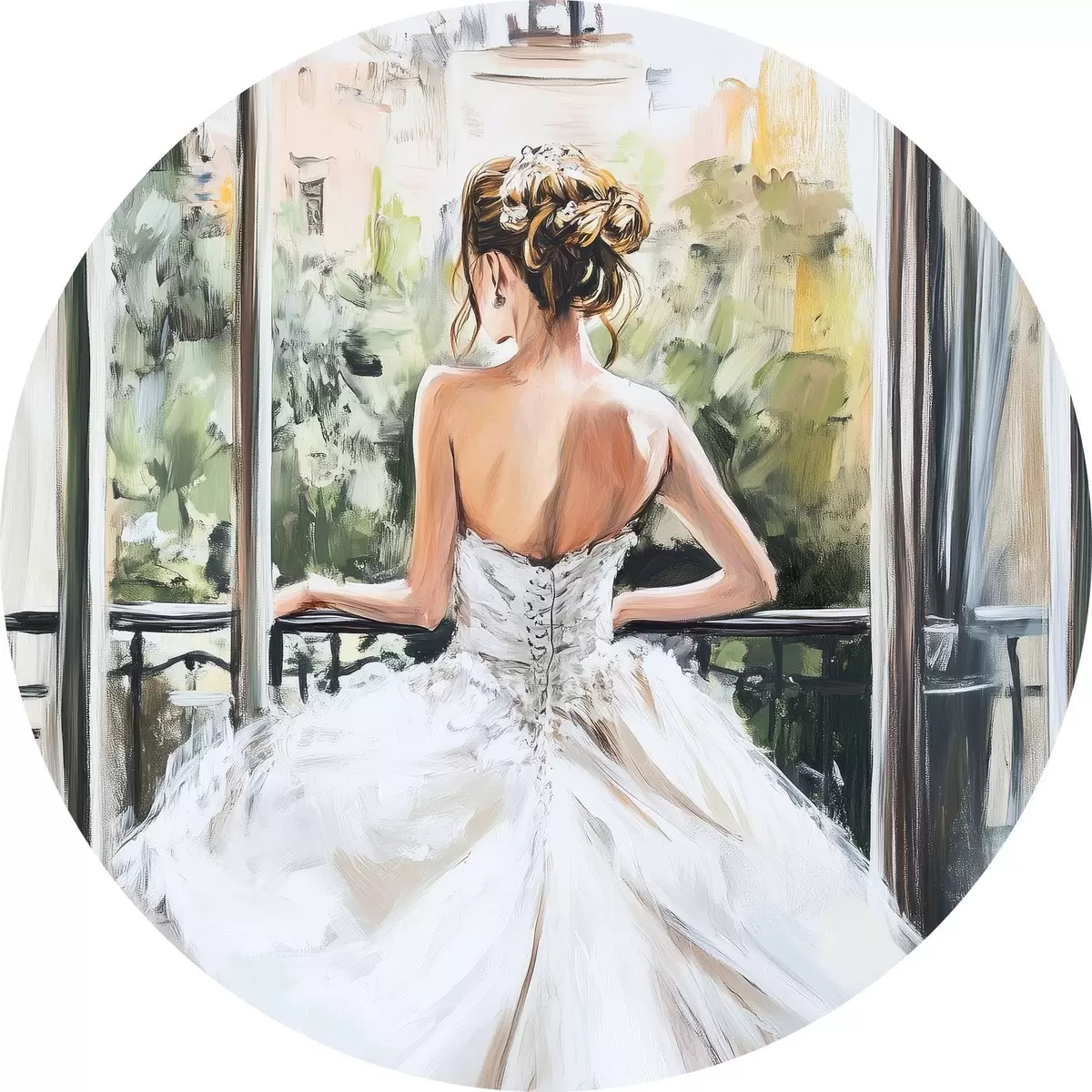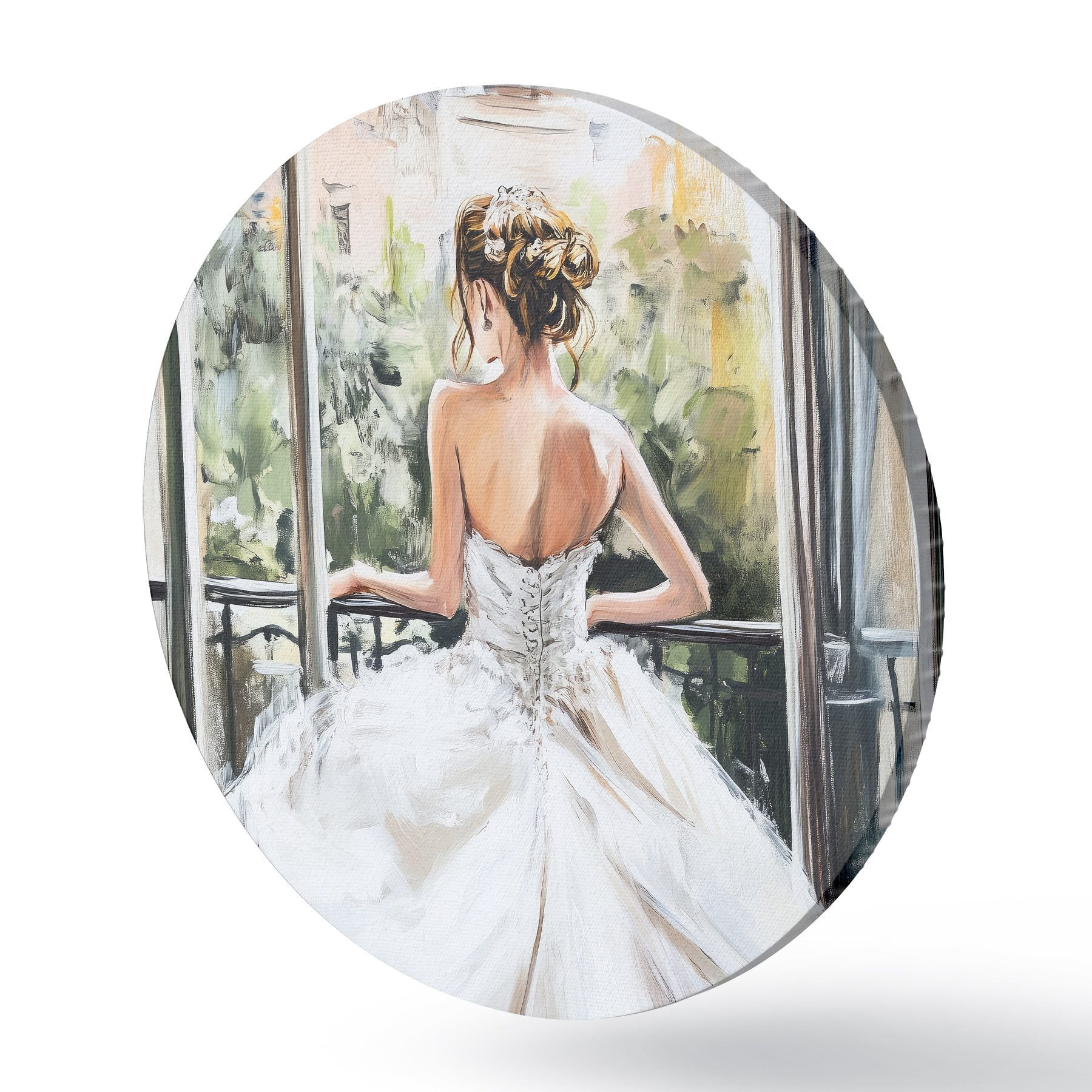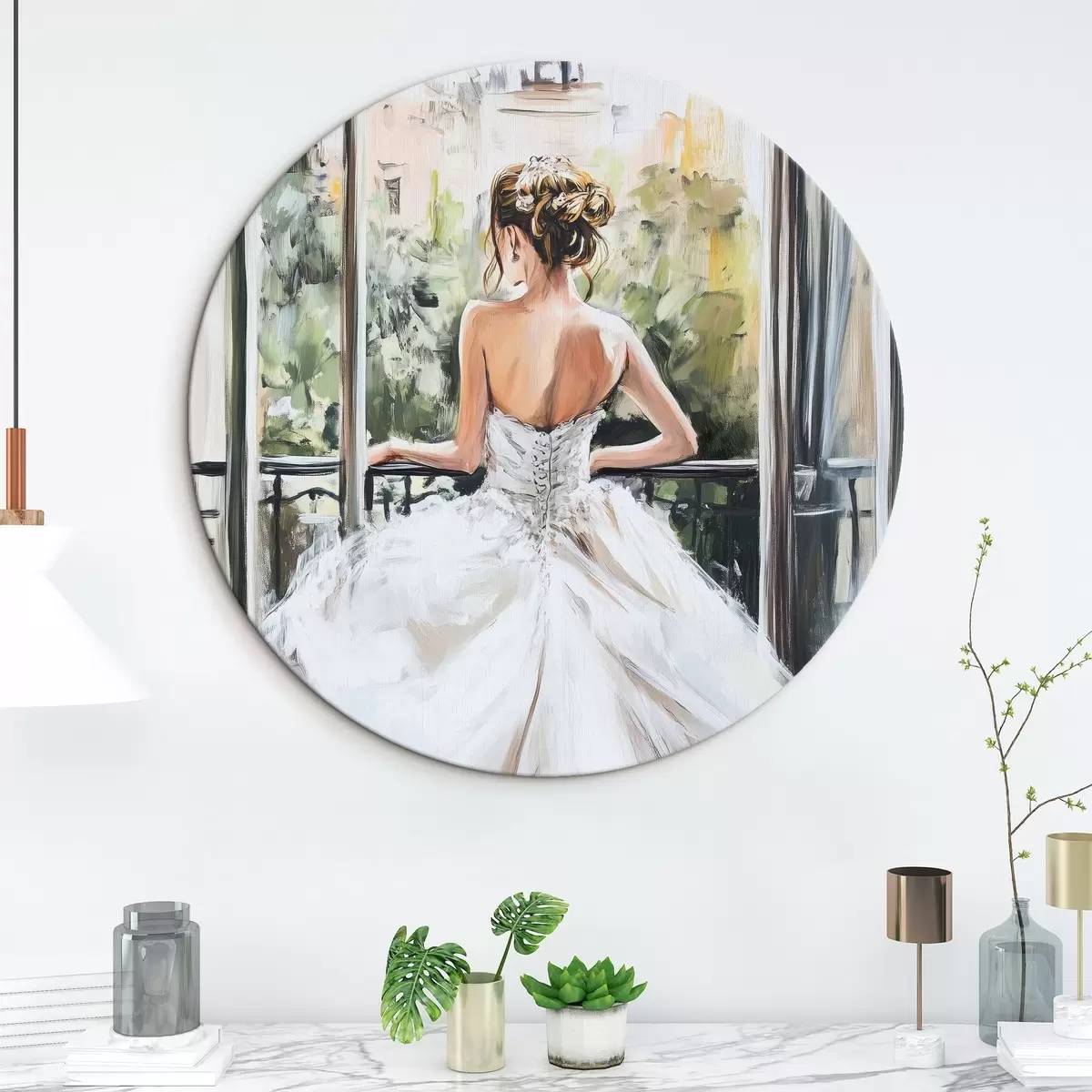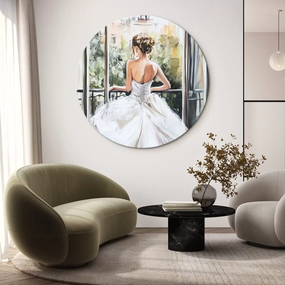 Runde Gemälde Mädchen in einem weißen Kleid auf dem Balkon r44226