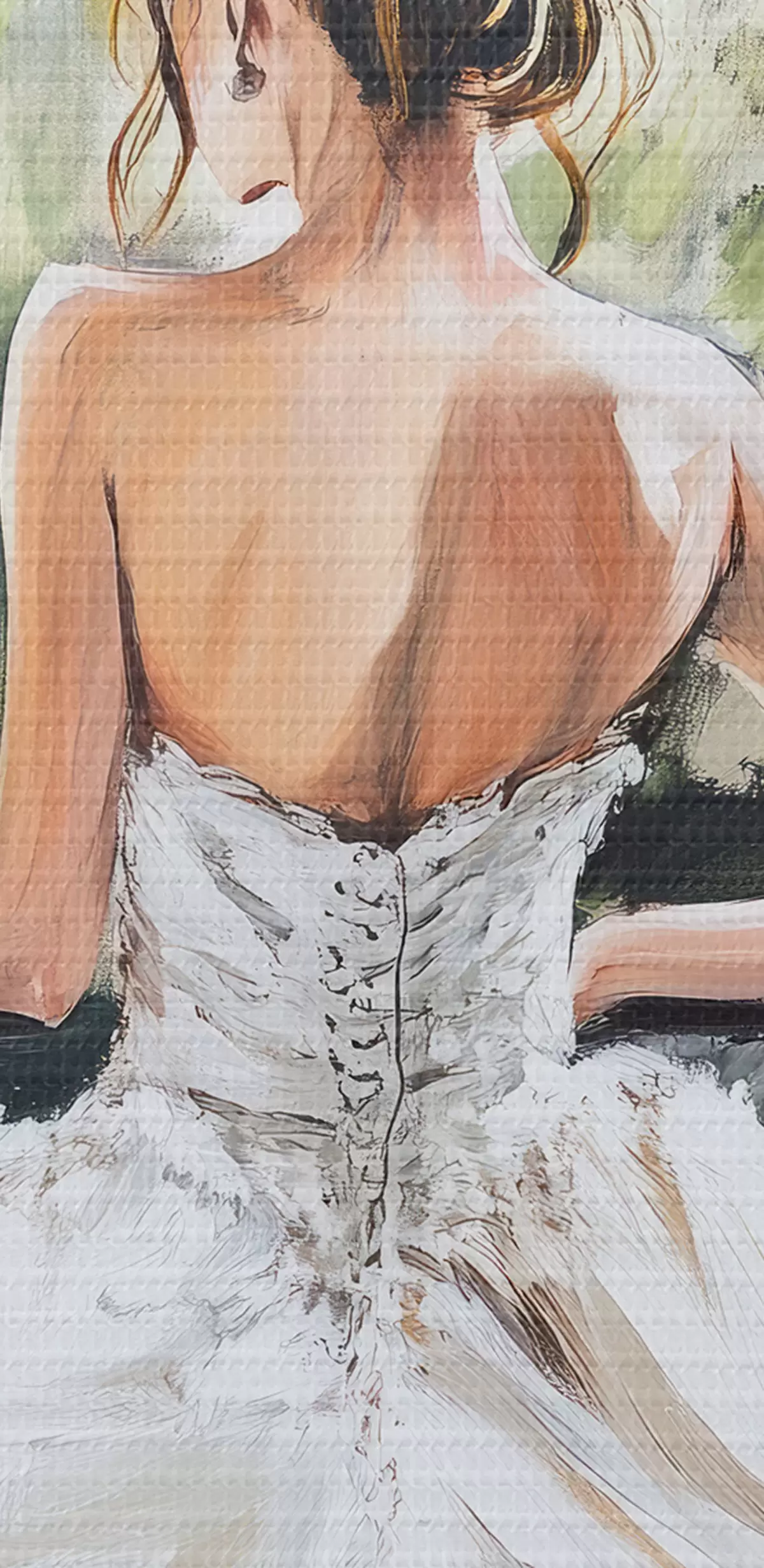 Drei Materialtypen stehen zur Verfügung: Economic Canvas - ein dichtes und haltbares Material für den Digitaldruck, identisch mit Malerleinwand, wasserfeste Oberfläche, realistische Wiedergabe von Details, mittelkörniges Material. Premium Canvas - die Textur ähnelt der einer Malerleinwand (verwobene kleine Fäden). Weiche, detaillierte Wiedergabe des Bildes auf einer matten Oberfläche. Eco-Premium - hochwertiges Gewebe aus 100% Baumwolle. Dank der natürlichen Baumwollfasern ist das Material langlebig und verschleißfest. Hervorragende Farbwiedergabe und Detailtreue.