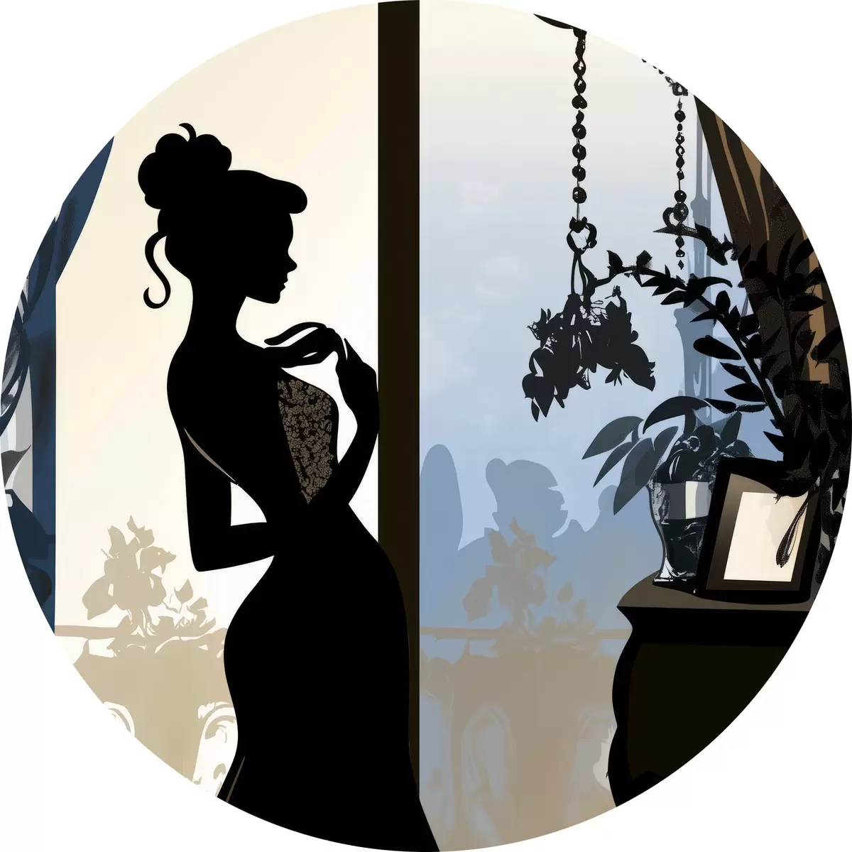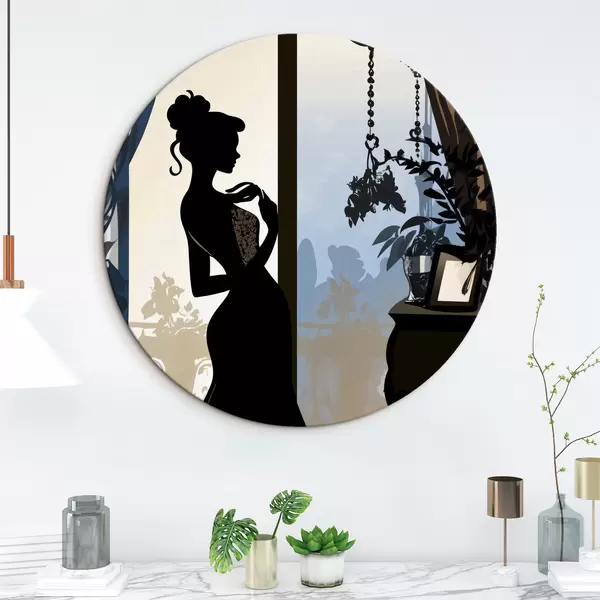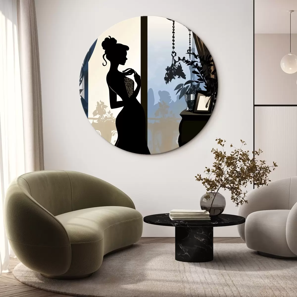 Runde Gemälde Silhouette eines Mädchens in einem Kleid r44227