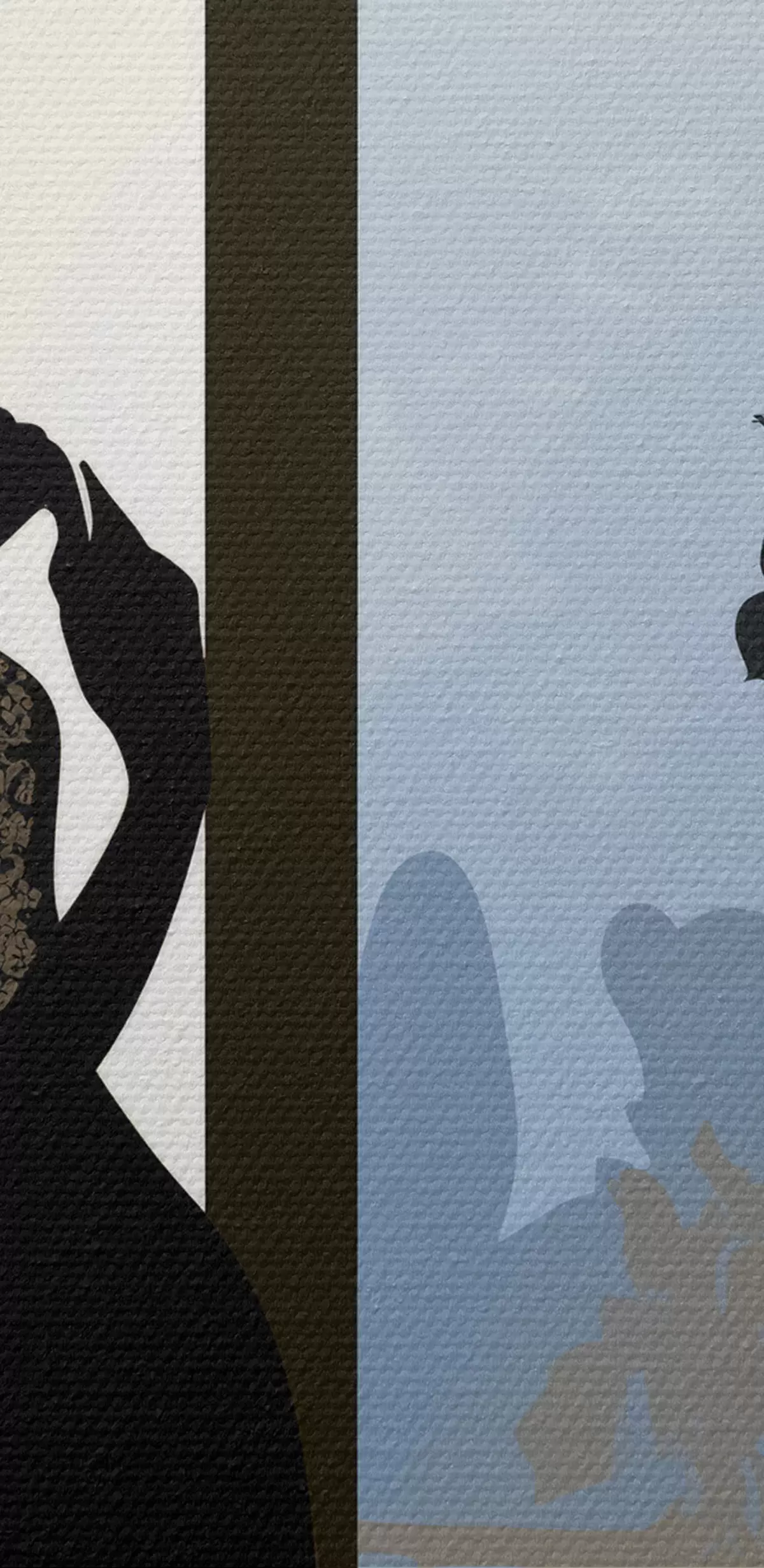 Um die Leinwand auf Keilrahmen zu spannen, ohne das Bild zu beschädigen, verwenden wir ein gespiegeltes Bild.