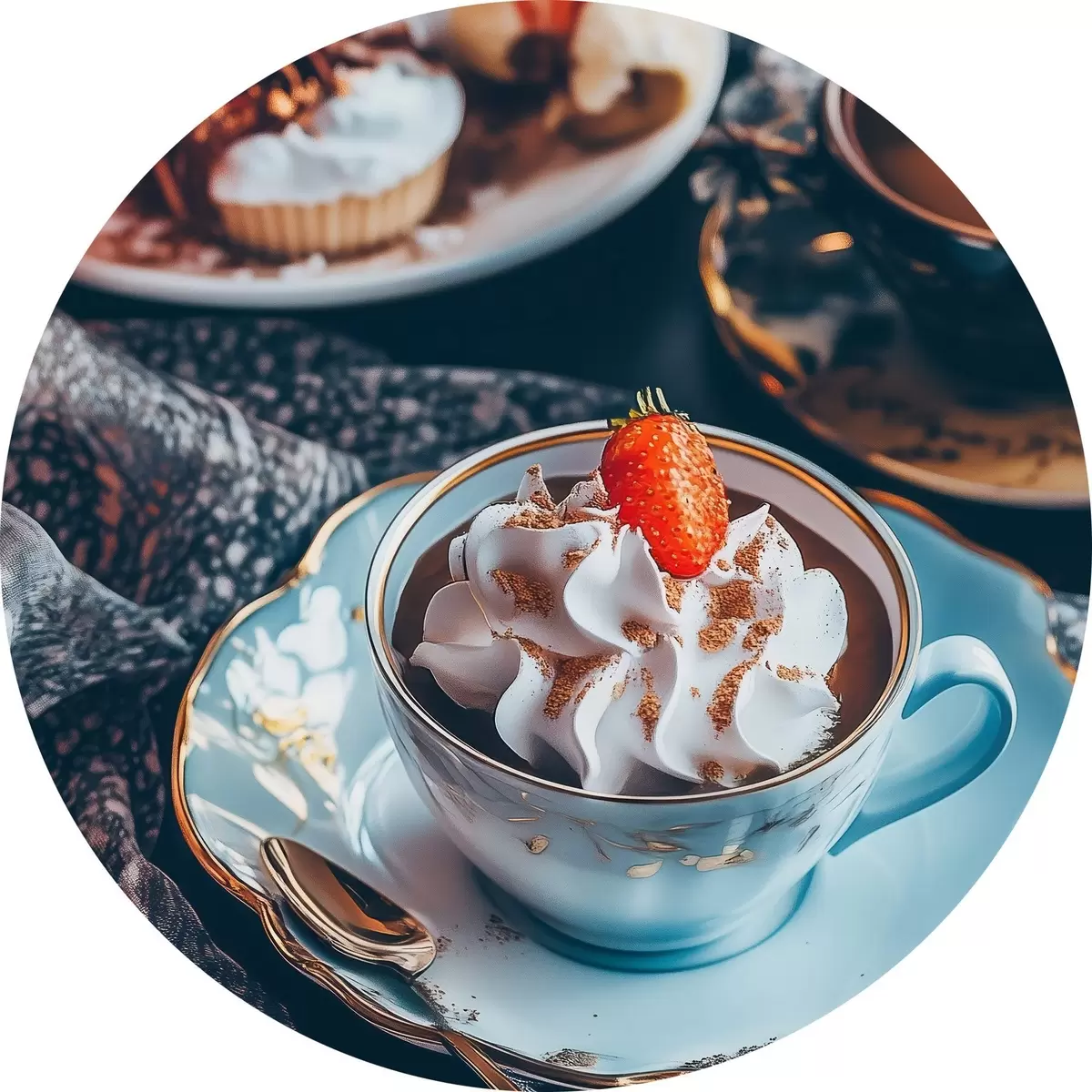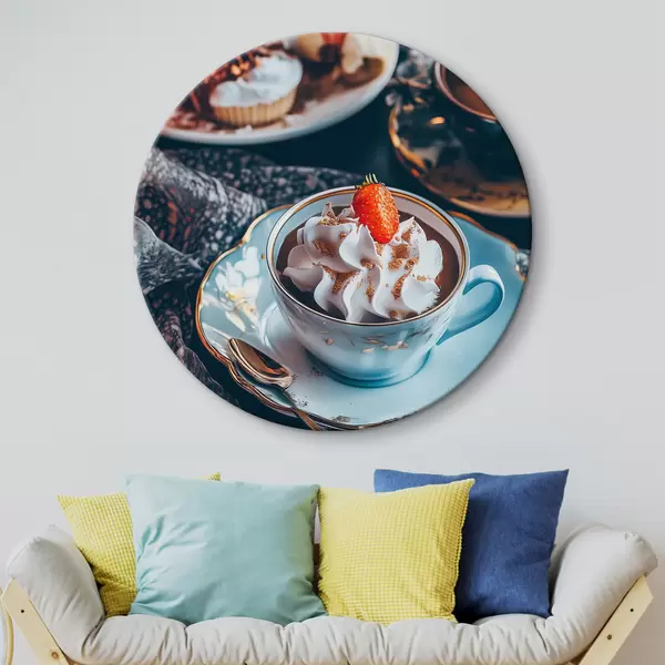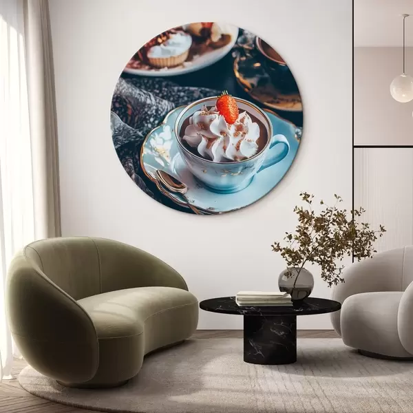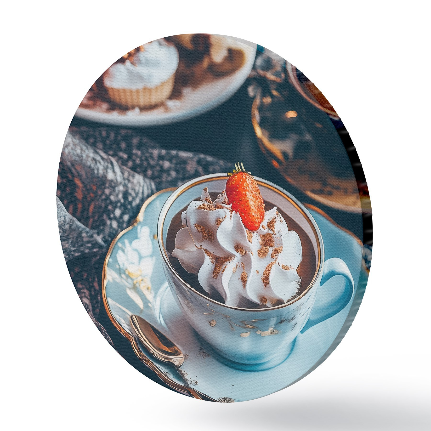 Runde Gemälde Eine Tasse Kaffee und ein Dessert r44228