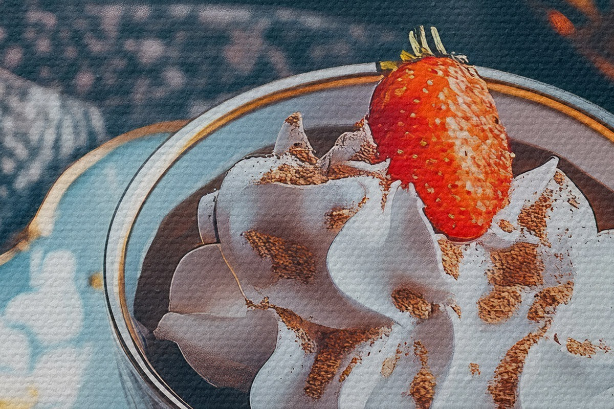 Drei Materialtypen stehen zur Verfügung: Economic Canvas - ein dichtes und haltbares Material für den Digitaldruck, identisch mit Malerleinwand, wasserfeste Oberfläche, realistische Wiedergabe von Details, mittelkörniges Material. Premium Canvas - die Textur ähnelt der einer Malerleinwand (verwobene kleine Fäden). Weiche, detaillierte Wiedergabe des Bildes auf einer matten Oberfläche. Eco-Premium - hochwertiges Gewebe aus 100% Baumwolle. Dank der natürlichen Baumwollfasern ist das Material langlebig und verschleißfest. Hervorragende Farbwiedergabe und Detailtreue.