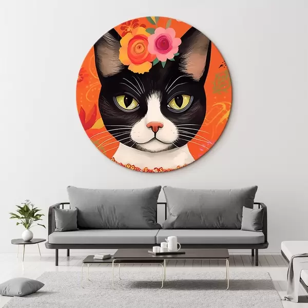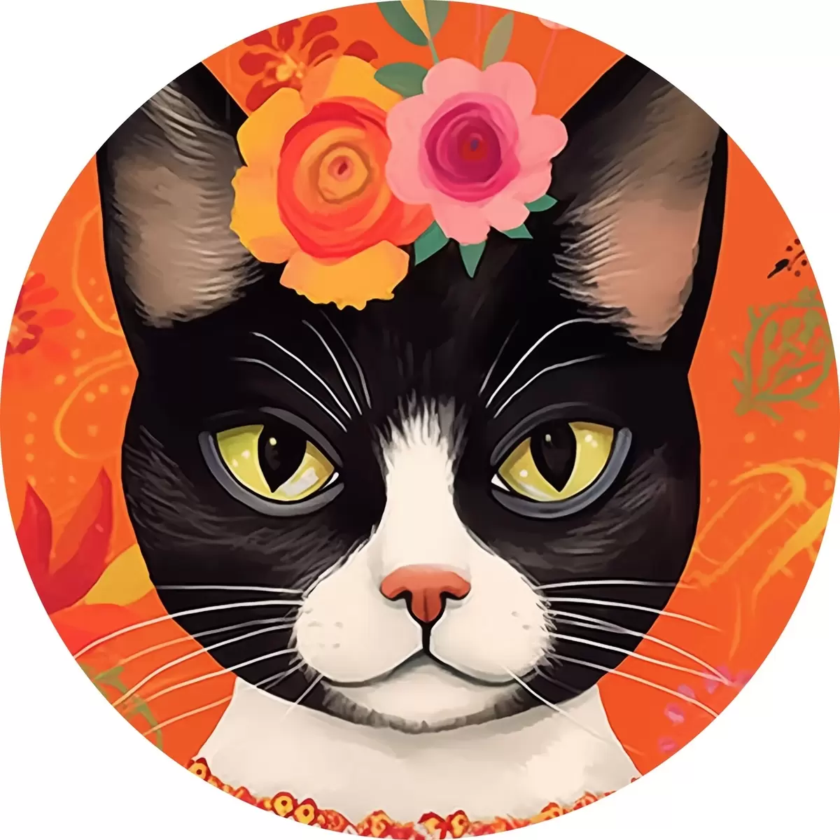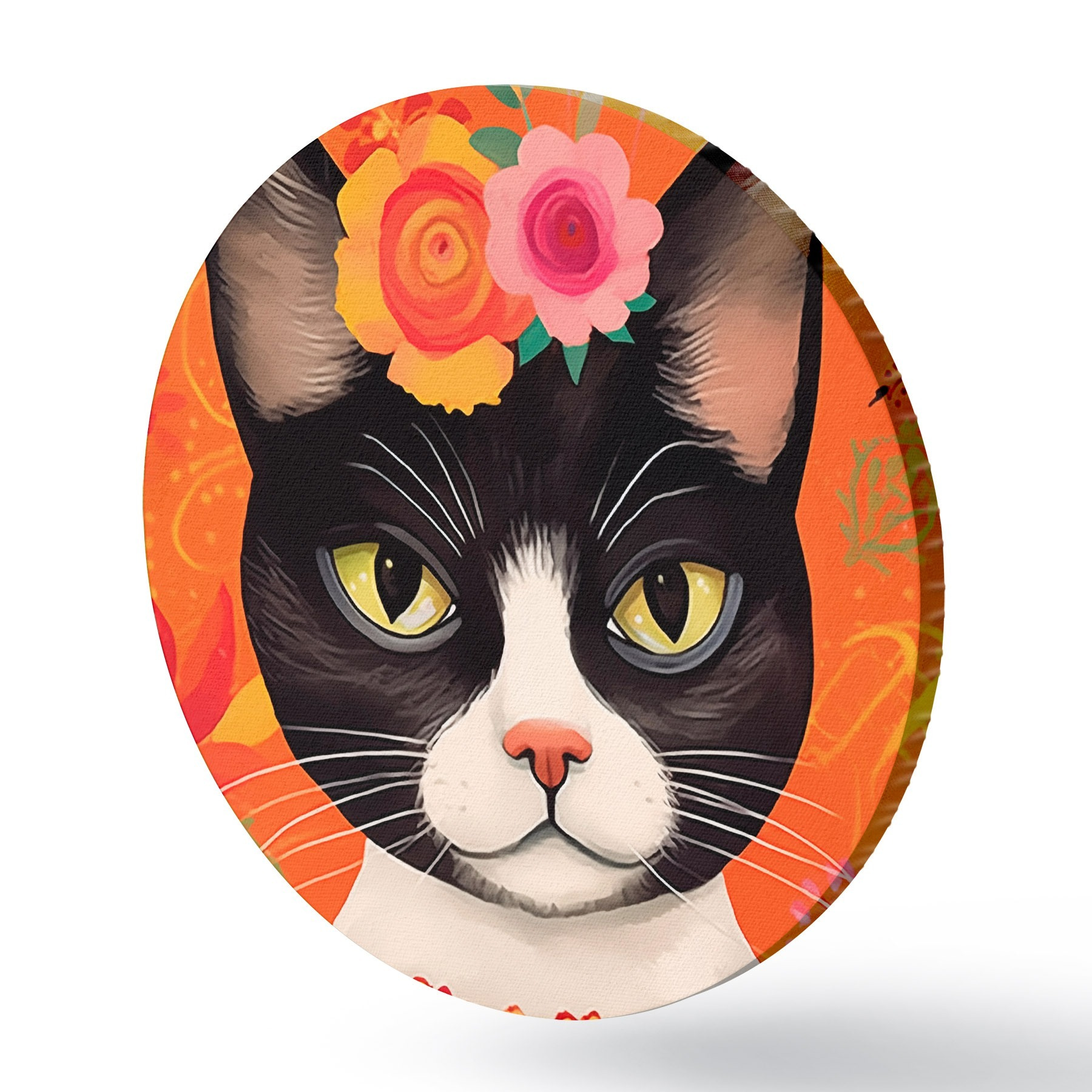Runde Gemälde Katze mit Blumenmotiv r44262