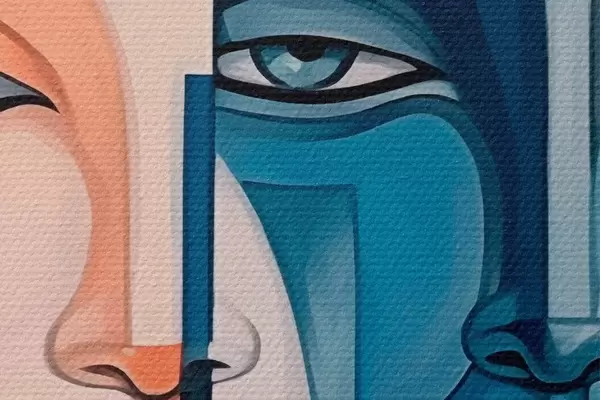 Um die Leinwand auf Keilrahmen zu spannen, ohne das Bild zu beschädigen, verwenden wir ein gespiegeltes Bild.