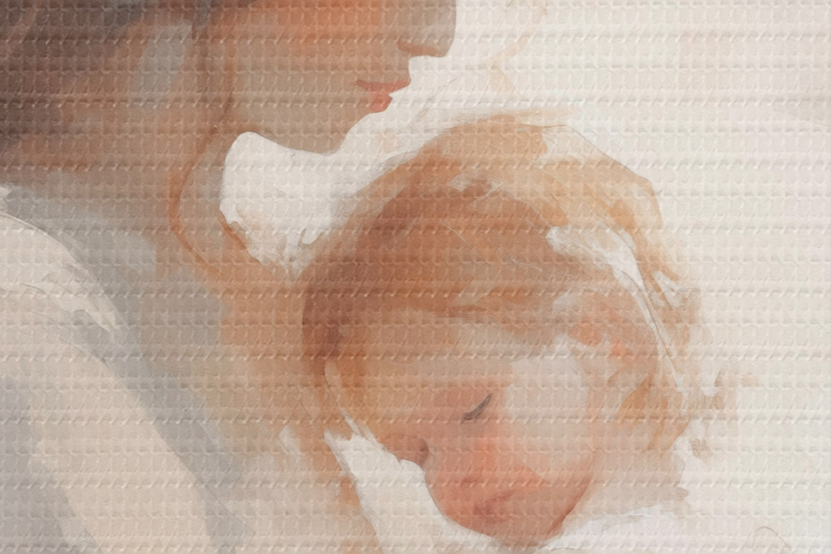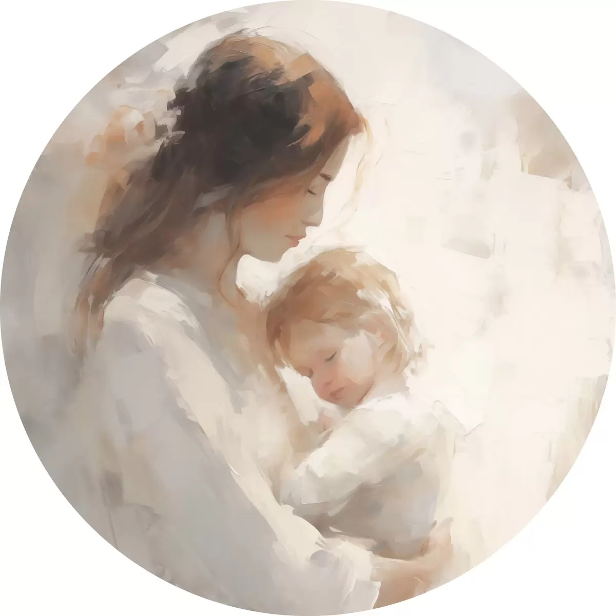 Runde Gemälde Mädchen mit Kind r44285