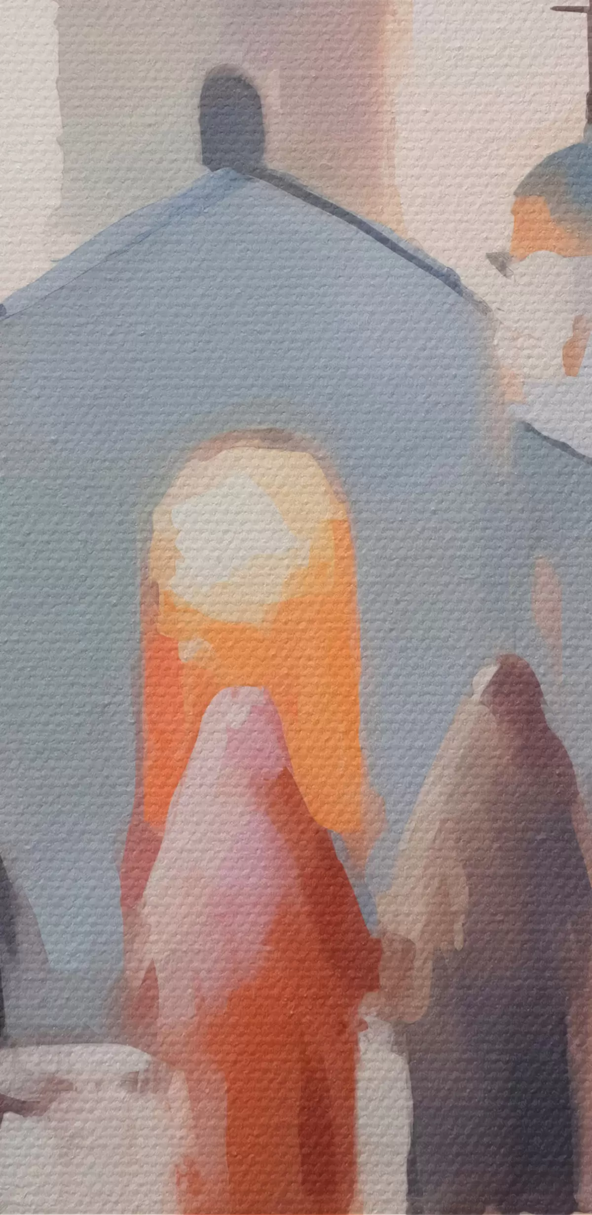 Das Gemälde kann sofort nach Erhalt aufgehängt werden. Das Gemälde wird auf einen 2 cm breiten Holzkeilrahmen aufgespannt.