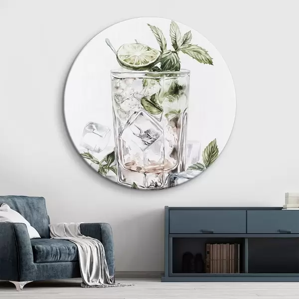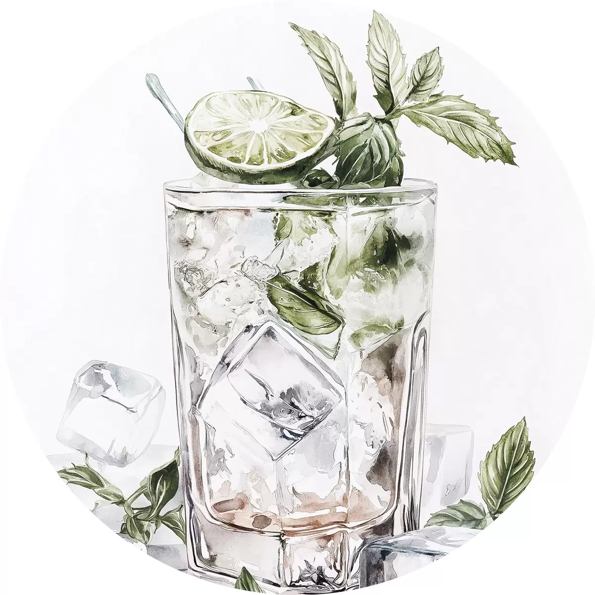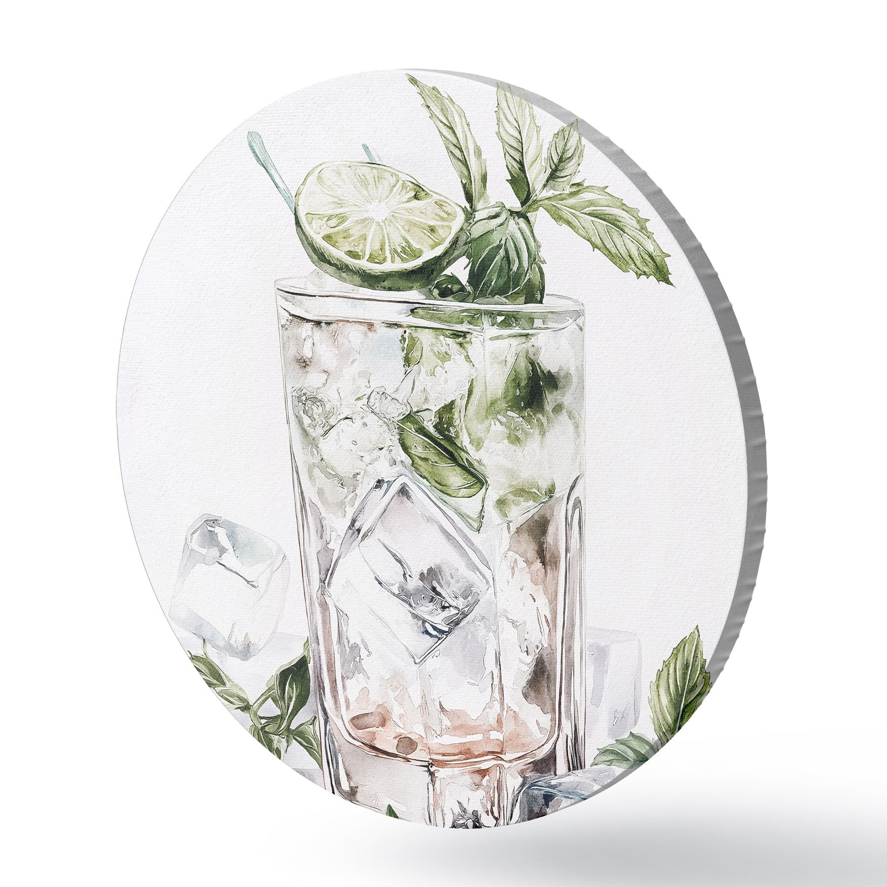 Runde Gemälde Mojito-Cocktail, Getränke im Aquarellstil, Minze r44302