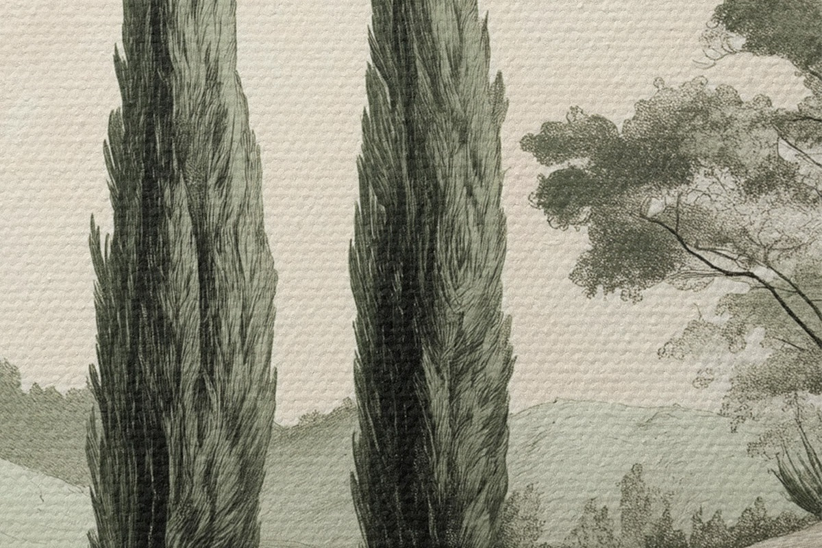 Bild Landschaften der Toskana, Pastellfarben, Zypressen, Felsen, rustikaler Stil Nr r44307