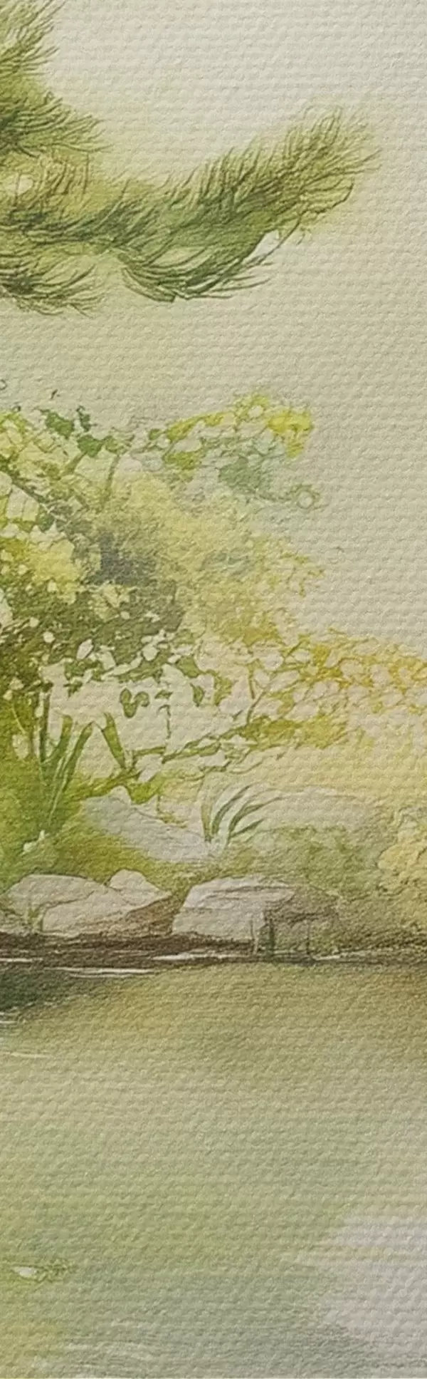 Bild Orientalischer Garten mit See und Bäumen, Natur, Aquarellstil Nr r44313