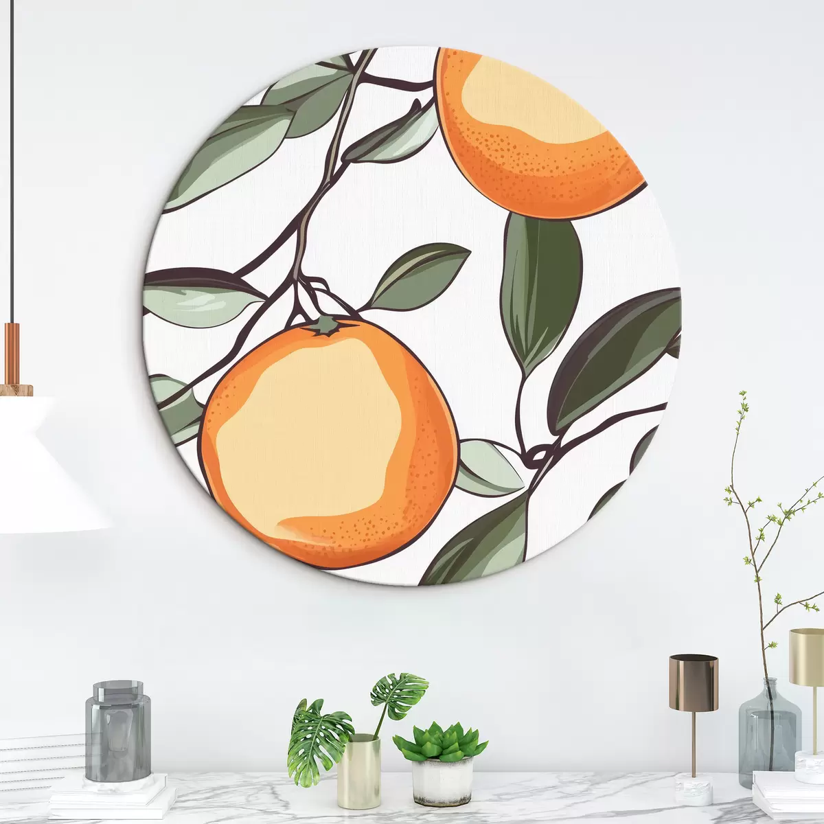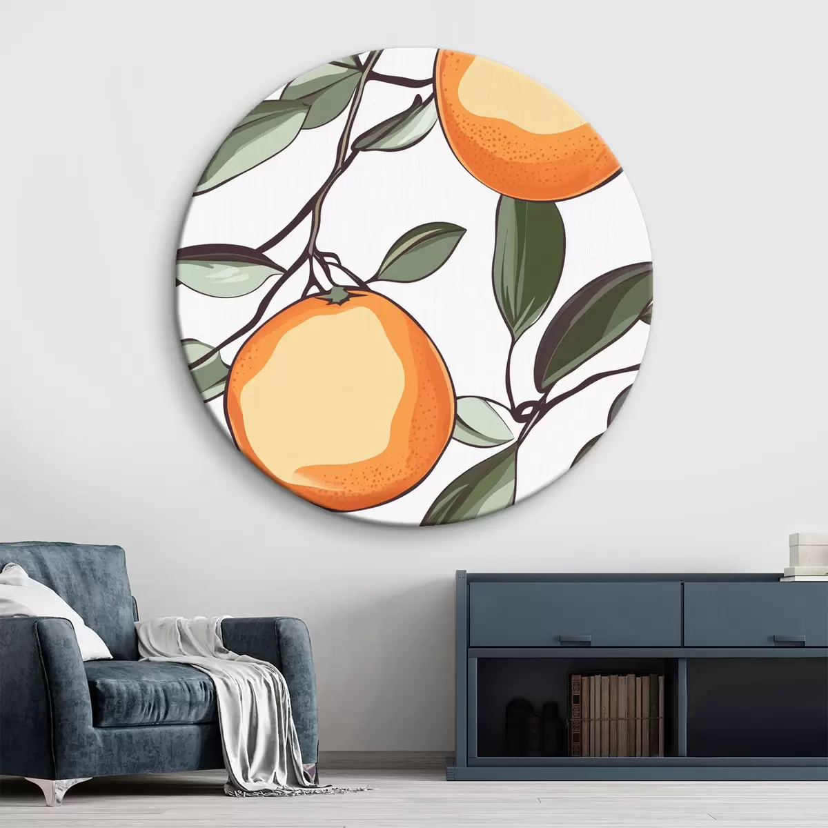 Runde Gemälde Gemalte Orangen auf einem Zweig r44319
