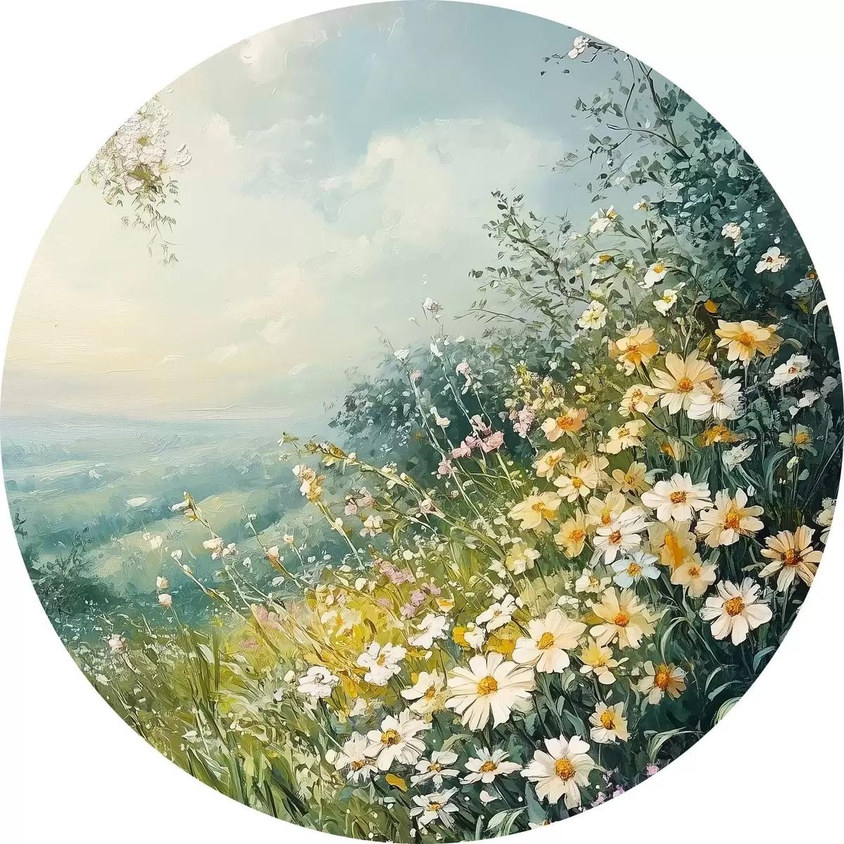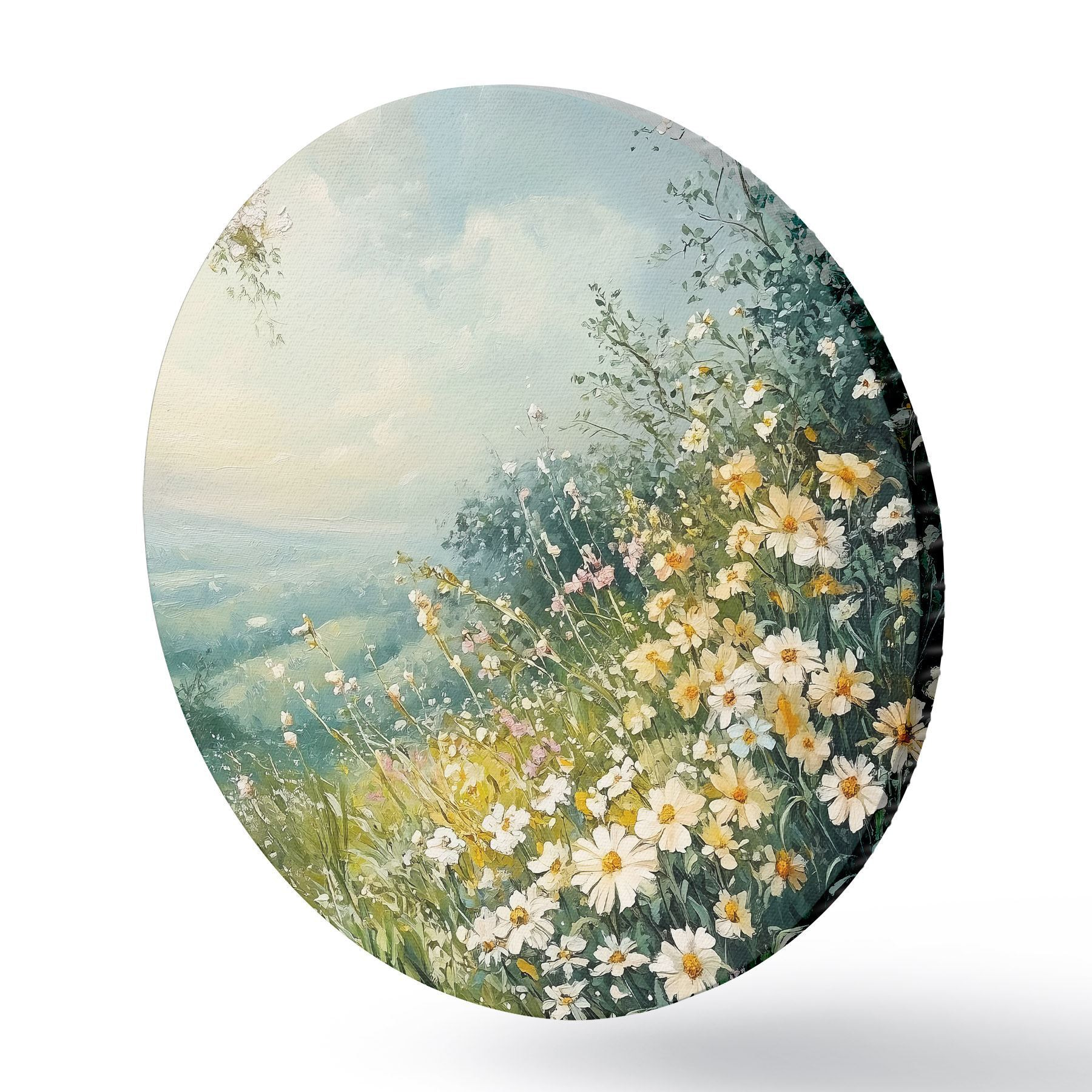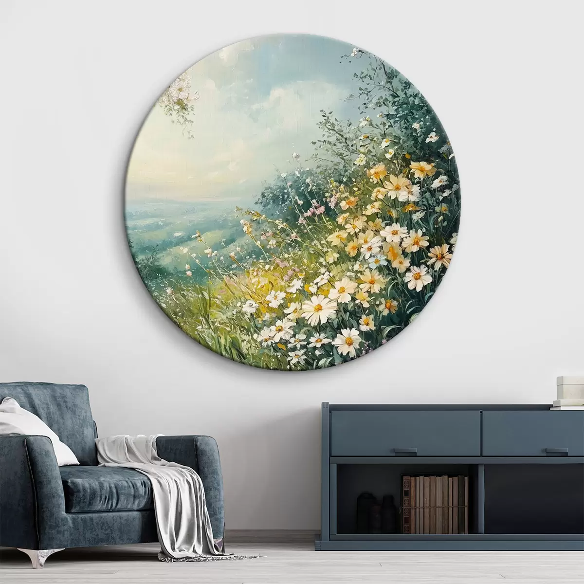 Runde Gemälde Blühende Felder in den Bergen r44325