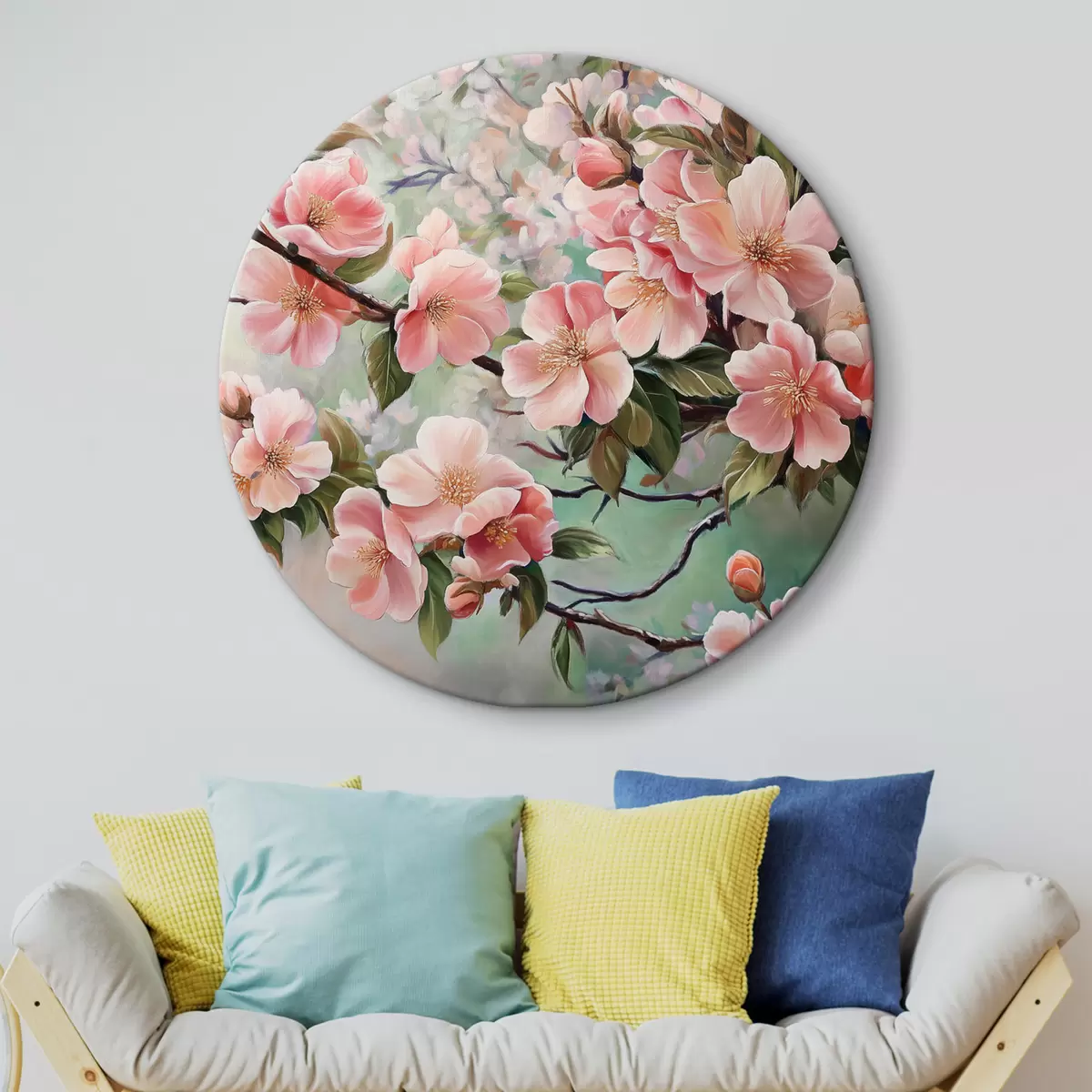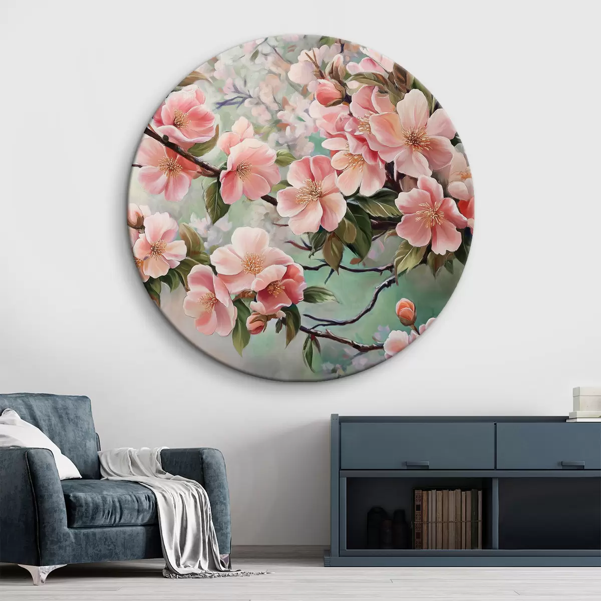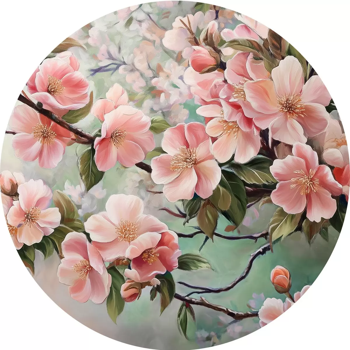 Runde Gemälde Blühende rosa Zweige r44327