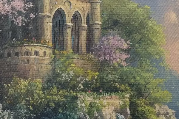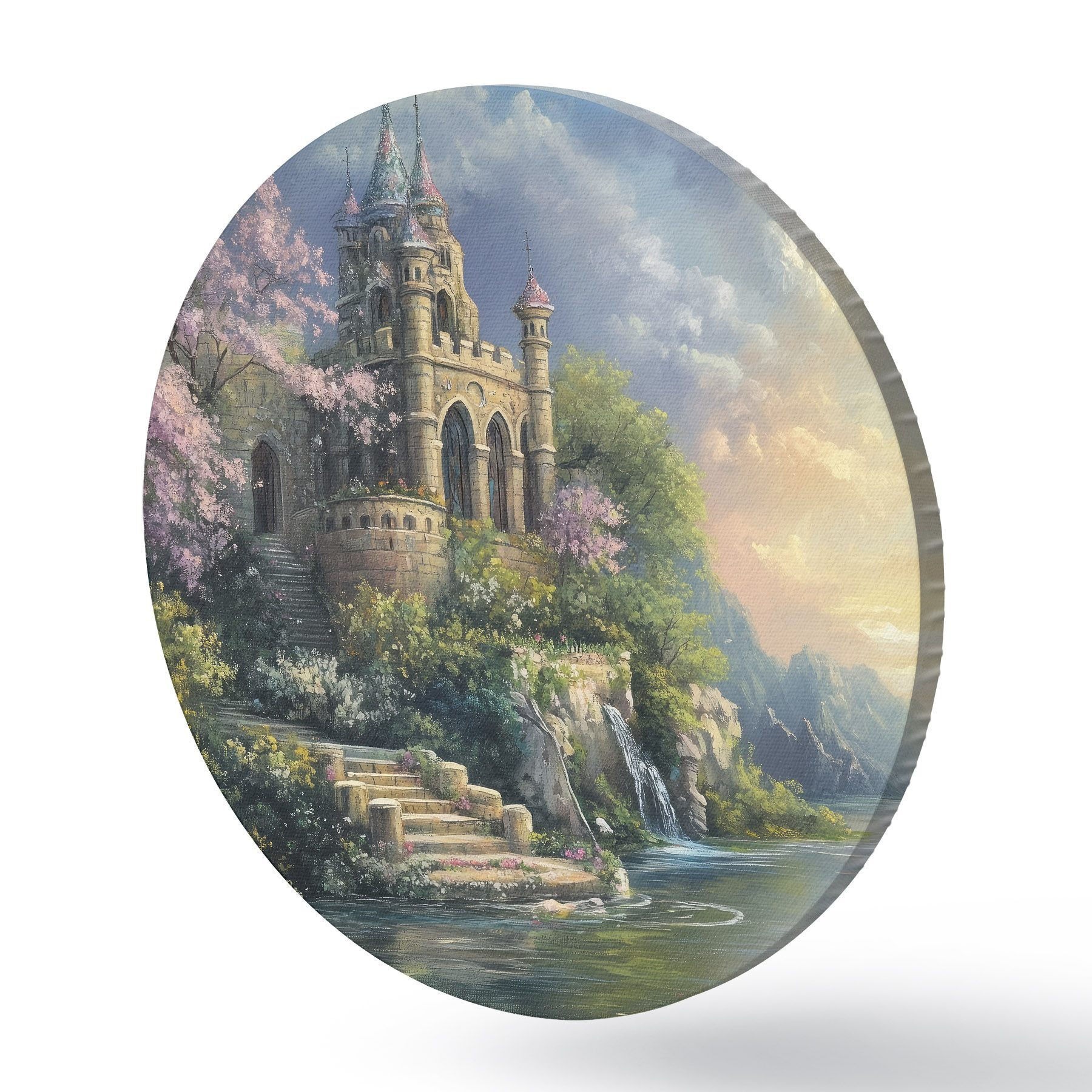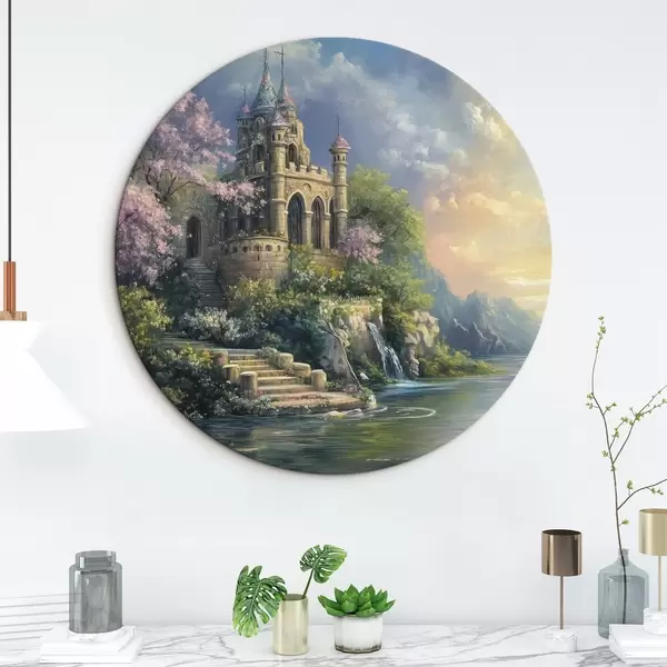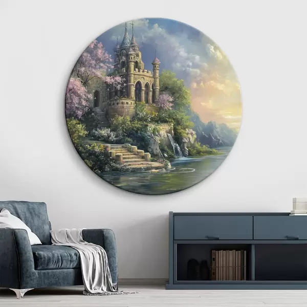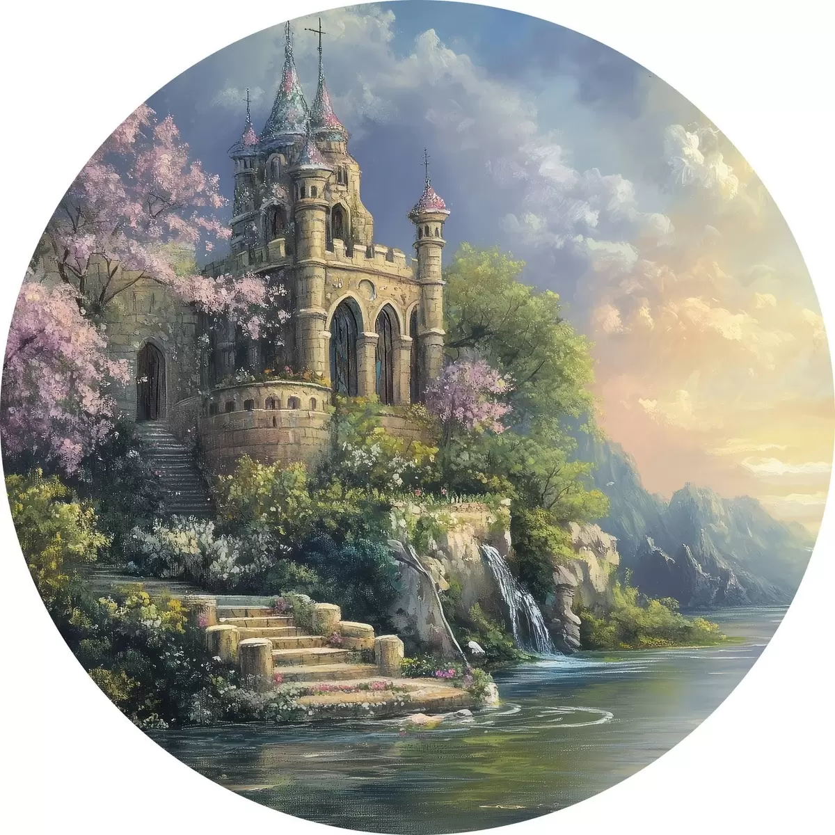 Runde Gemälde Schloss am Ufer des Sees r44329