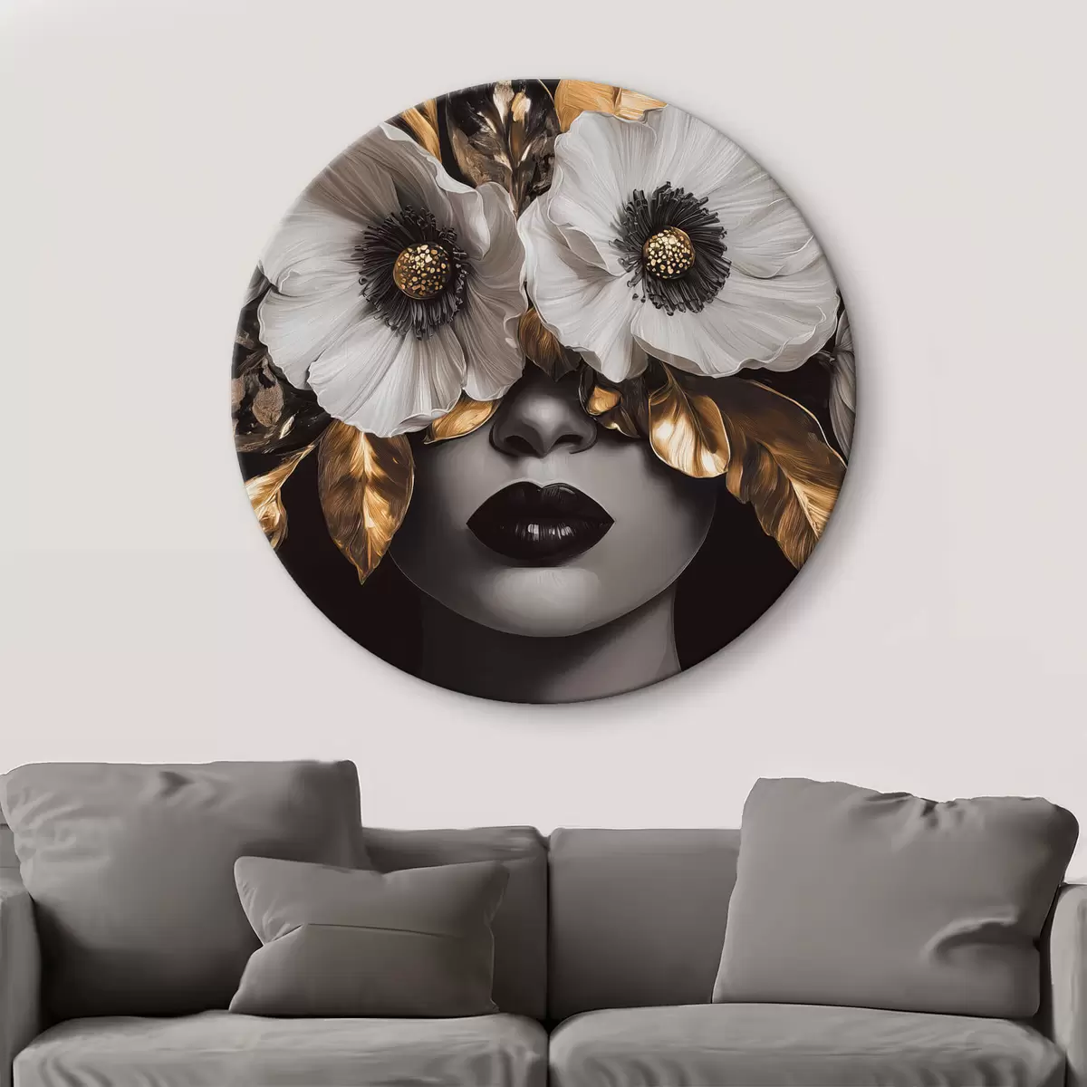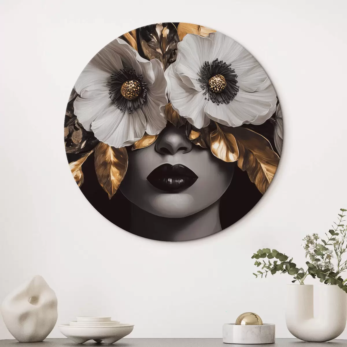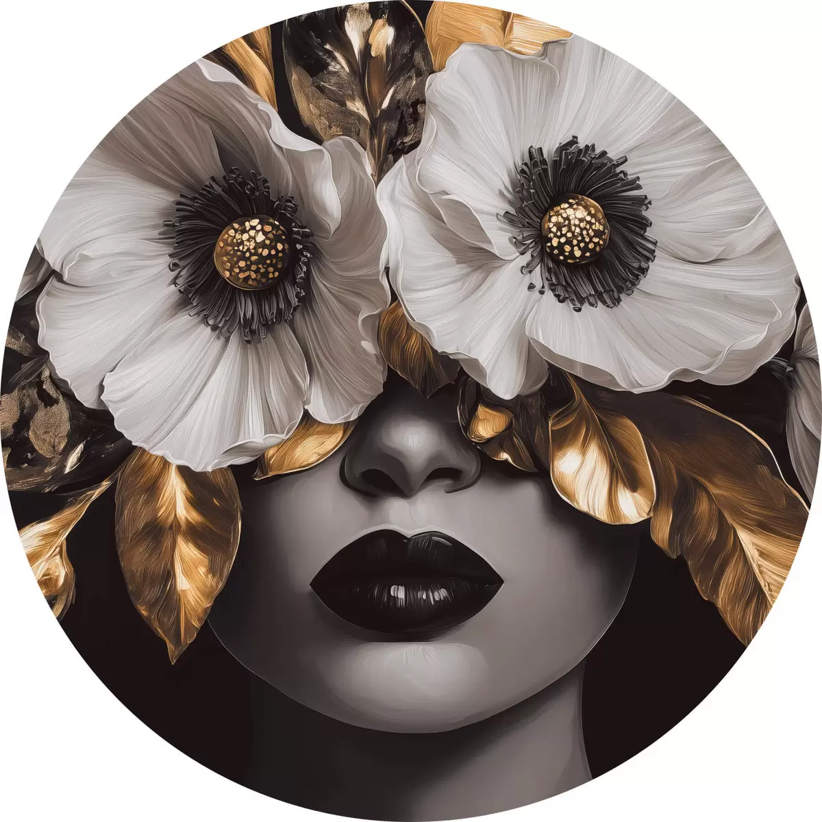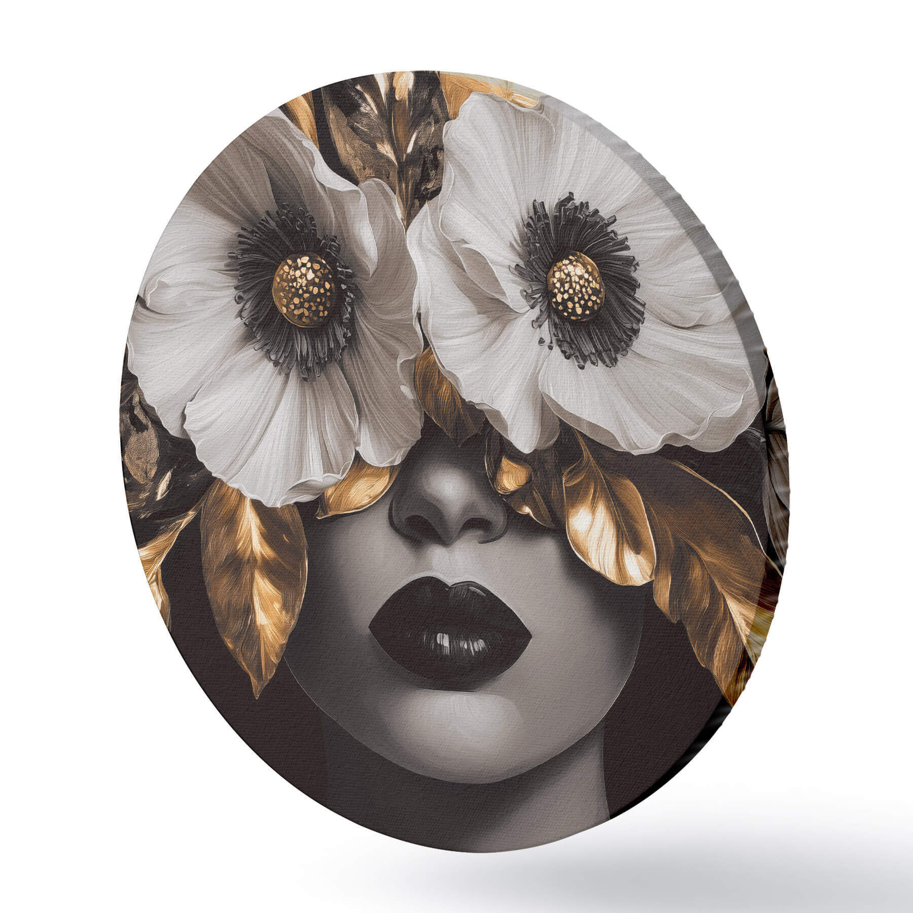 Runde Gemälde Halbabstraktes Porträt einer Frau mit Blumen r44365