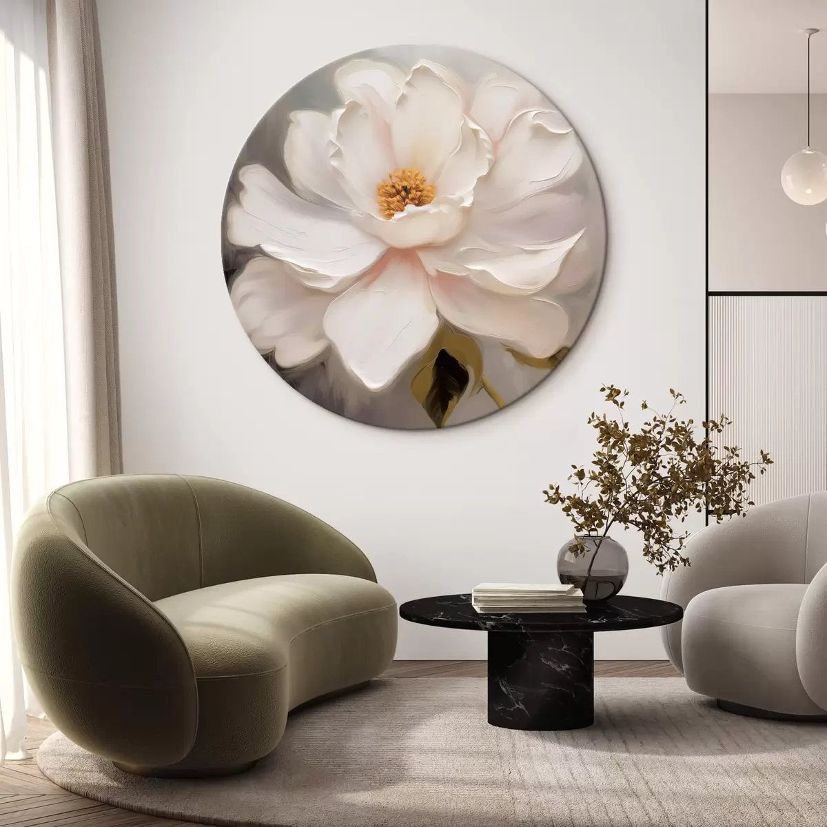 Runde Gemälde Große zart blühende Blume r44369