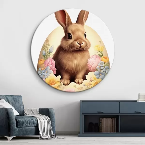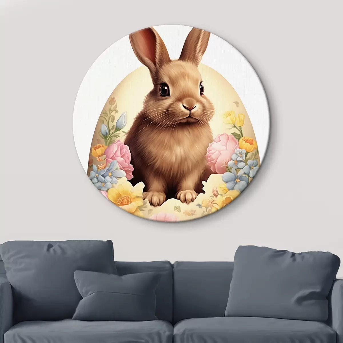 Runde Gemälde Kaninchen in Aquarellblumen r44383