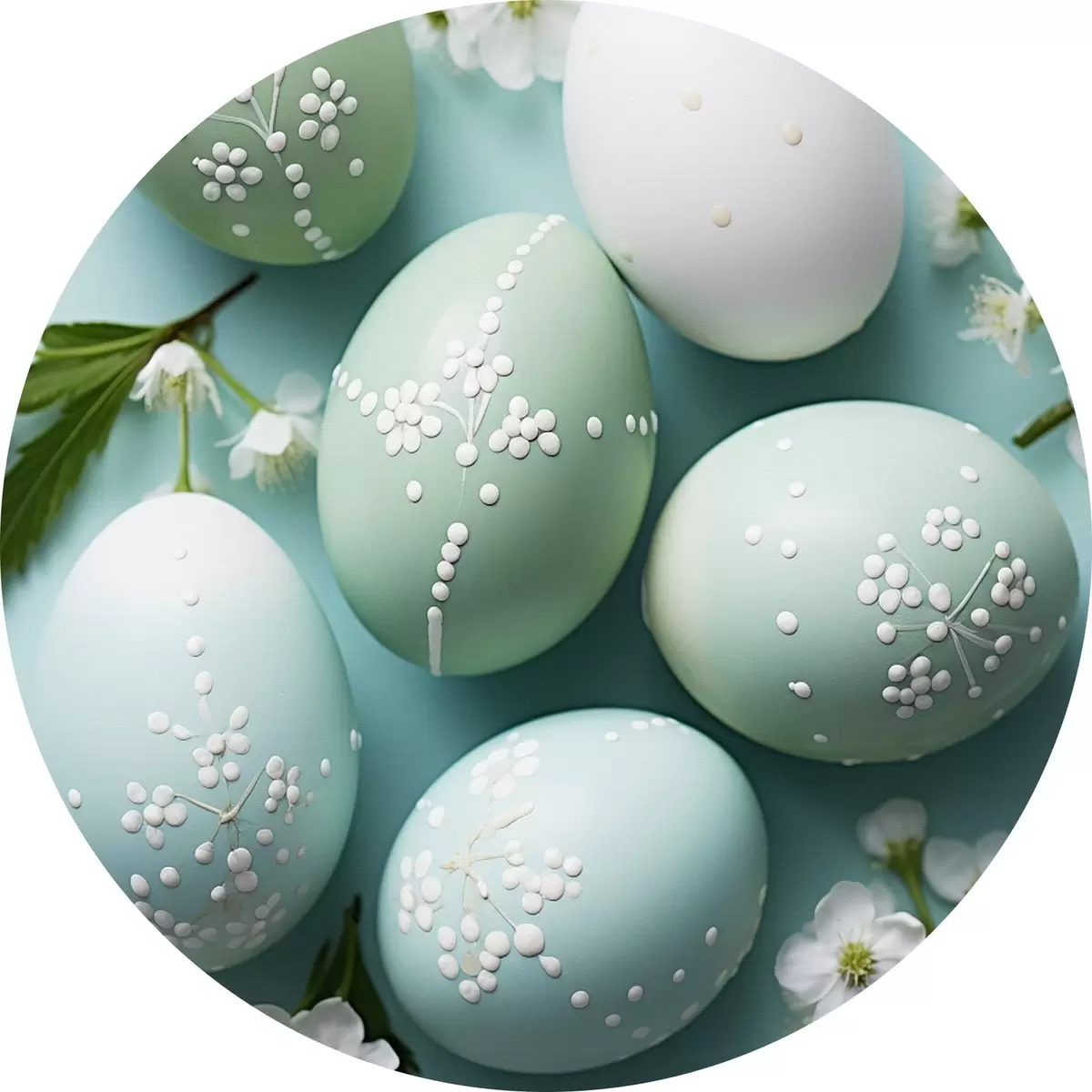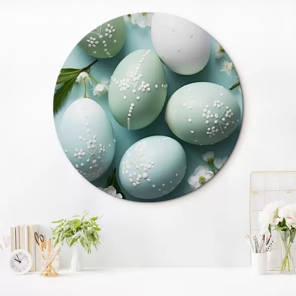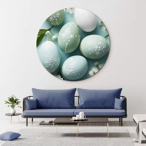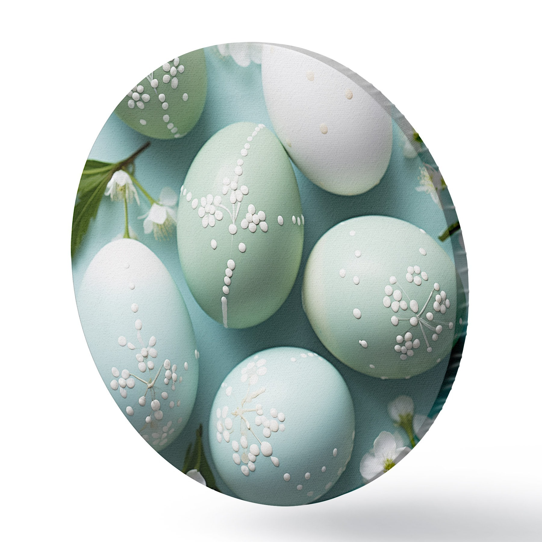 Runde Gemälde Hase mit Blumen auf einem zarten beigen Hintergrund im Aquarellstil r44386