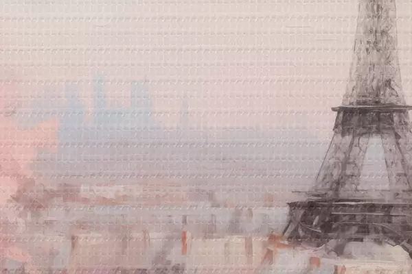 Bild Eiffelturm in Paris mit Kirschblütenbäumen im Frühling, sanfte Pastellfarben Nr r44398
