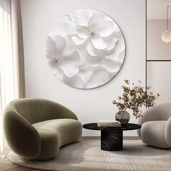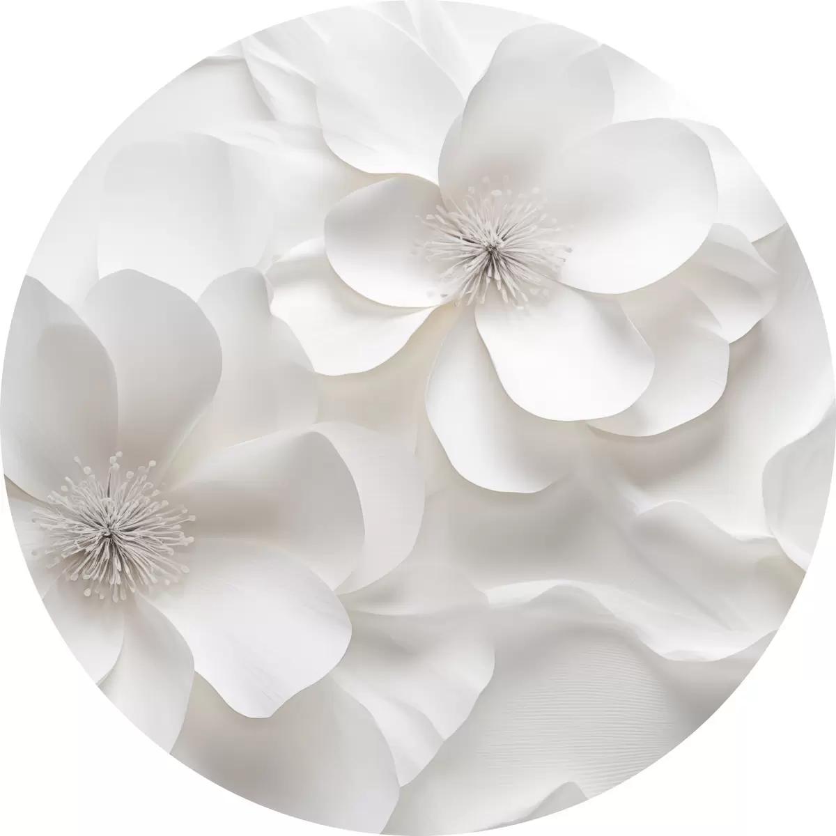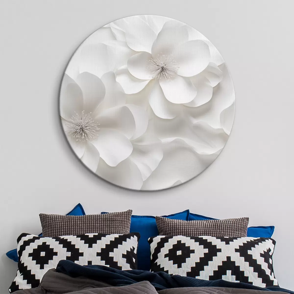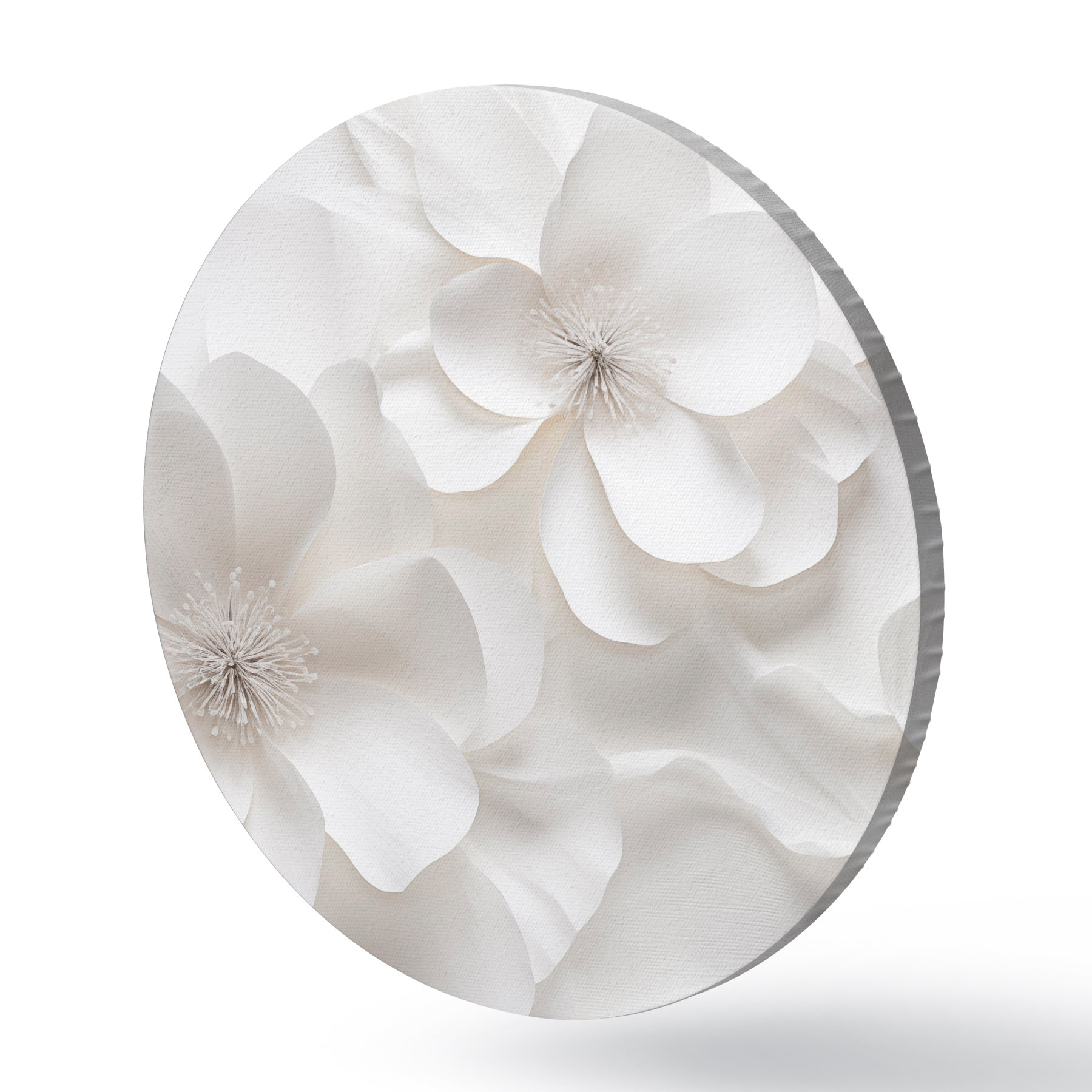 Runde Gemälde Weiße Zierblumen mit zarten Blütenblättern und verschlungenen Staubgefäßen r44406