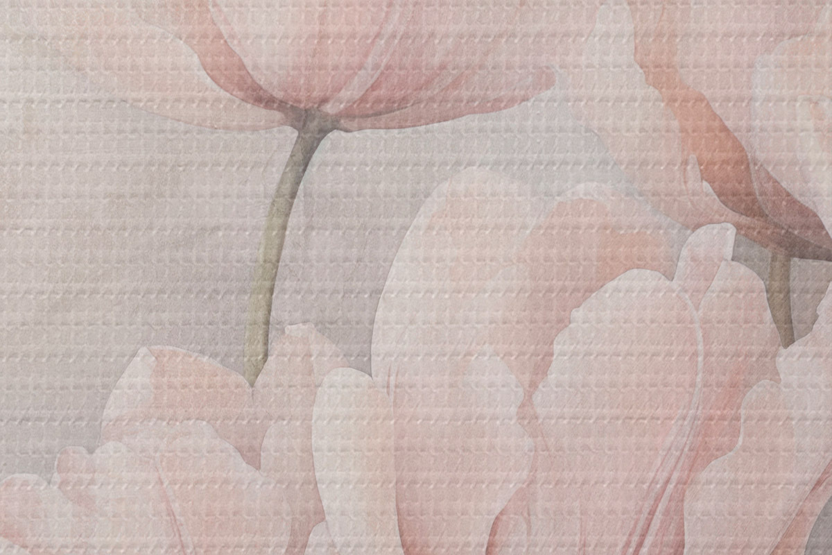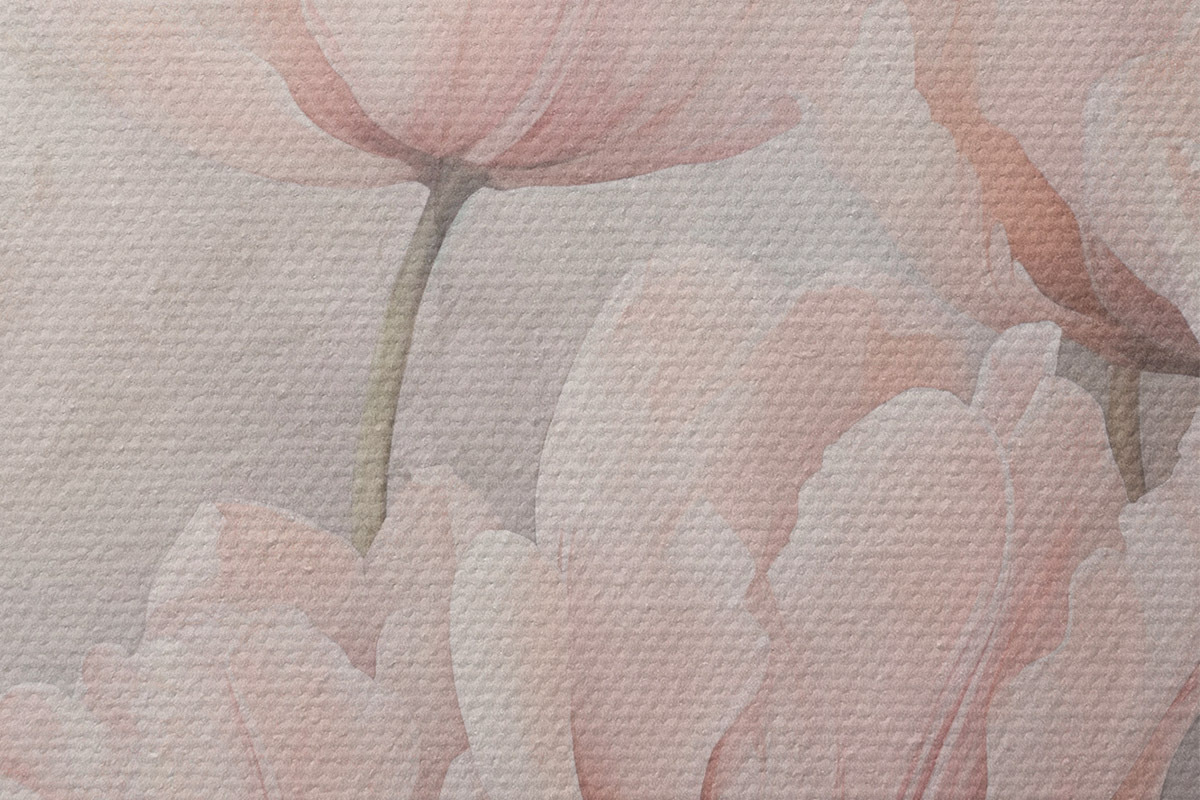 Bild Rosafarbene Tulpen mit langen Stielen, weiche, gedämpfte Farben, hellgrauer Hintergrund Nr r44407
