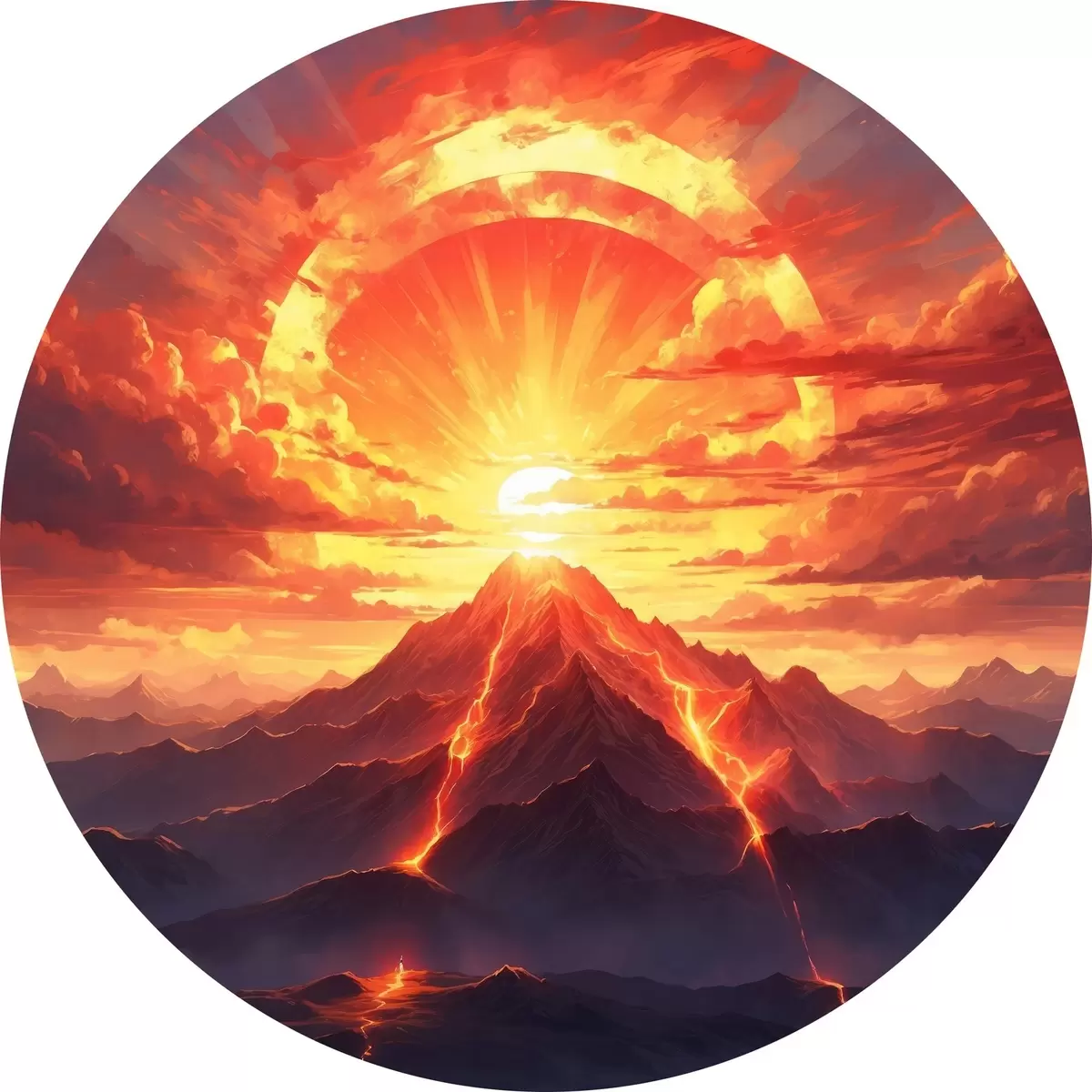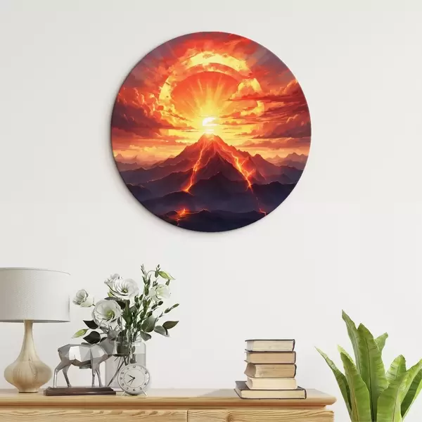 Runde Gemälde Sonnenuntergang in der Nähe des Vulkans r44432