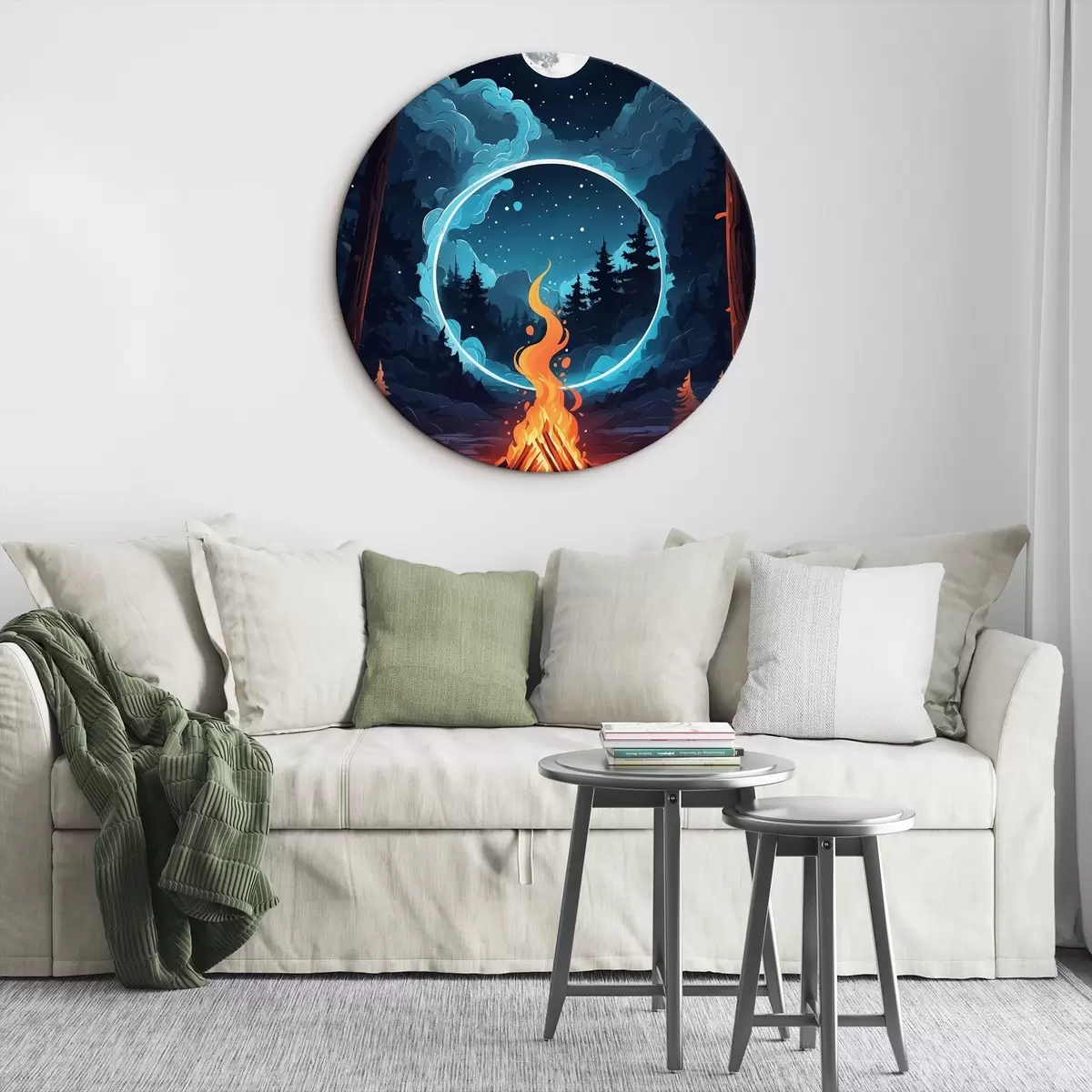 Runde Gemälde Lagerfeuer im nächtlichen Wald r44436