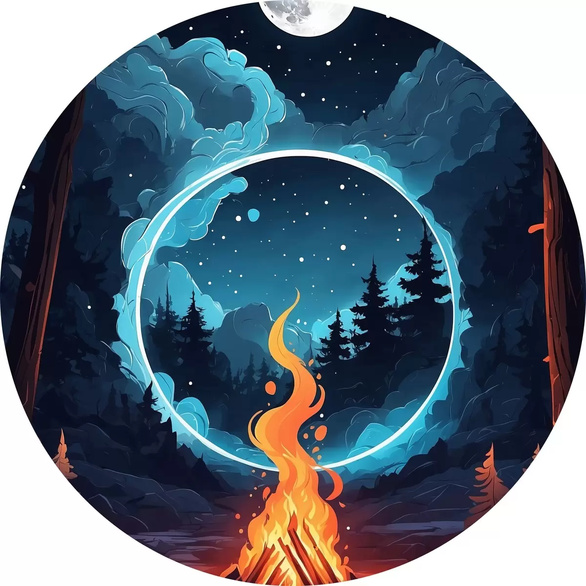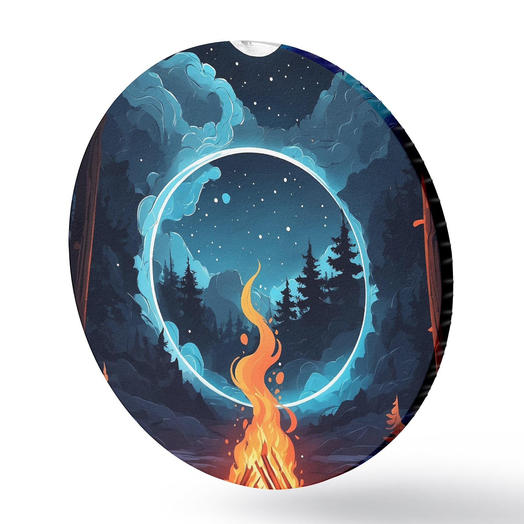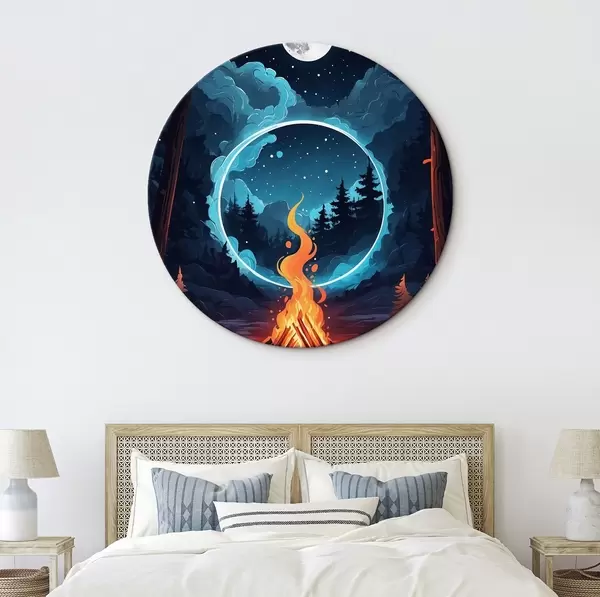 Runde Gemälde Lagerfeuer im nächtlichen Wald r44436
