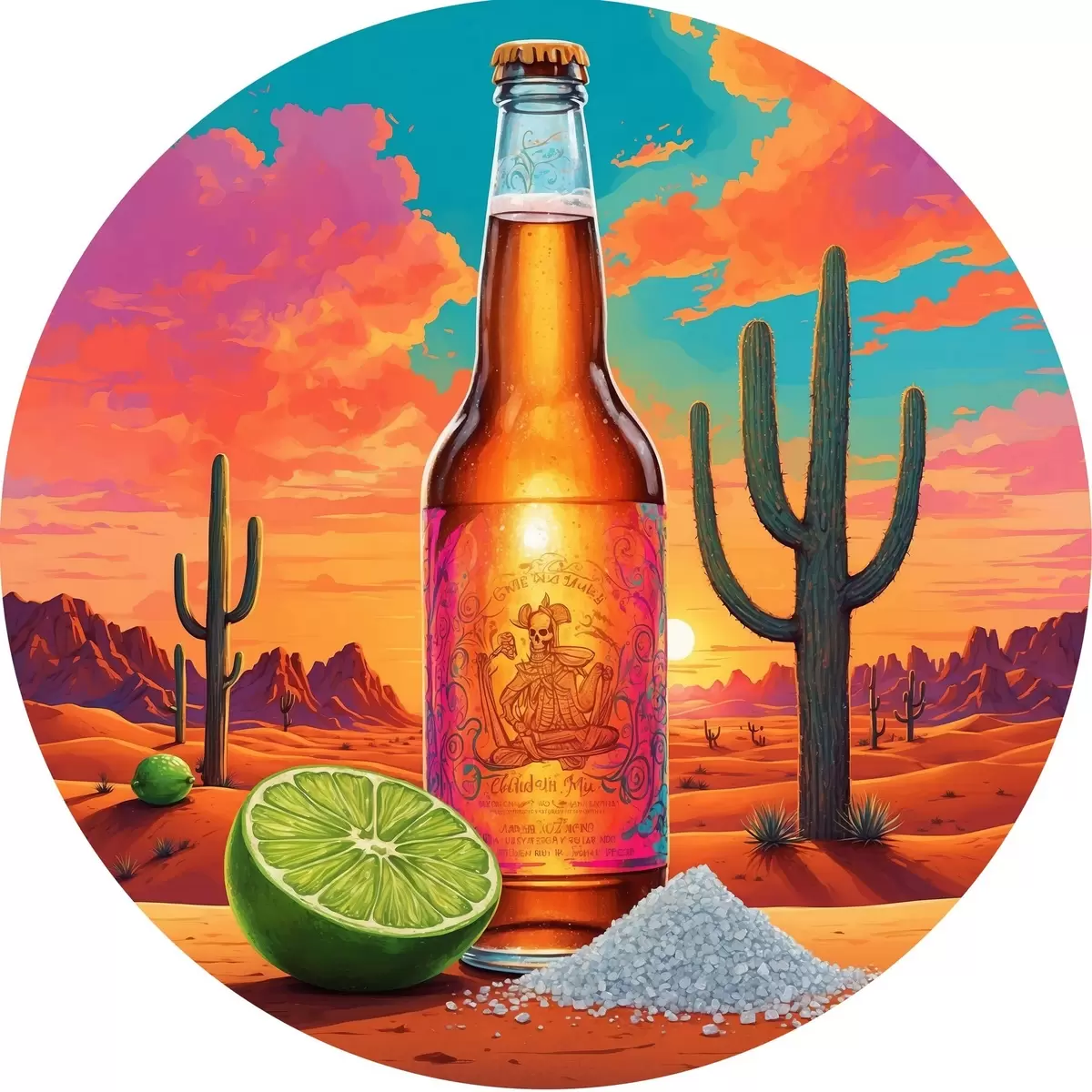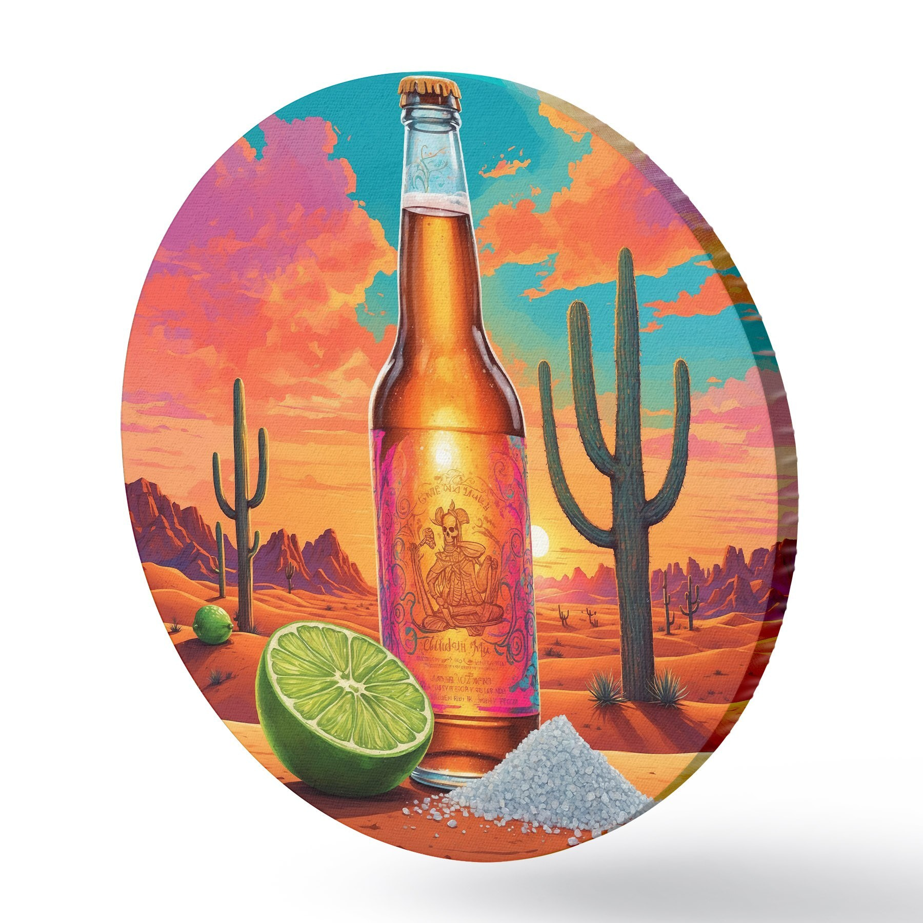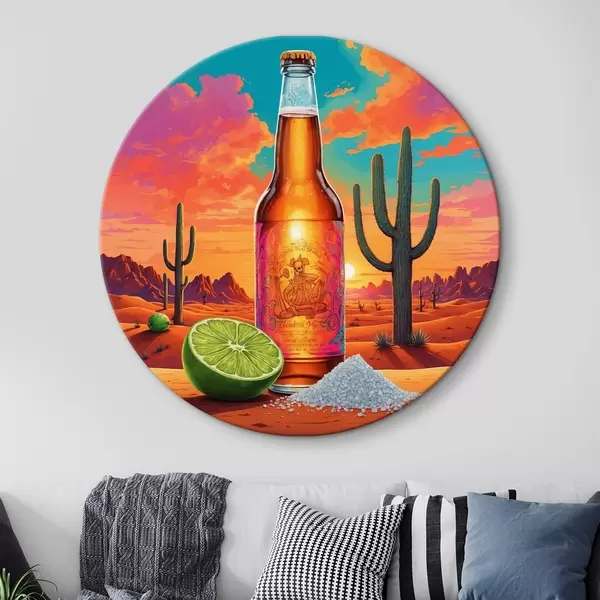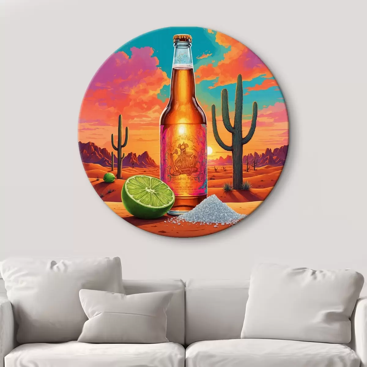 Runde Gemälde Bier und Kalk auf dem Hintergrund amerikanischer Einöden r44438