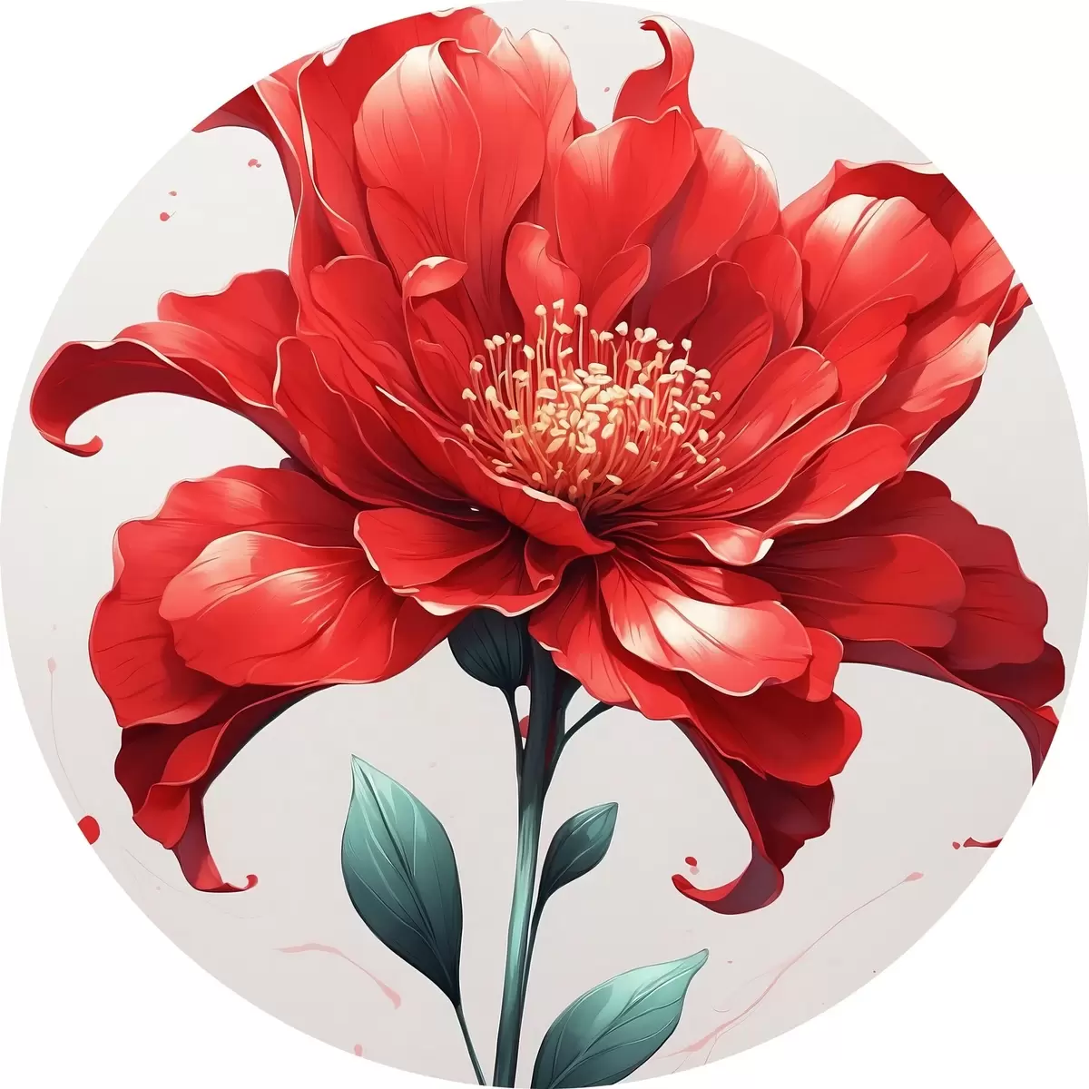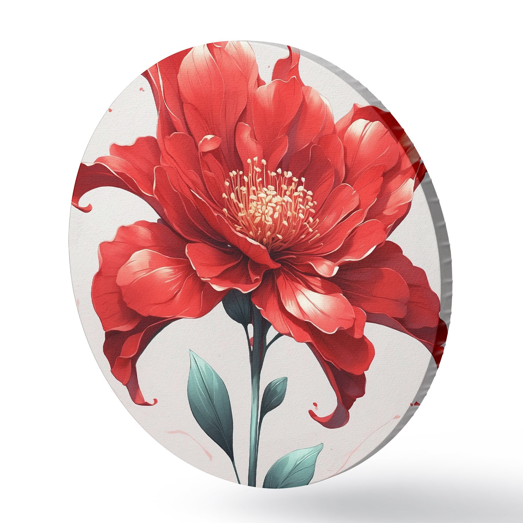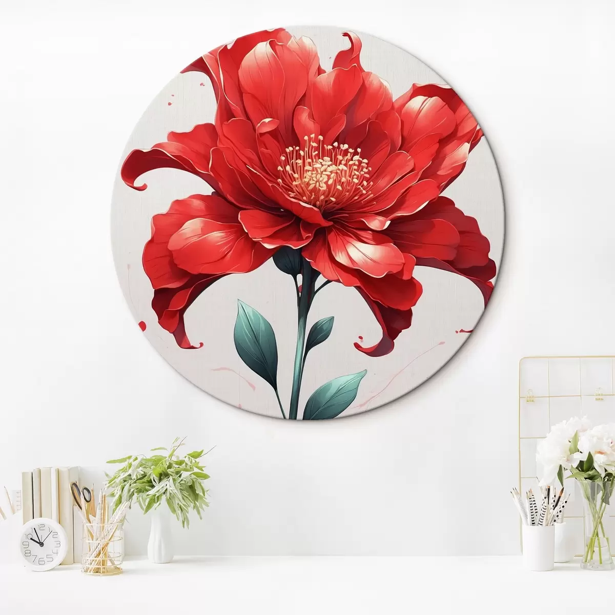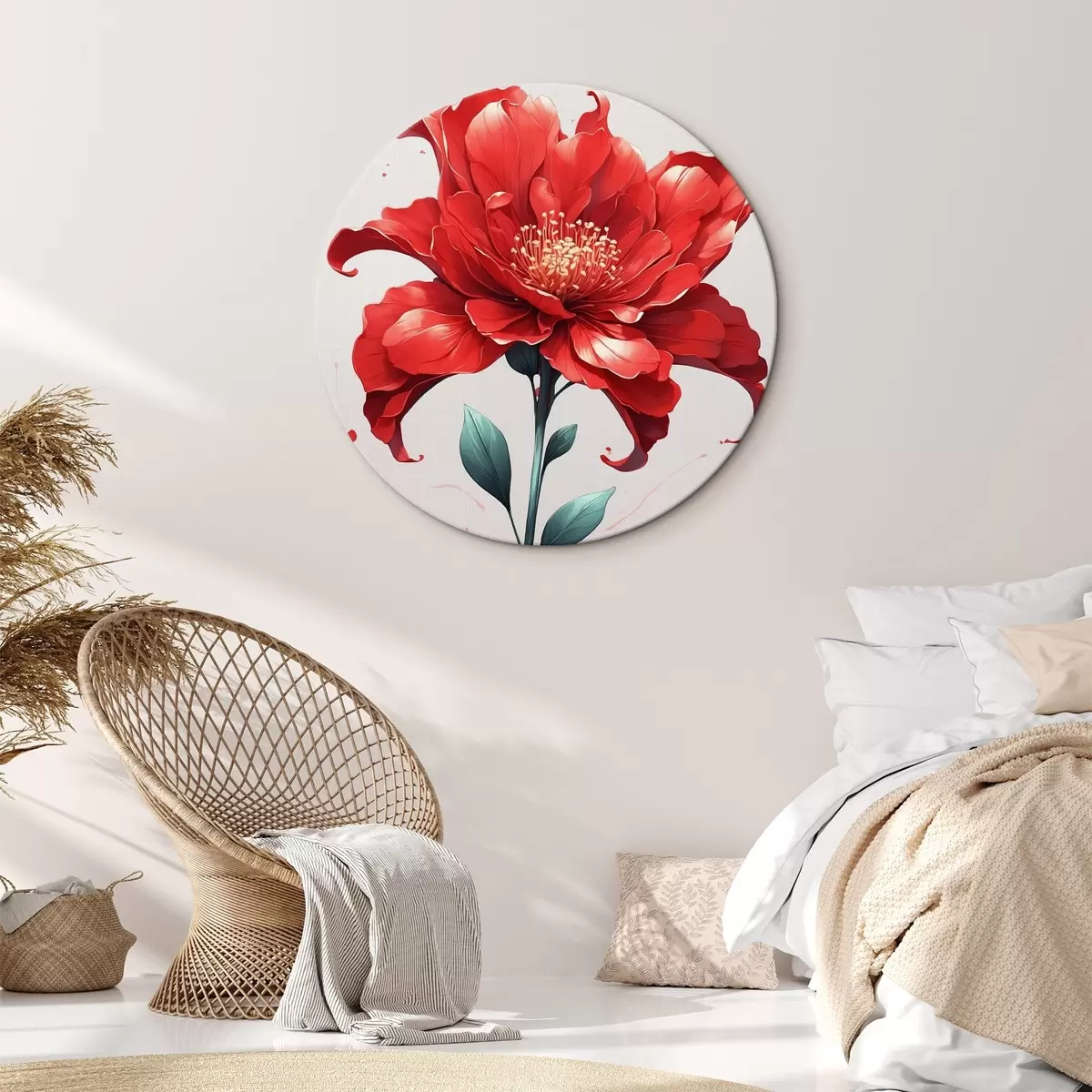 Runde Gemälde Rote Blume auf weiß-rotem Hintergrund r44442