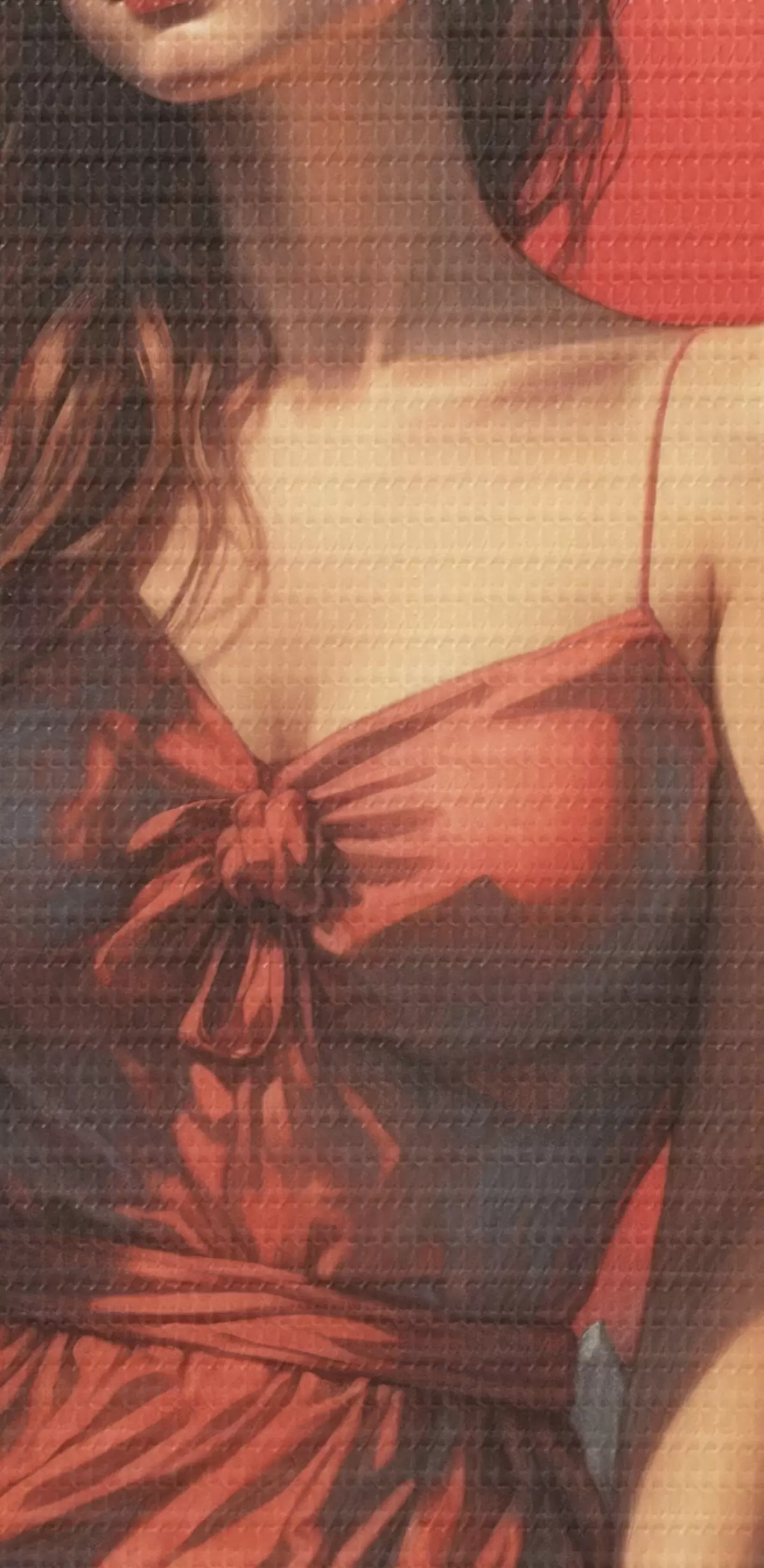 Das Bild kann vorsichtig mit einem trockenen, weichen Tuch oder Schwamm abgewischt werden; es wird nicht empfohlen, feuchte Produkte zu verwenden. Die Verwendung eines feuchten Schwamms ist nur zulässig, wenn das Bild lackiert wurde.