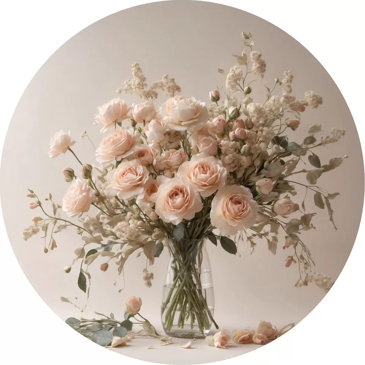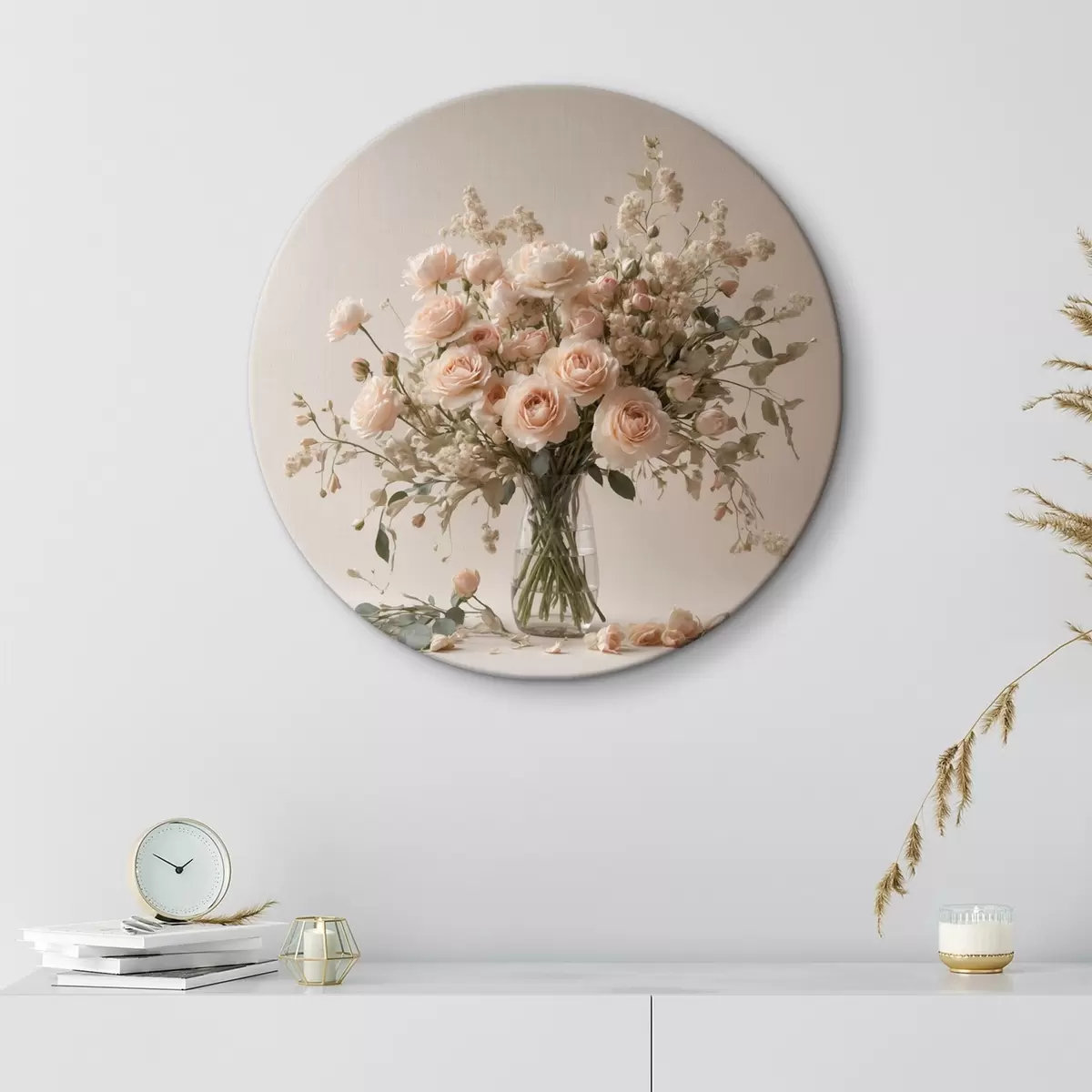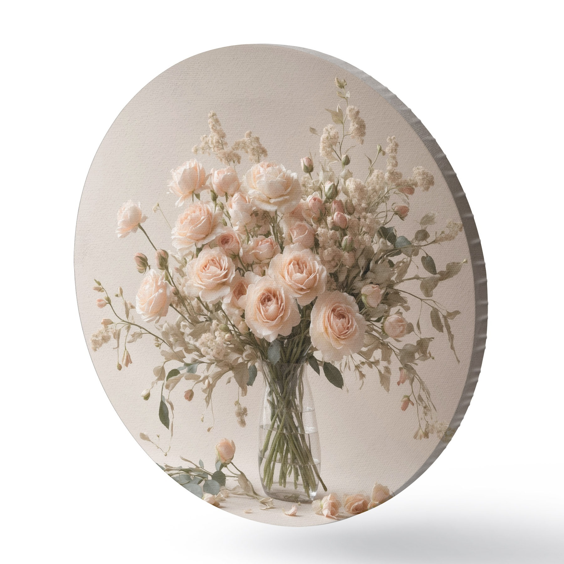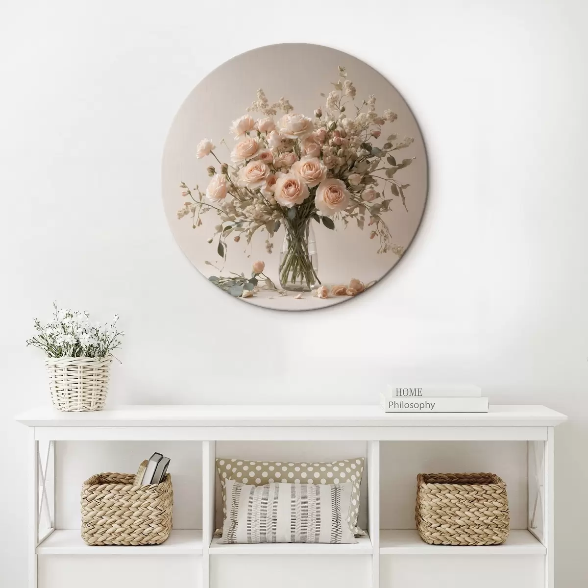 Runde Gemälde Weiße Rosen in transparenter Vase r44451
