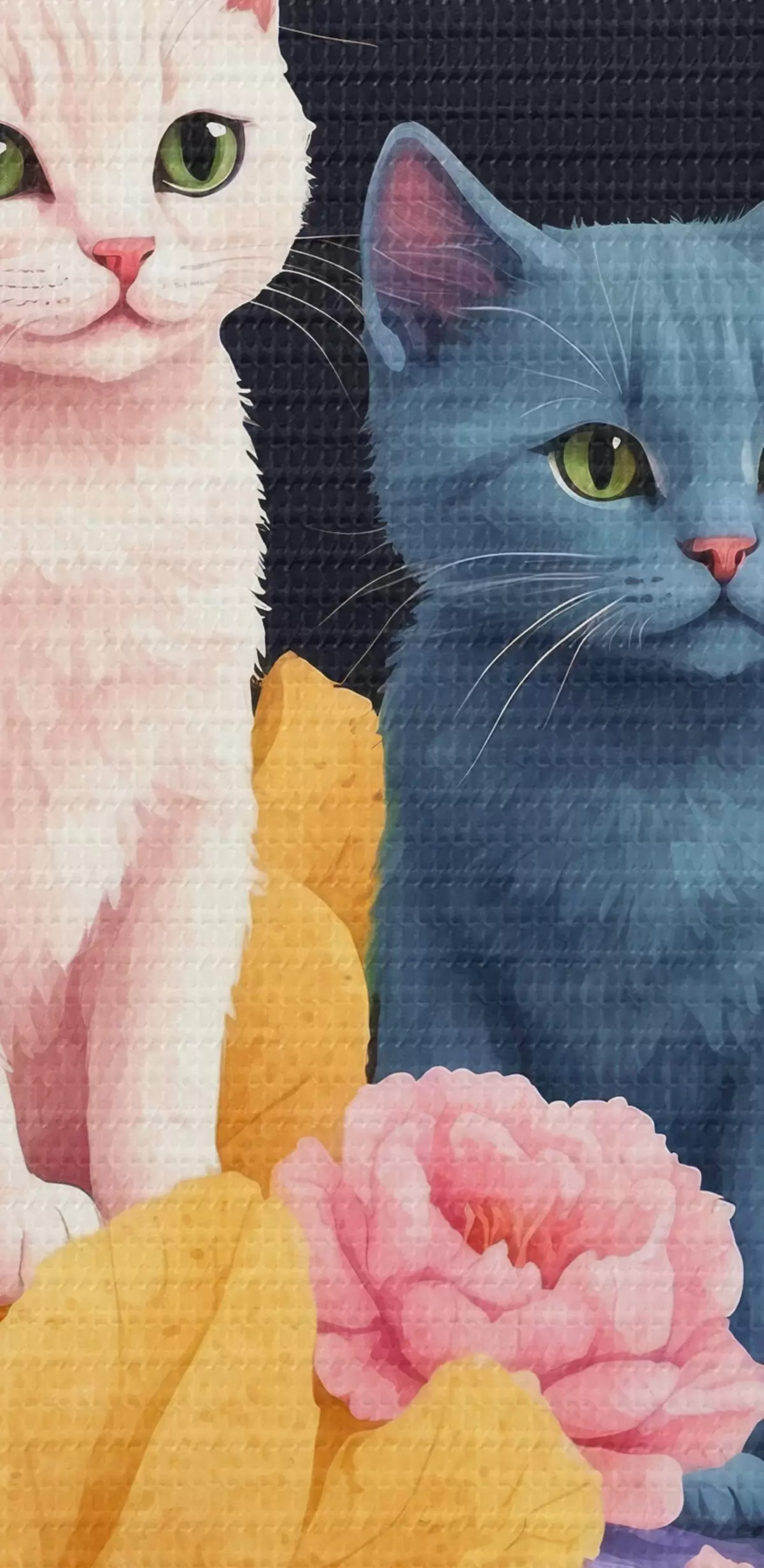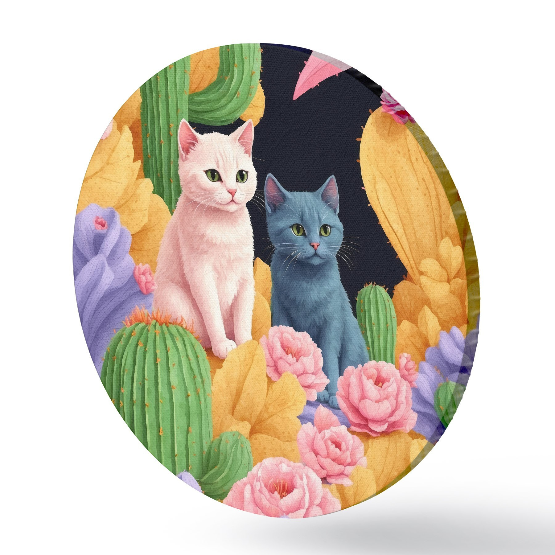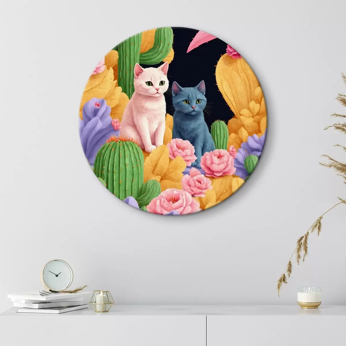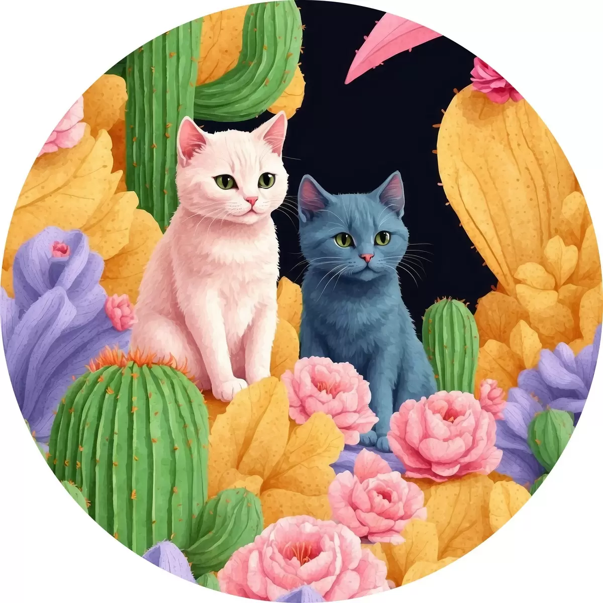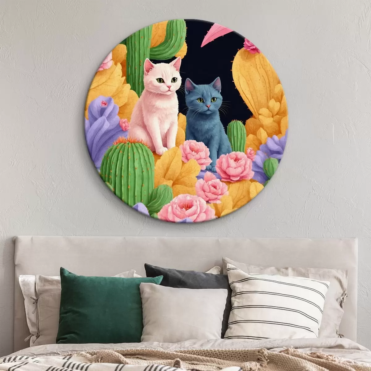 Runde Gemälde Künstliche Katzen zwischen Blumen und Kakteen r44452