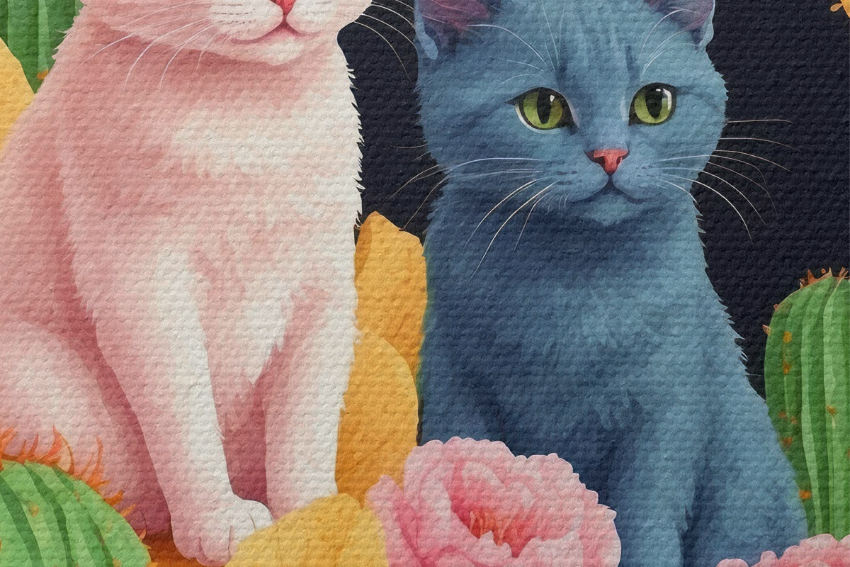 Bild Künstliche Katzen zwischen Blumen und Kakteen Nr r44452