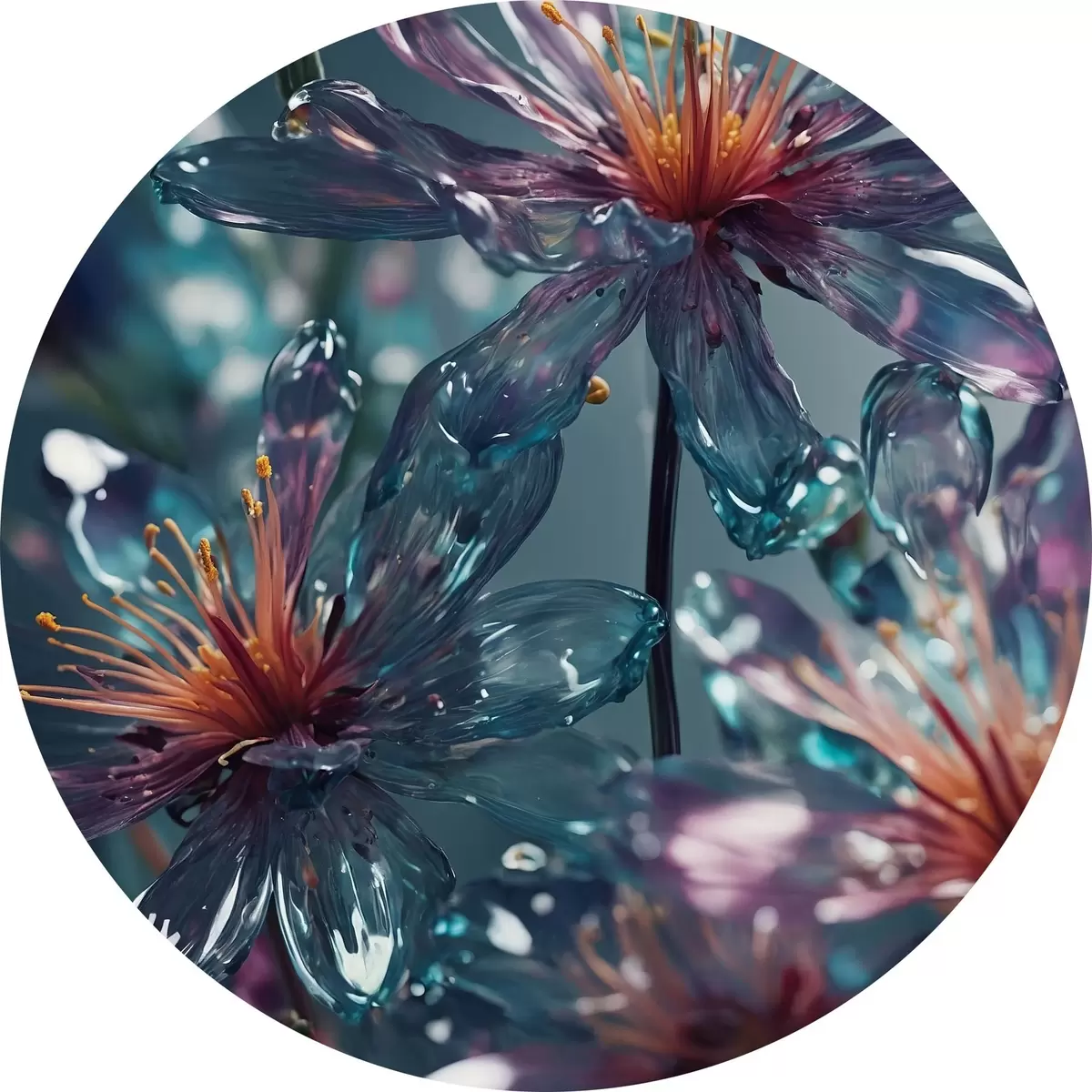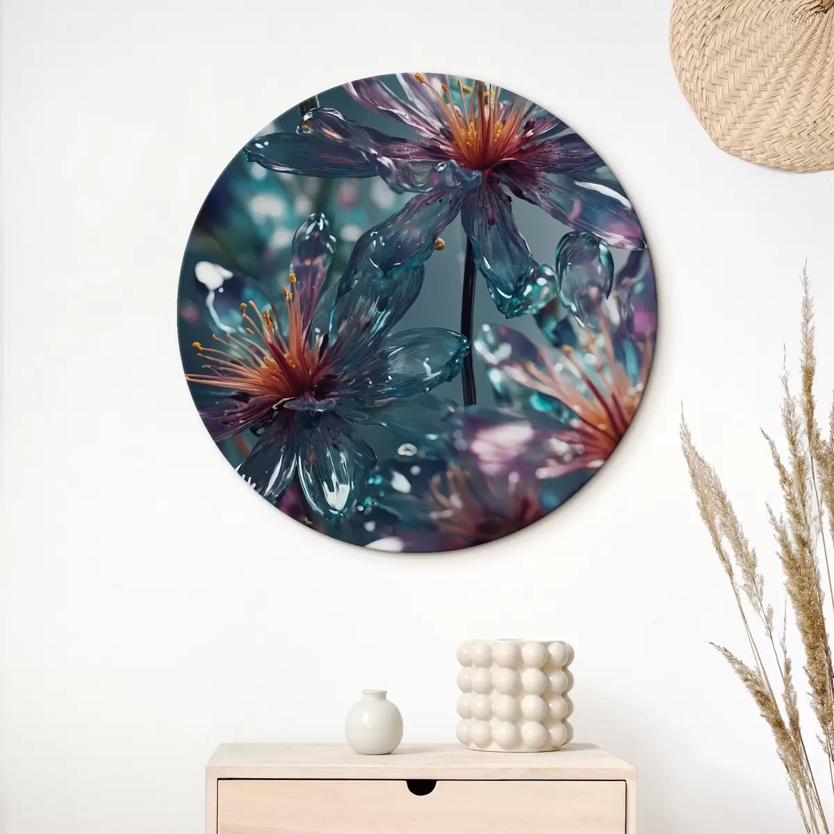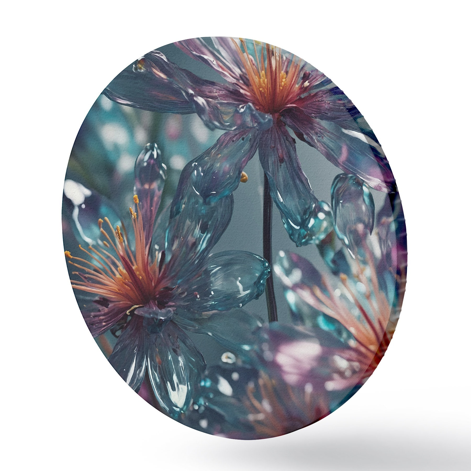 Runde Gemälde Transparente Blumen auf unscharfem Hintergrund r44469