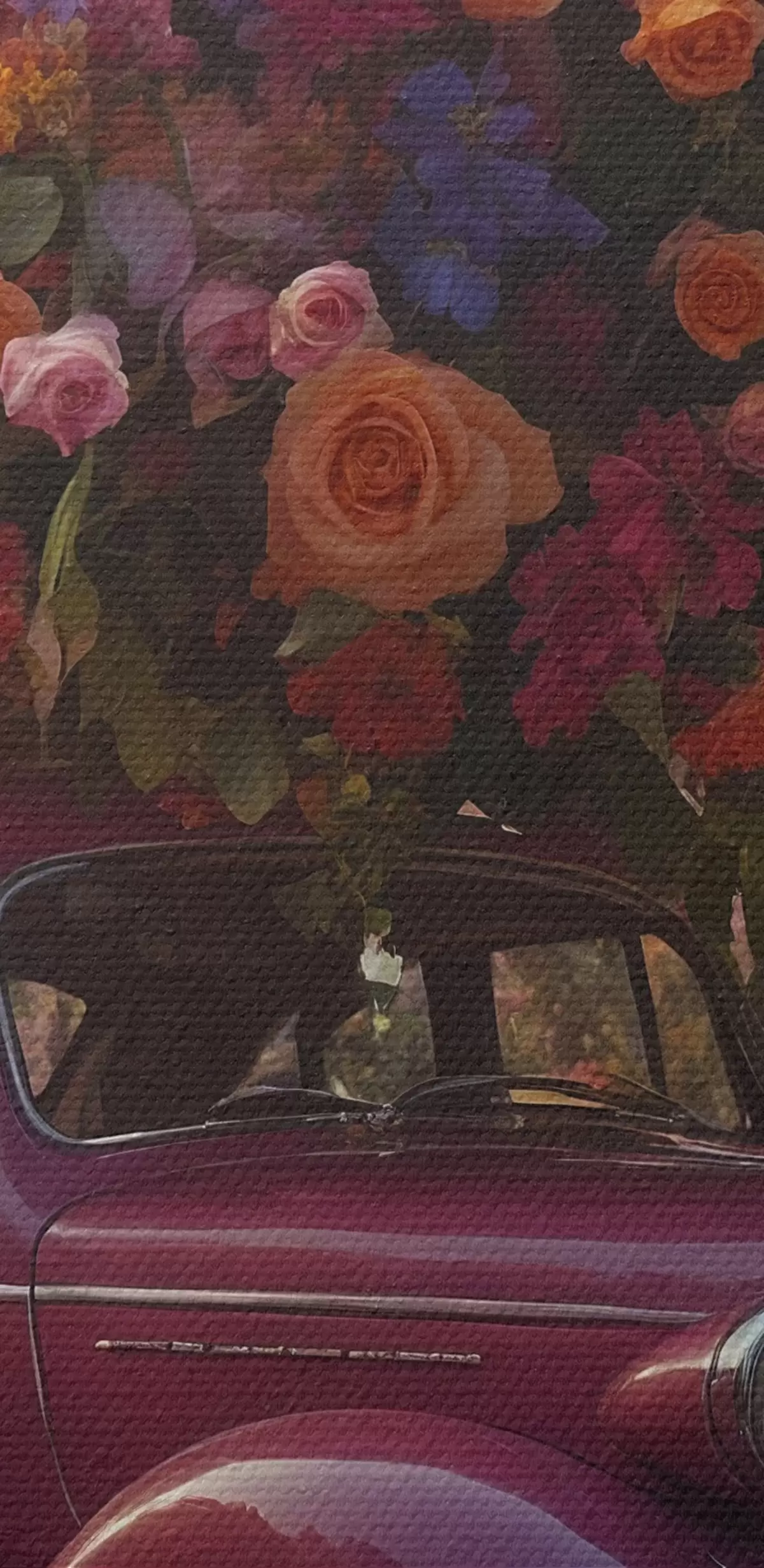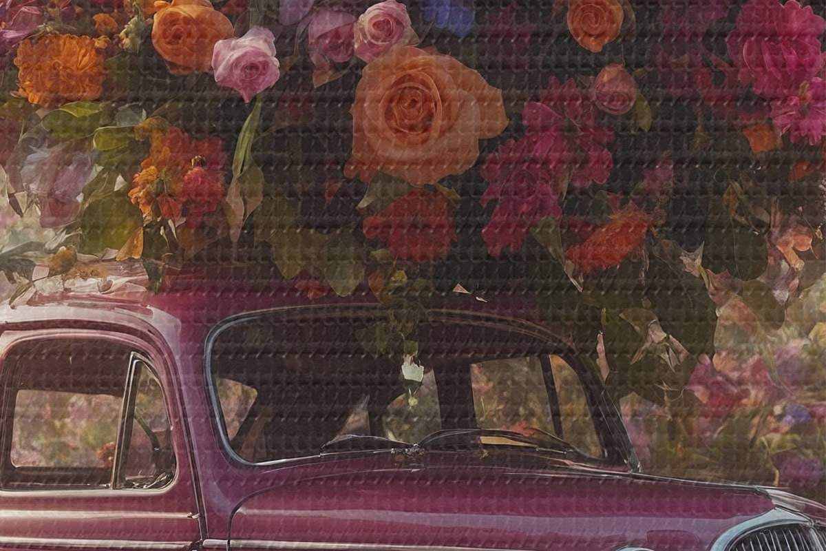 Bild Retro-Auto und ein riesiger Blumenstrauß Nr r44471