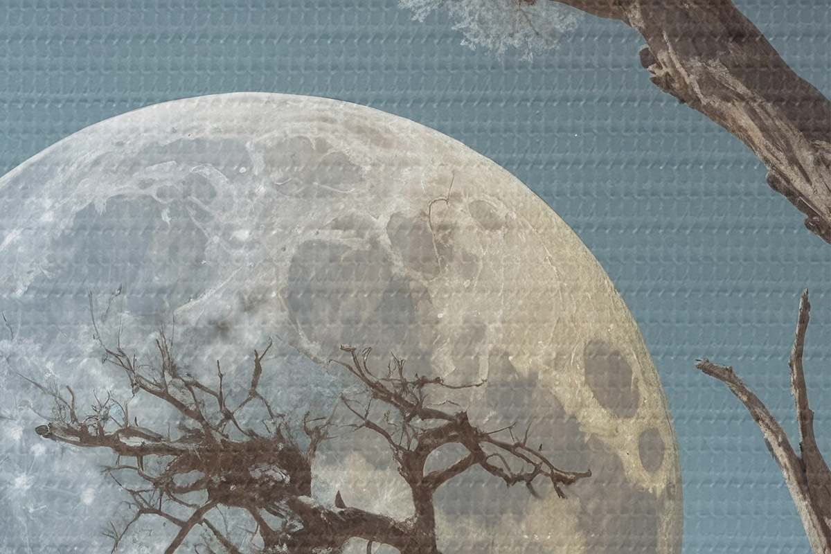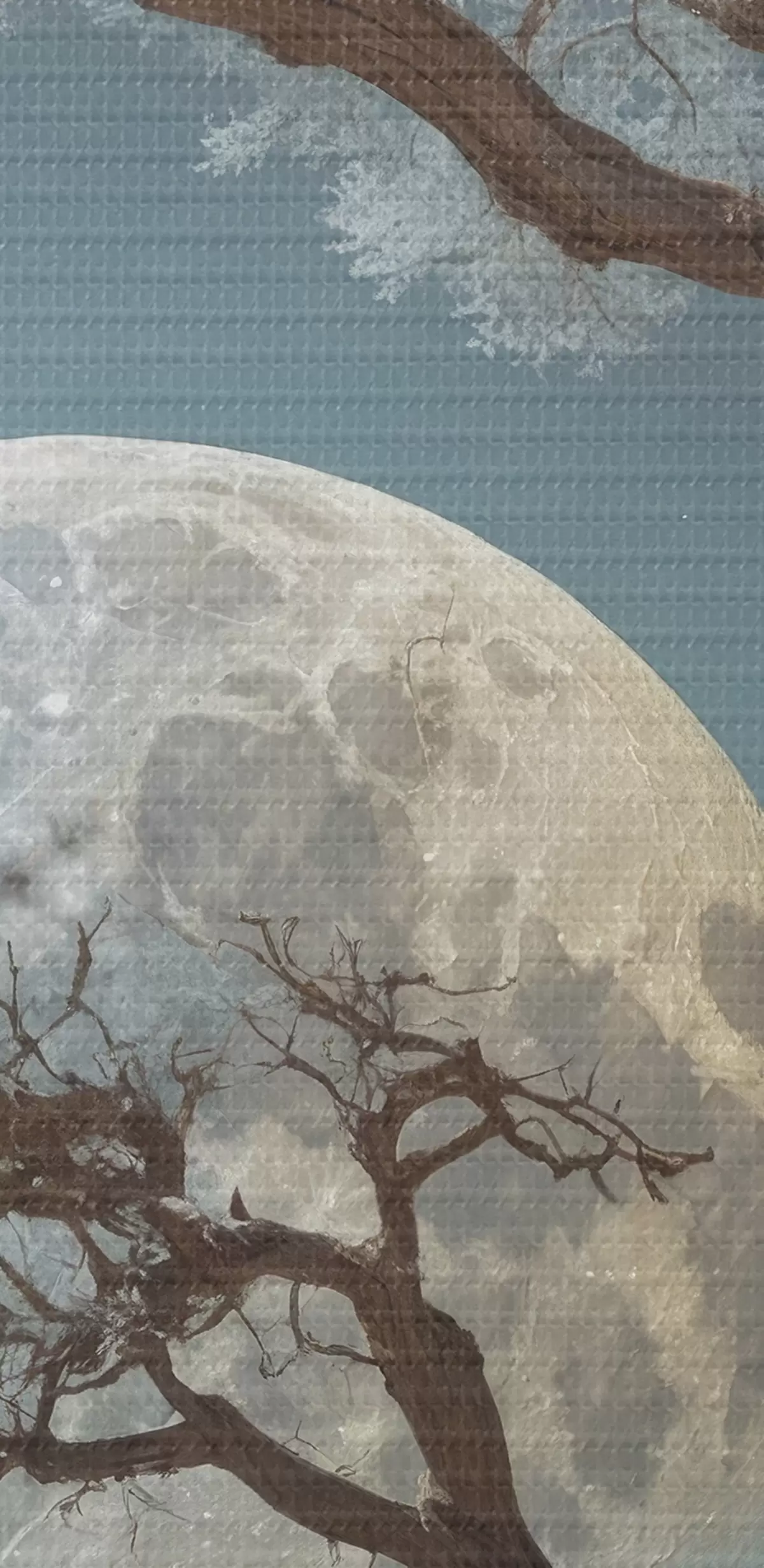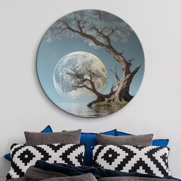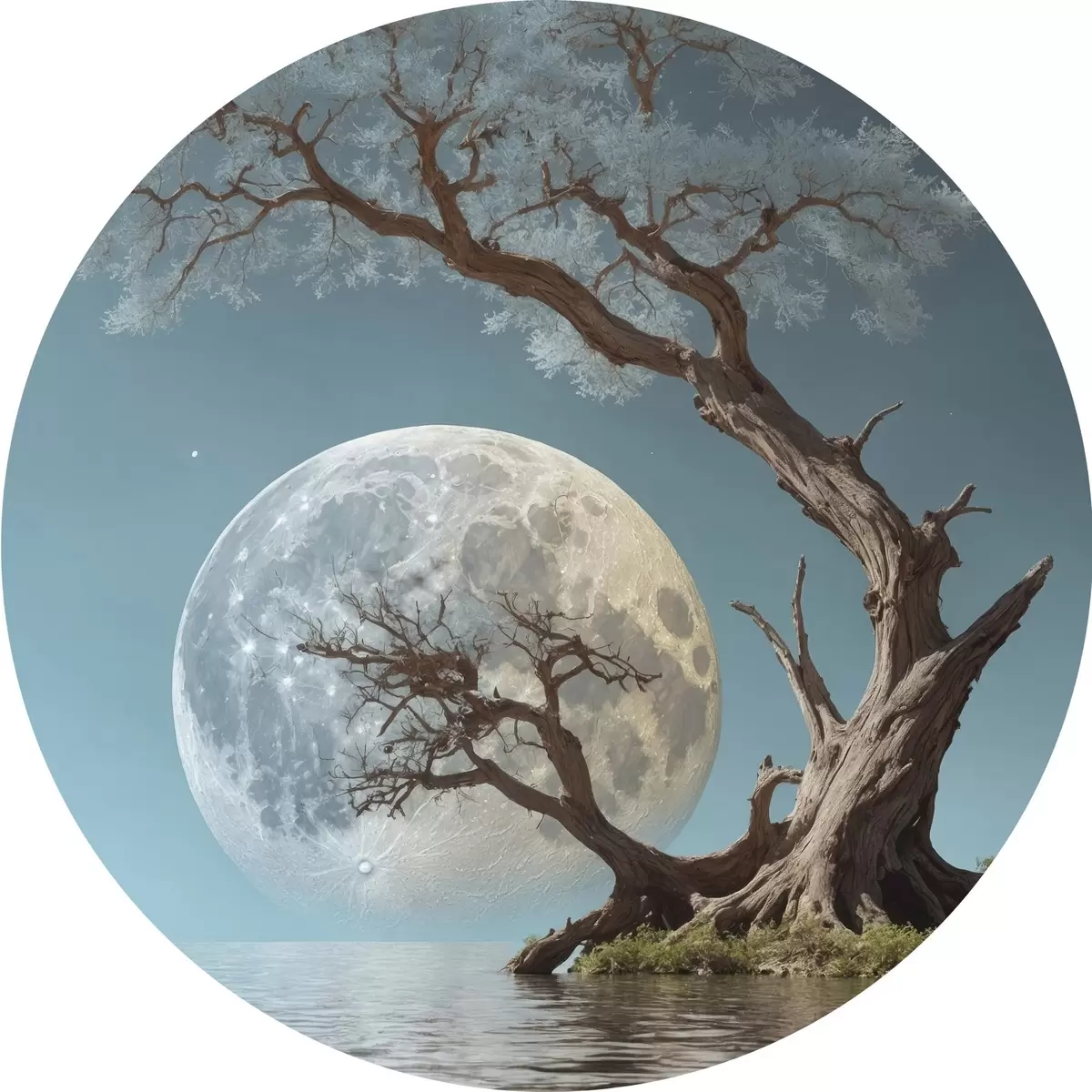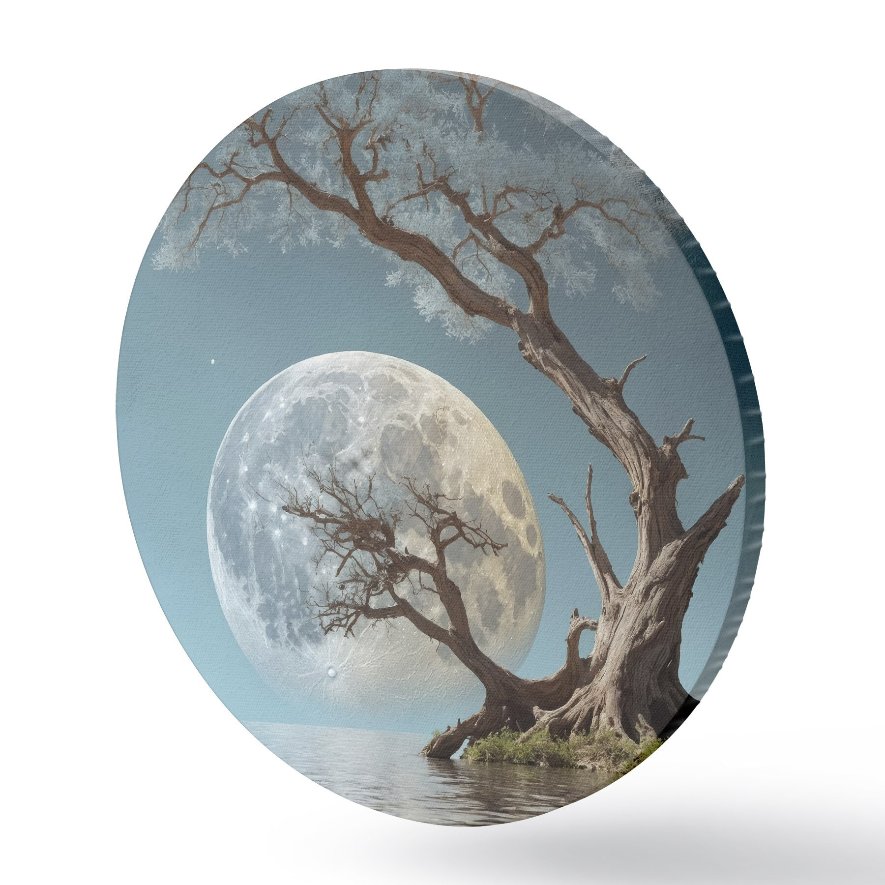 Runde Gemälde Baum wächst in der Mitte eines Sees auf Mond Hintergrund r44481