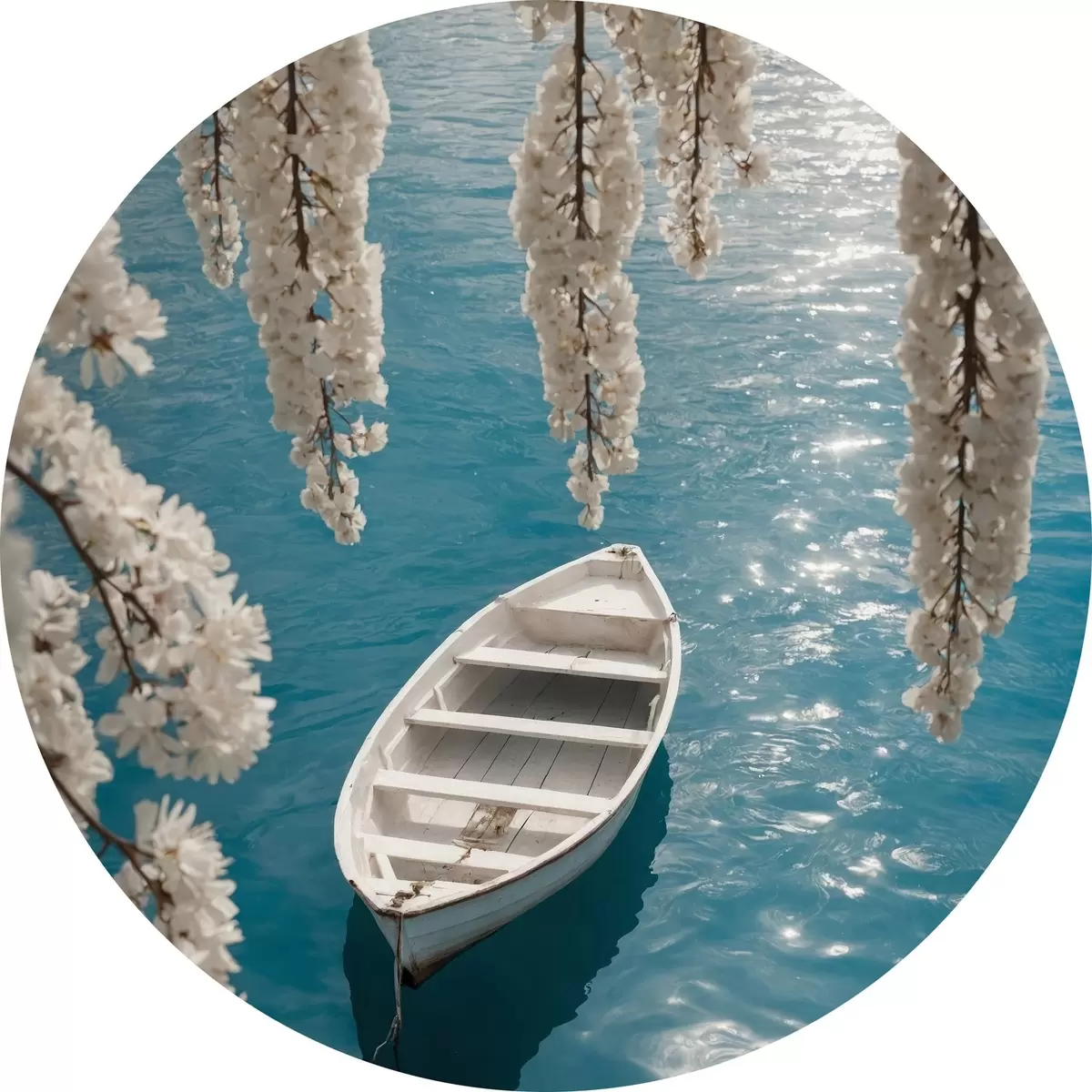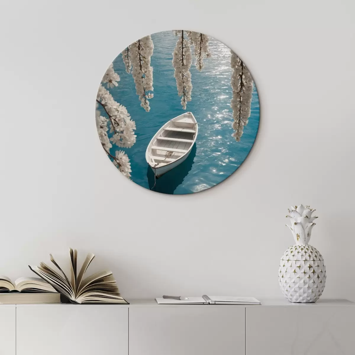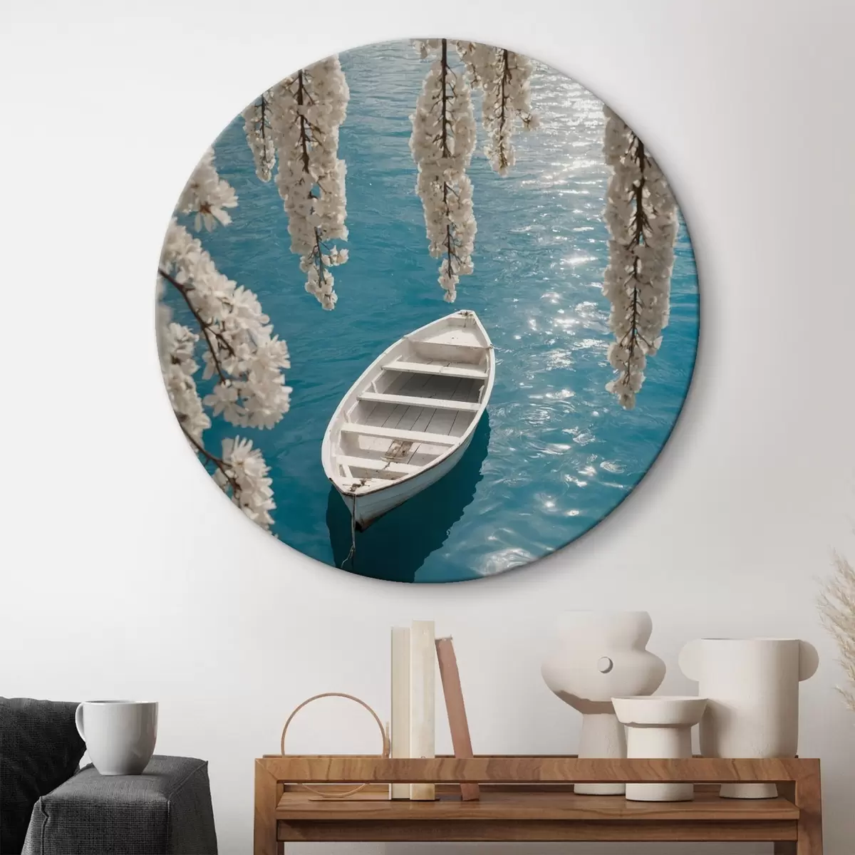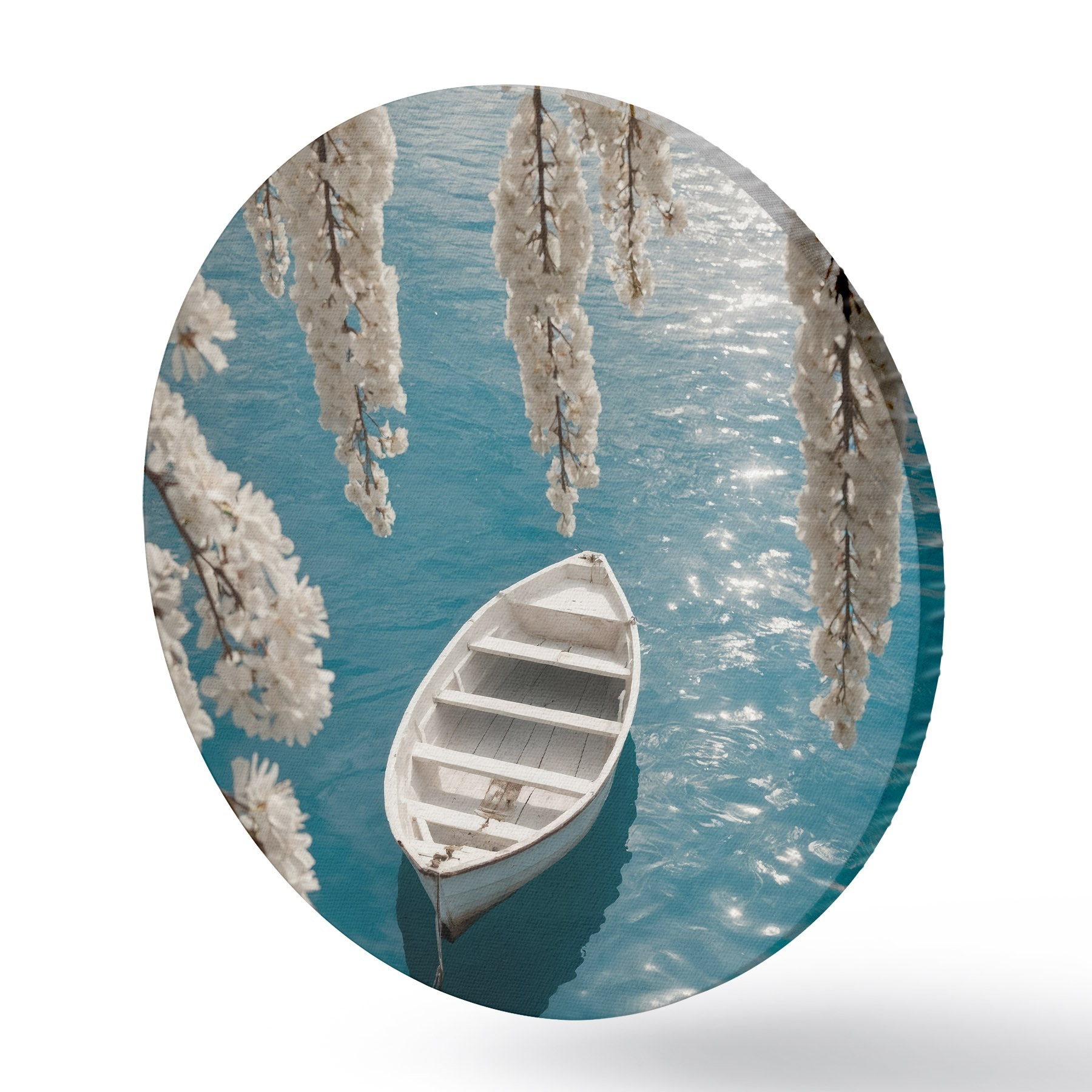 Runde Gemälde Weißes Boot unter einem Baum r44482