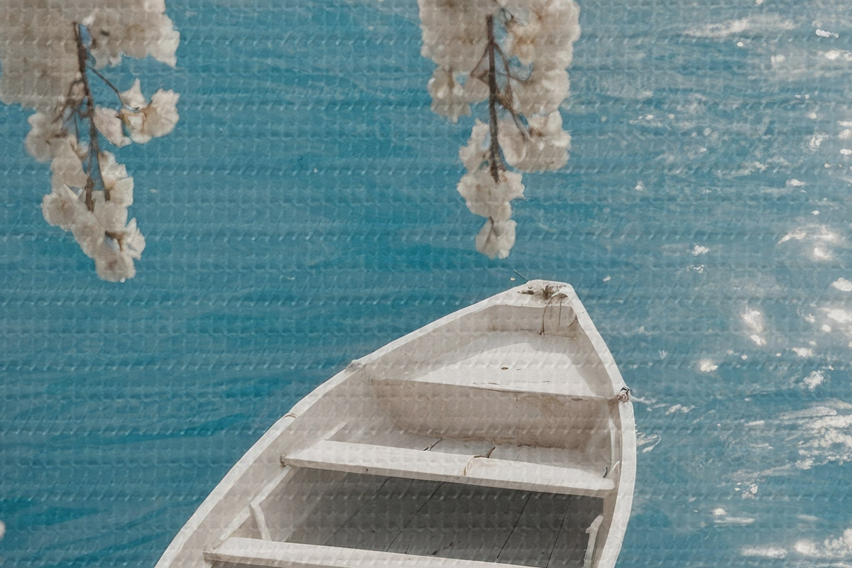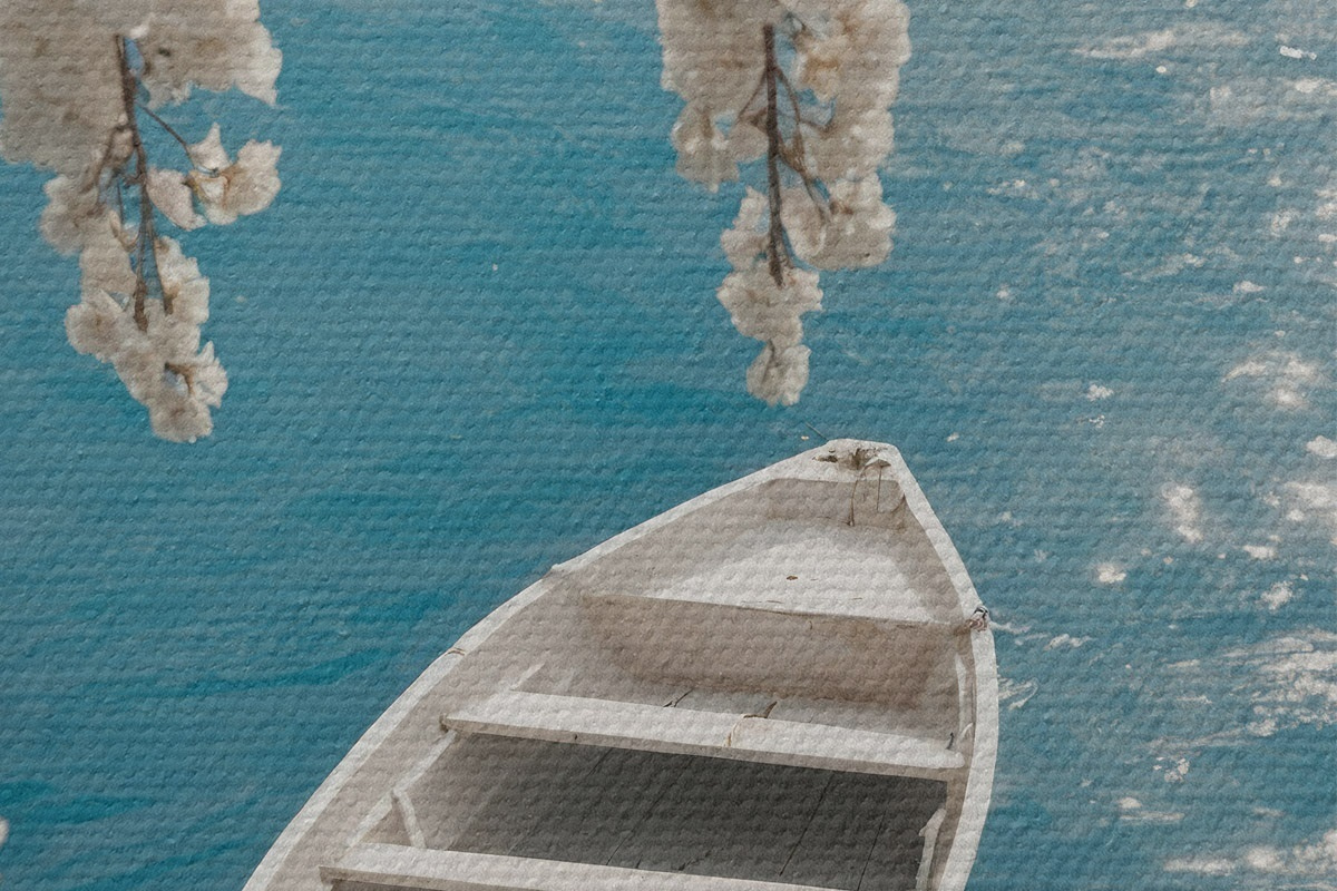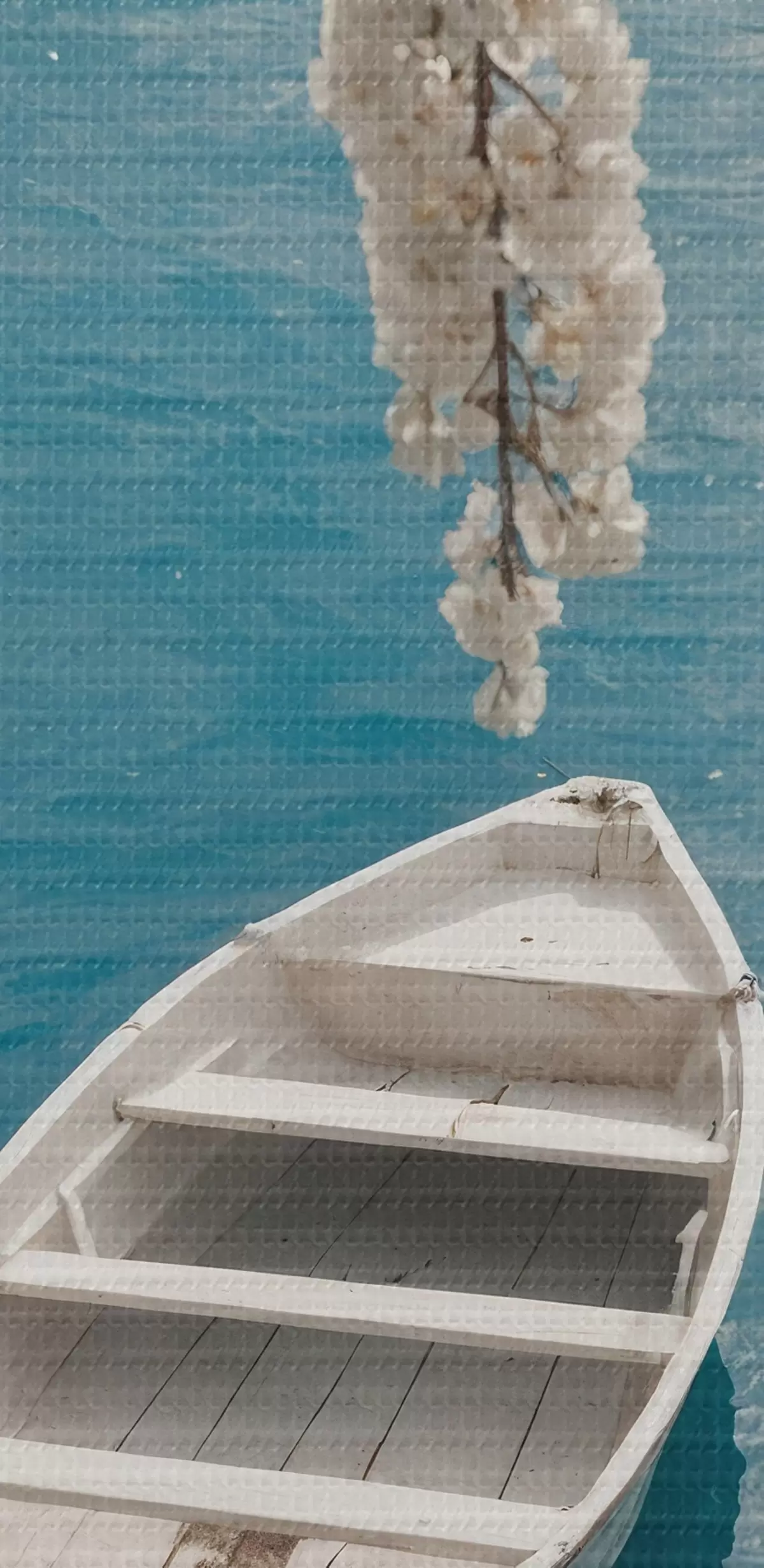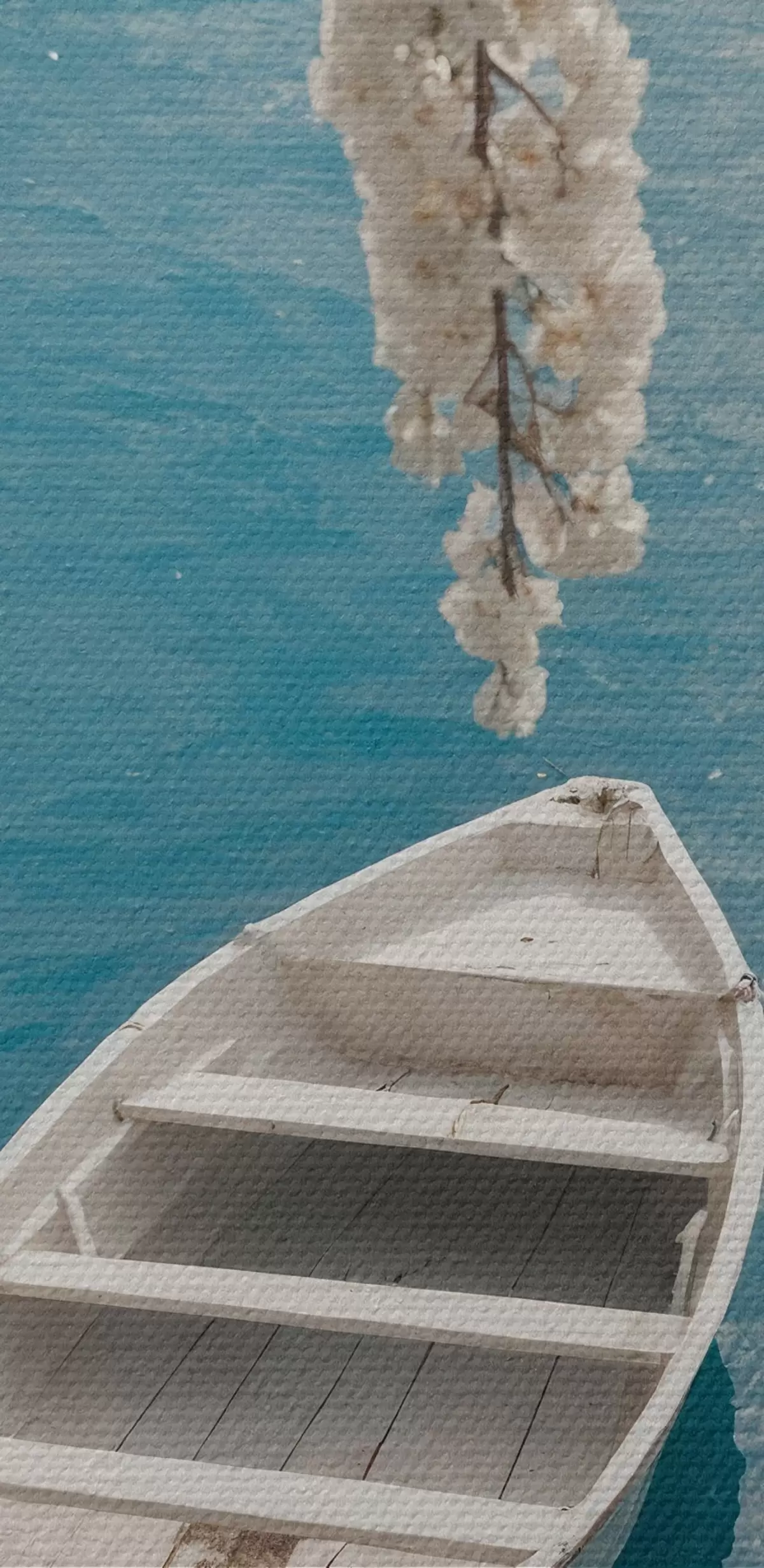 Runde Gemälde Weißes Boot unter einem Baum r44482