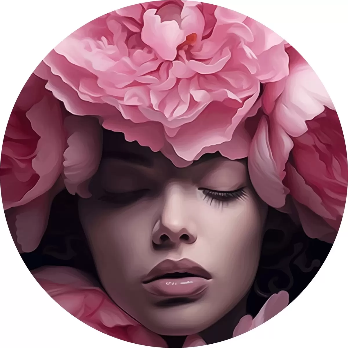 Runde Gemälde Gesicht in Blütenblättern r44490