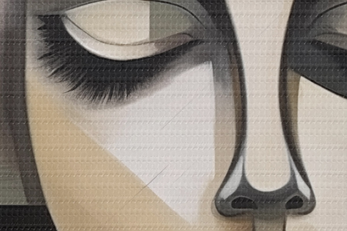 Um die Leinwand auf Keilrahmen zu spannen, ohne das Bild zu beschädigen, verwenden wir ein gespiegeltes Bild.